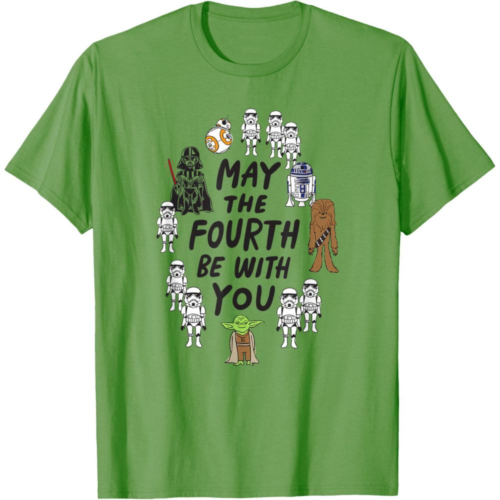 Amazon Essentials Boys’ May the Fourth Be With You Doodle Characters T-Shirt, White, Small(Grass Green)
