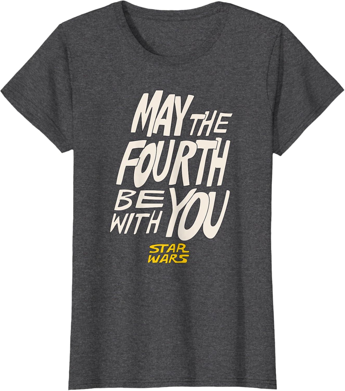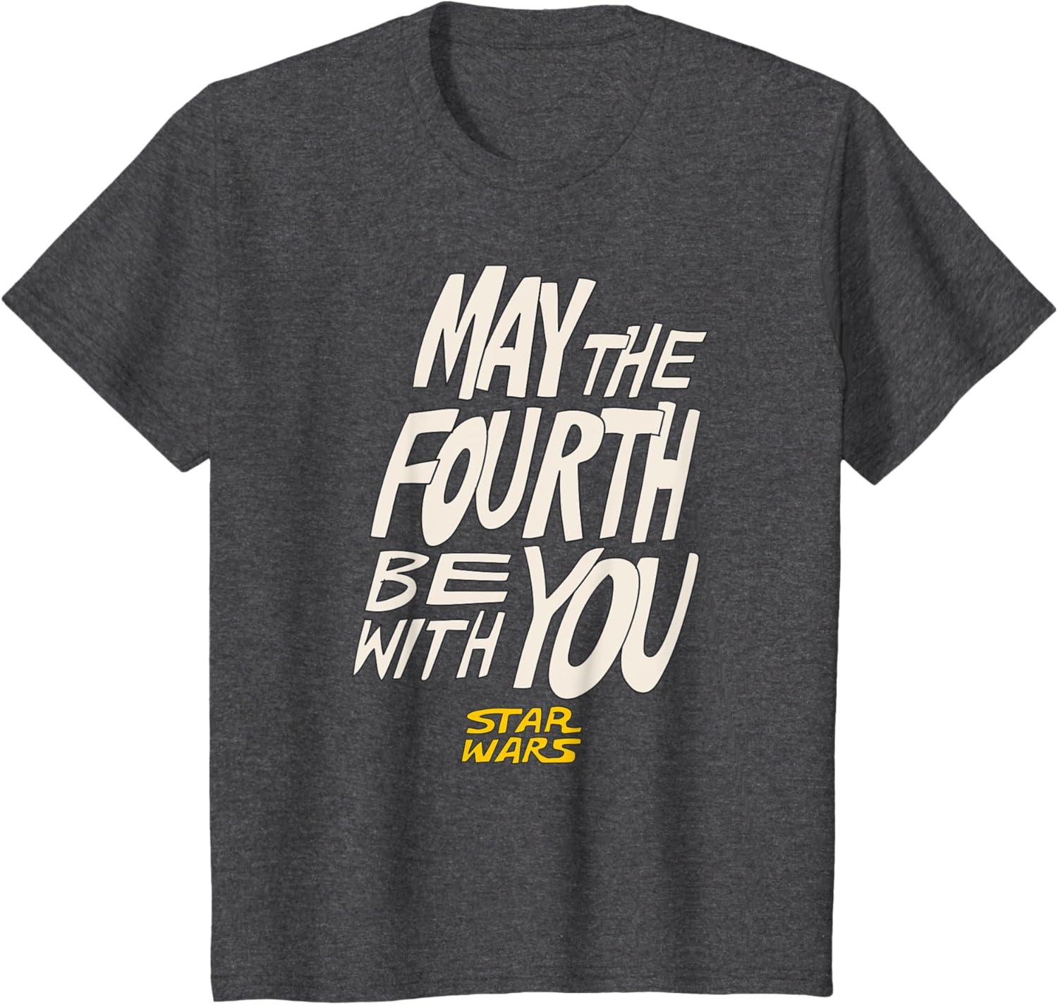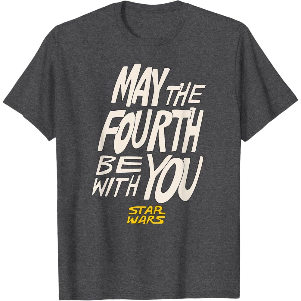 Amazon Essentials Men’s May the Fourth Be With You Hand-Drawn Letters T-Shirt, Black, Small(Dark Heather Grey)