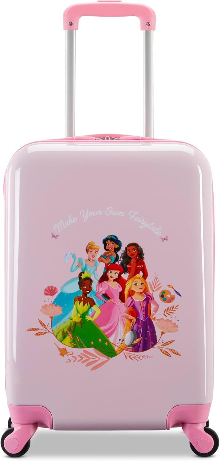 Travelers will delight in this hardside spinner carry on bag by American Tourister. Featuring your favorite characters and plenty of storage and organization, traveling with little ones will be more fun than ever.