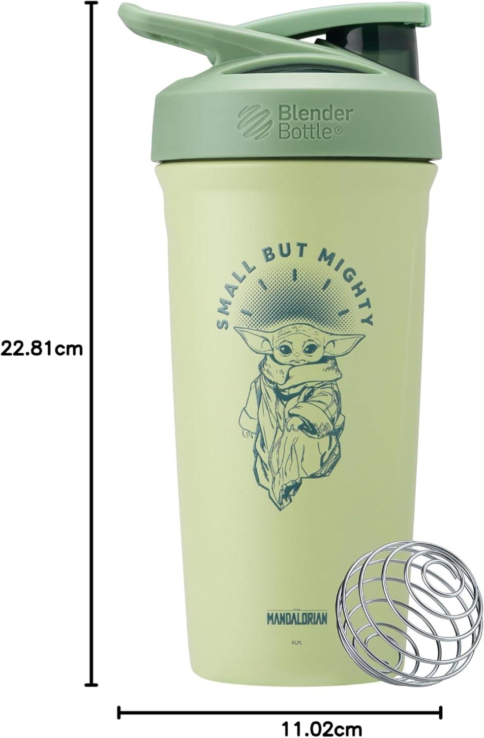 BlenderBottle Star Wars Strada Shaker Cup Insulated Stainless Steel Water Bottle with Wire Whisk, 24-Ounce, Mandalorian Helmet, 24oz(Small But Mighty)