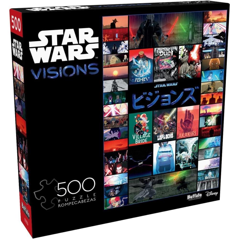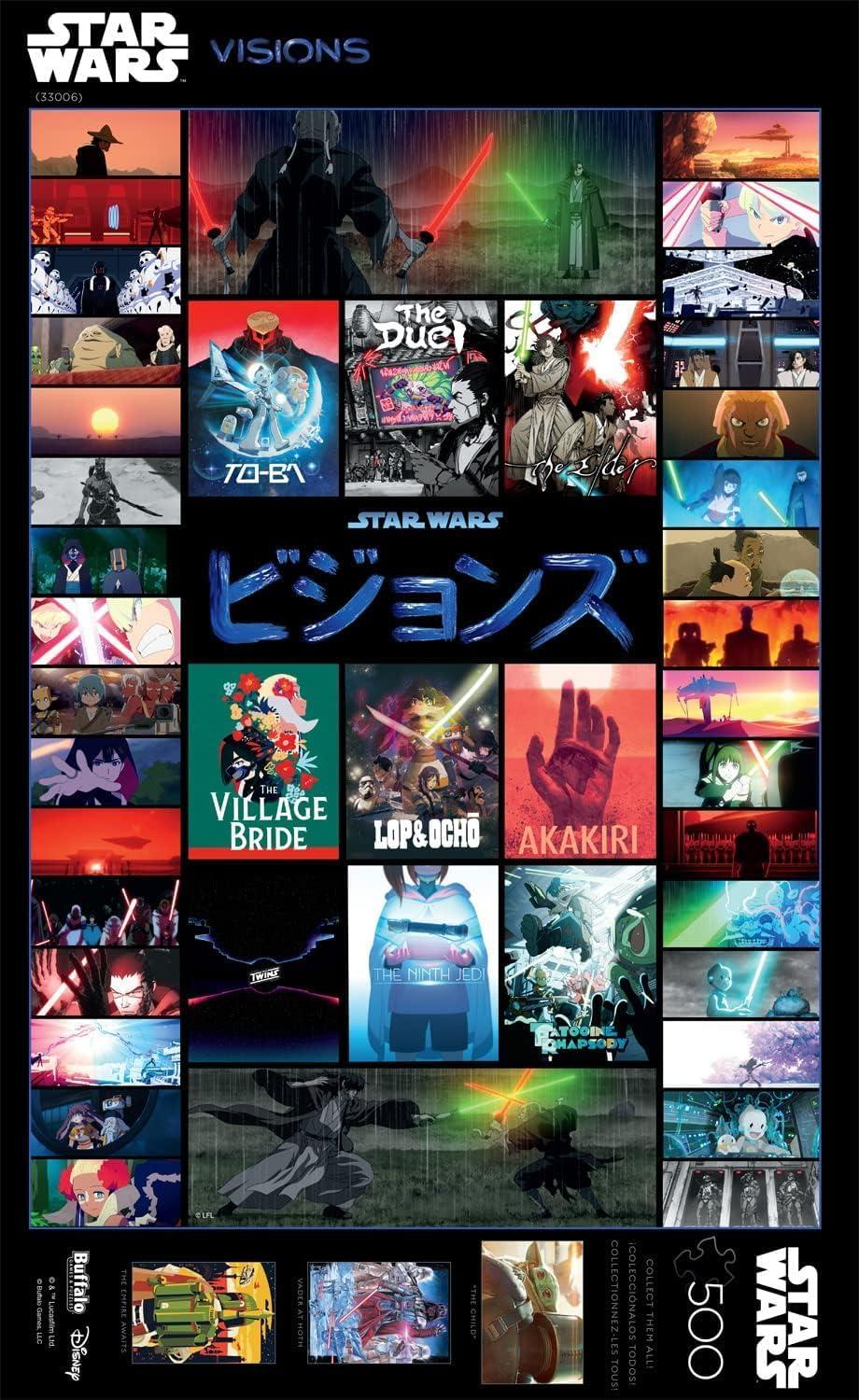This 500-piece jigsaw puzzle from Buffalo Games features scenes and posters from the Disney+ Star Wars: Visions ™ series of anime short films. Every Buffalo Games jigsaw puzzle is manufactured from recycled puzzle board. A precision cutting technique guarantees that every piece will fit soundly with the company's signature Perfect Snap™. A bonus puzzle poster is also included so that you have a handy reference of what the completed puzzle should look like while you put yours together. © & ™ LucasFilm Ltd. StarWars.com