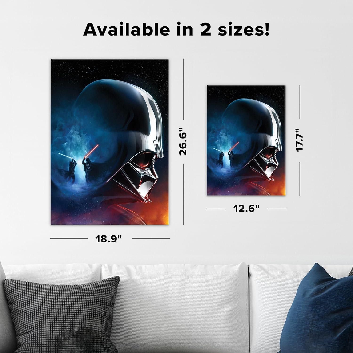 Officially Licensed Star Wars Metal Poster : Capture the intensity of Star Wars: Obi-Wan Kenobi with this premium metal wall art featuring the fearsome Lord Vader. The iconic helmet gleams against the cosmic tapestry, mirroring an intense lightsaber battle that epitomizes the eternal struggle between good and evil. Perfect for Star Wars wall decor in bedrooms, game rooms or offices.