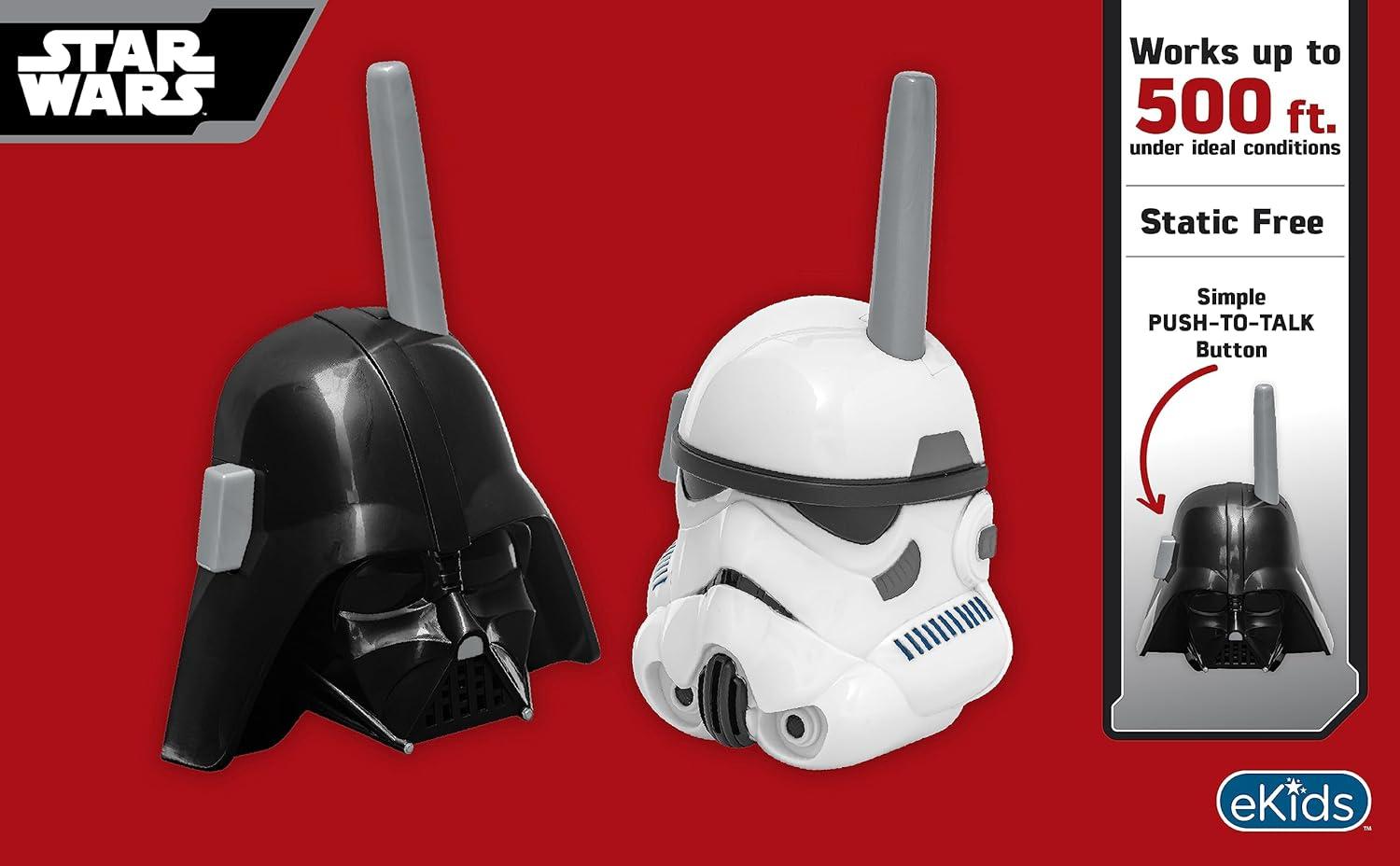 The all new Star Wars Kilo Ren and first order trooper kid friendly walkie talkies are here!! Grab a friend and have a blast. Enjoy the static free quality and extended range during your playtime. The easy to use push to talk button makes these walkie talkies very kid friendly. Go on adventures with friends indoors or outside. The Star Wars Kilo Ren and first order trooper style makes these walkie talkies the perfect gift or birthday present for your little one. Features: 2 way walkie talkies to use push to talk buttonstatic free extended range Star Wars Kilo Ren and first order trooper style Perfect gift order now!!