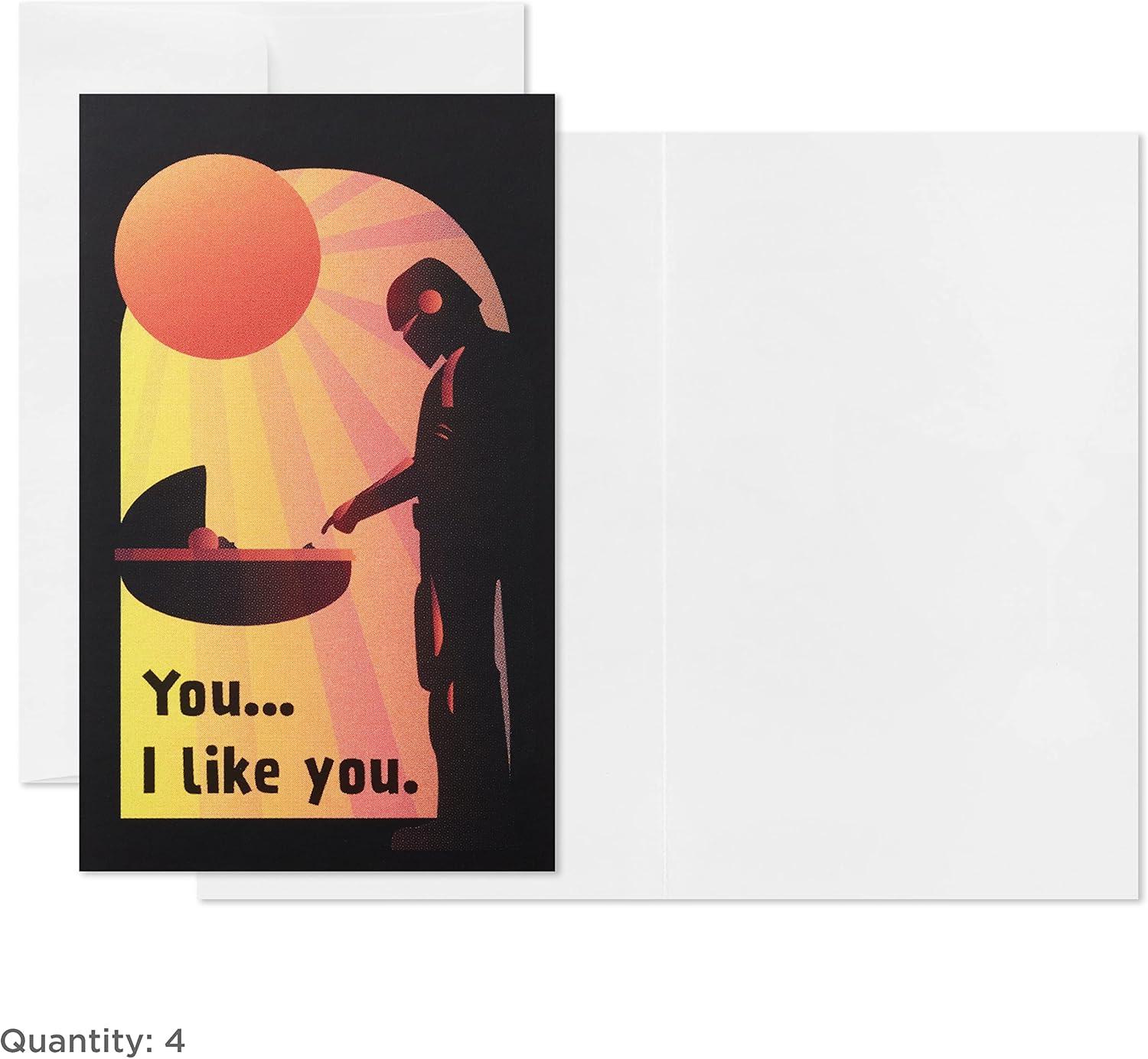 Hallmark Baby Yoda Mini Valentines Day Cards and Stickers for Kids School (18 Classroom Valentines with Envelopes), May the 4th(Baby Yoda Folded Mini Valentines)