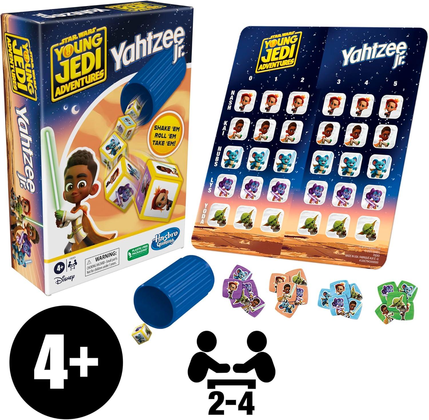 STAR WARS-THEMED YAHTZEE GAME FOR KIDS: Roll with Kai and friends for the ultimate win. Introduce kids to classic Yahtzee gameplay with this Yahtzee Jr.: Star Wars Young Jedi Adventures Edition game
