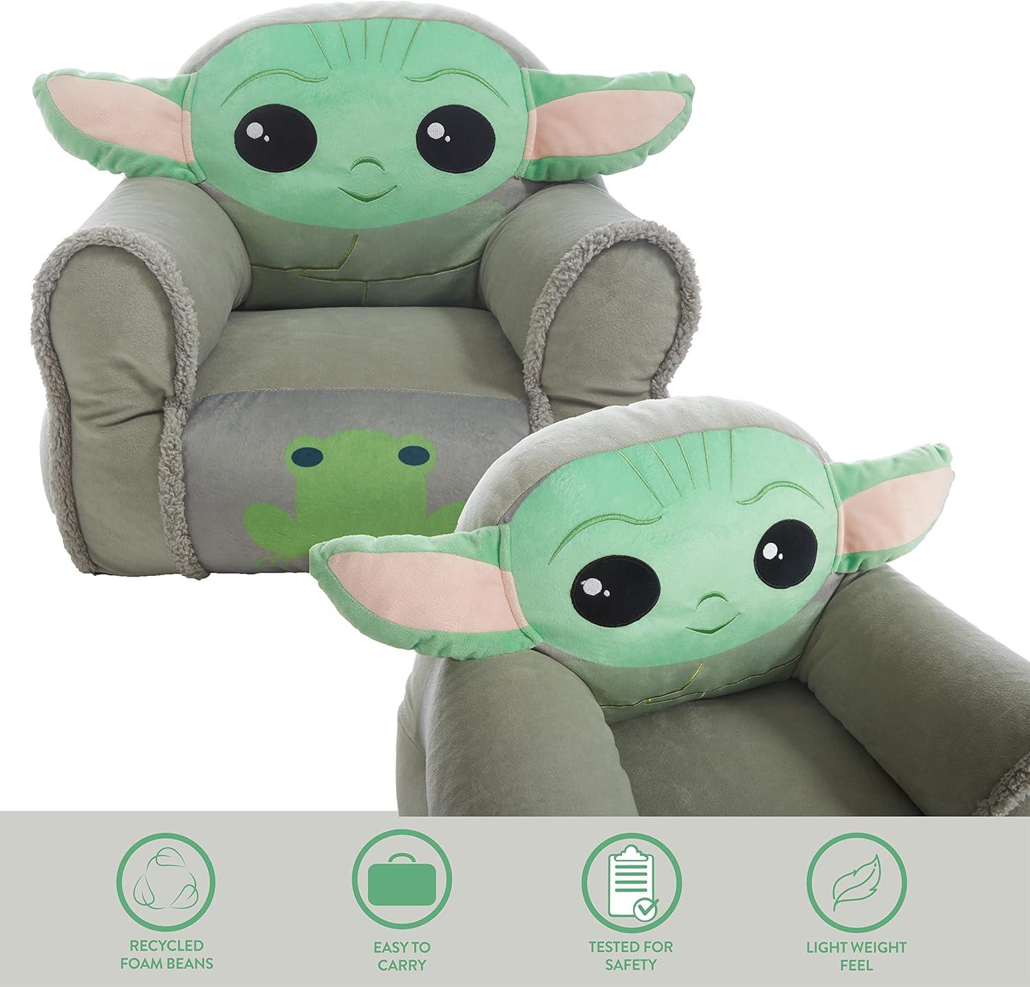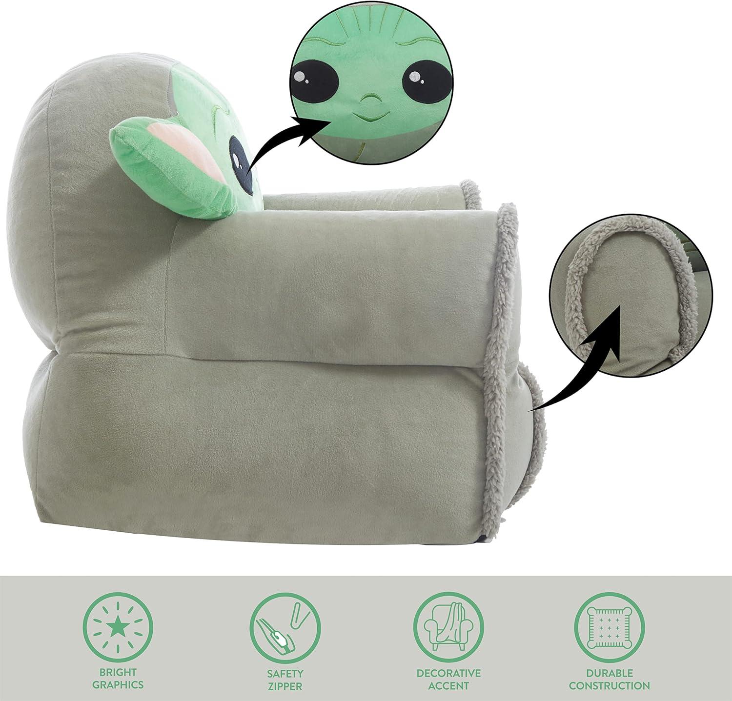 Idea Nuova Figural Mink with Sherpa Trim Bean Bag Chair for Toddlers and Kids, Star Wars Grogu(Star Wars / The Mandalorian)