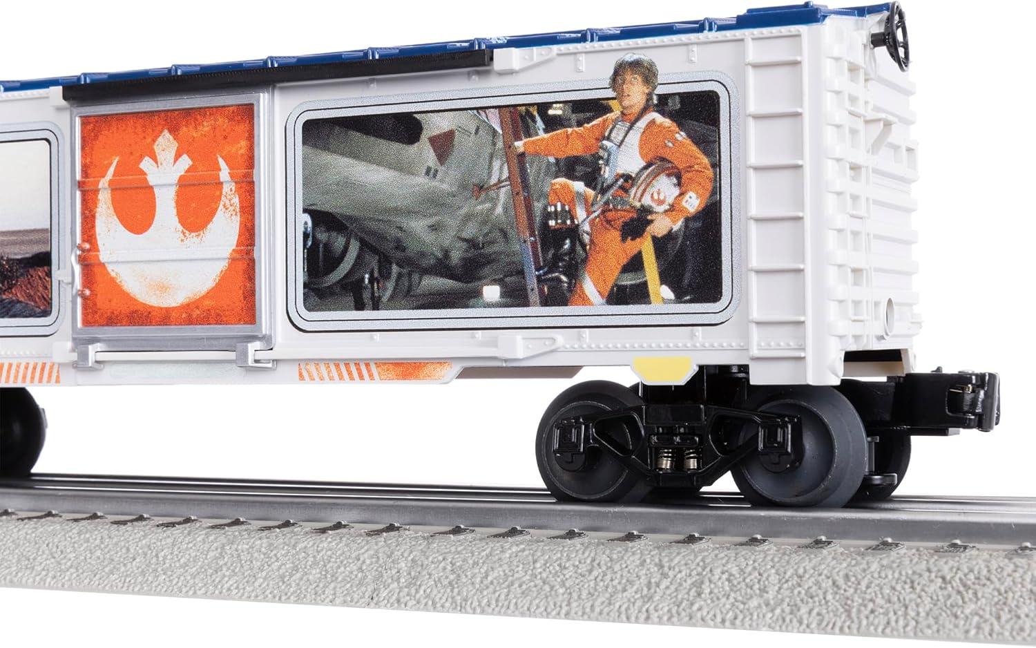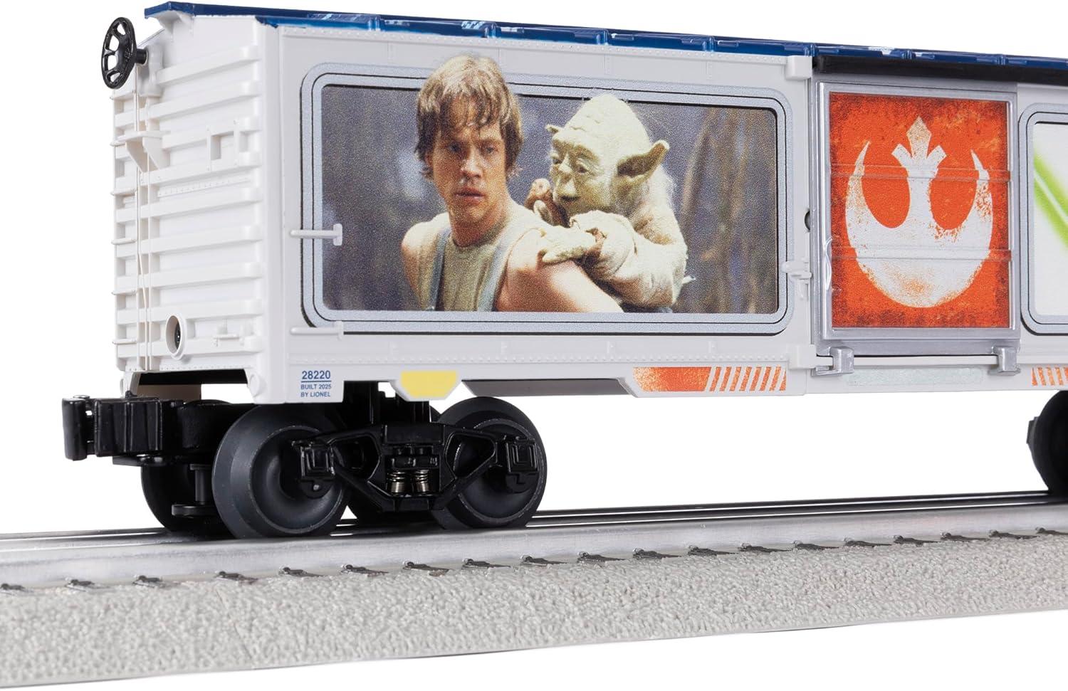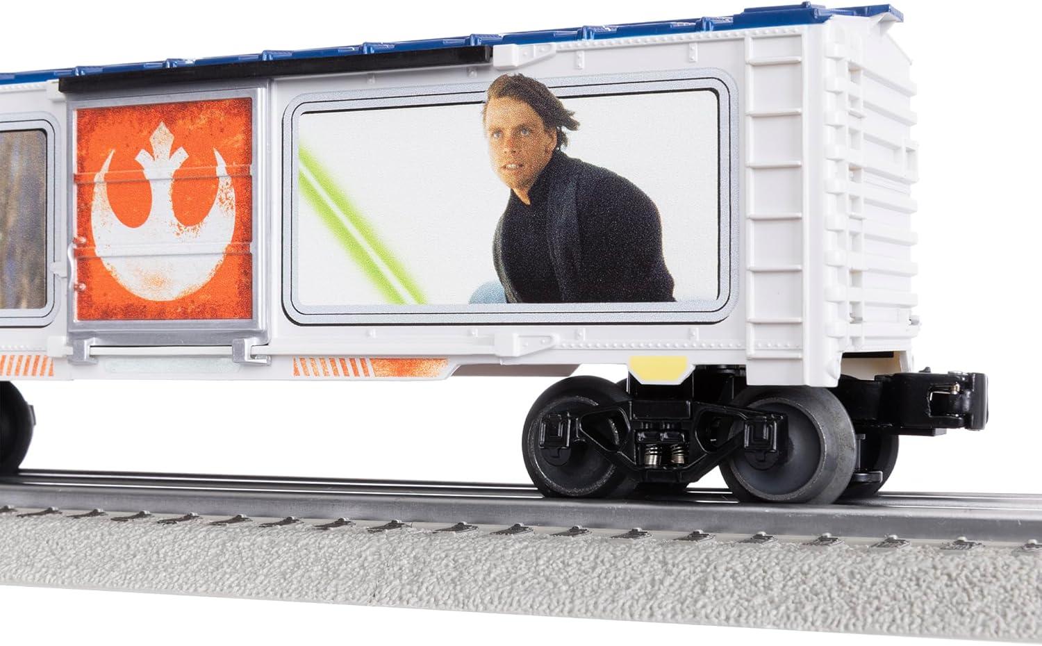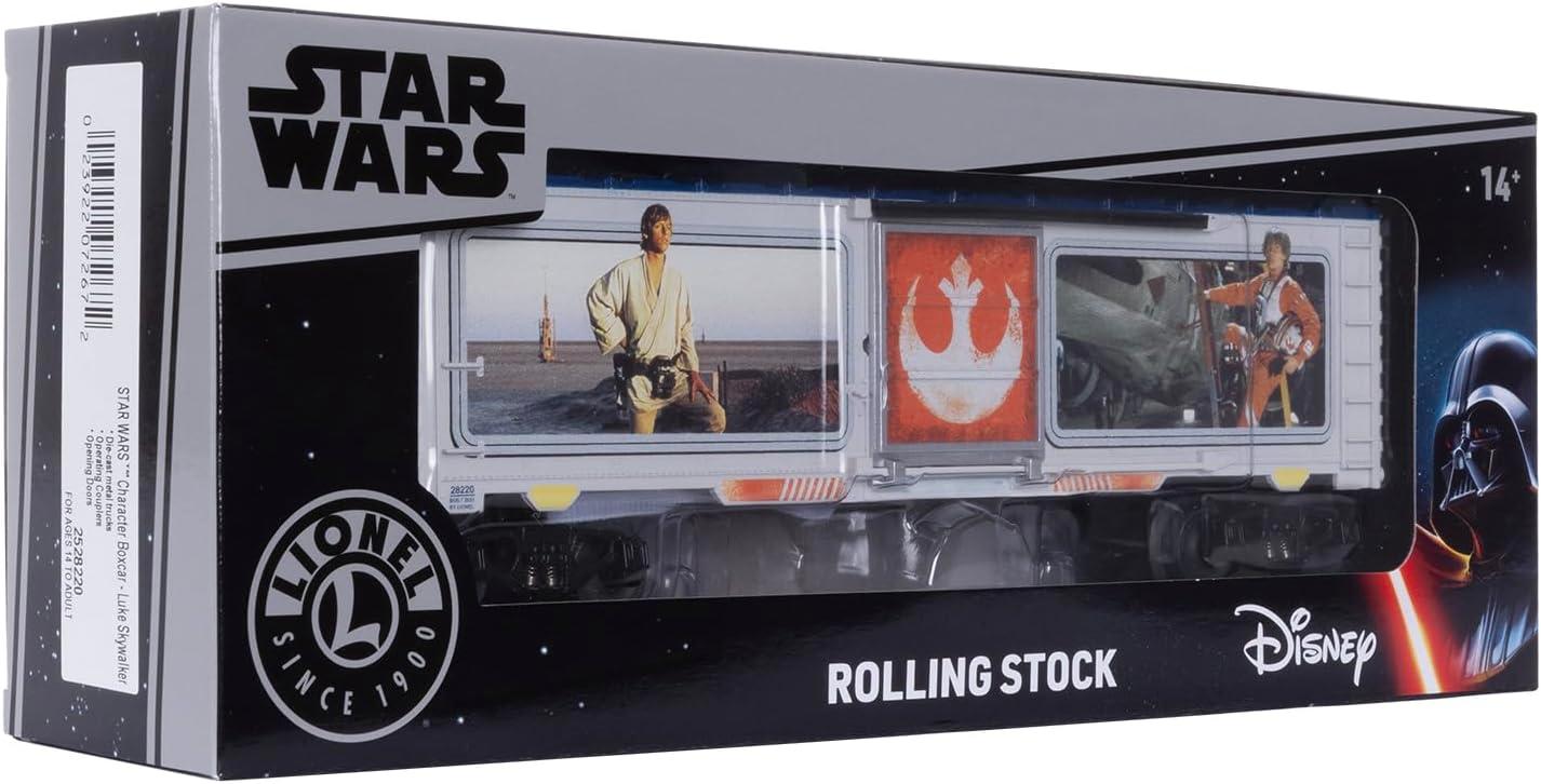 Lionel Disney Star Wars Luke Skywalker Character O Gauge Model Train Boxcar highlights Luke’s iconic Star Wars character in progression from one move to the next. Boxcar is compatible with Lionel O Gauge, features die-cast metal trucks, operating couplers, and opening side doors. Recommended for ages 14 years and up.