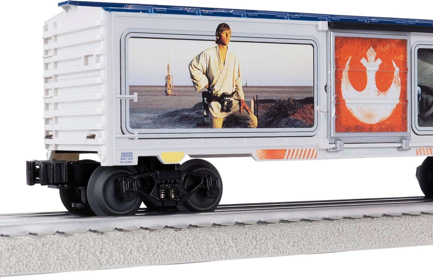 PRODUCT: Lionel Disney Star Wars Luke Skywalker Character O Gauge Model Train Boxcar highlights Luke’s iconic Star Wars character in progression from one move to the next.