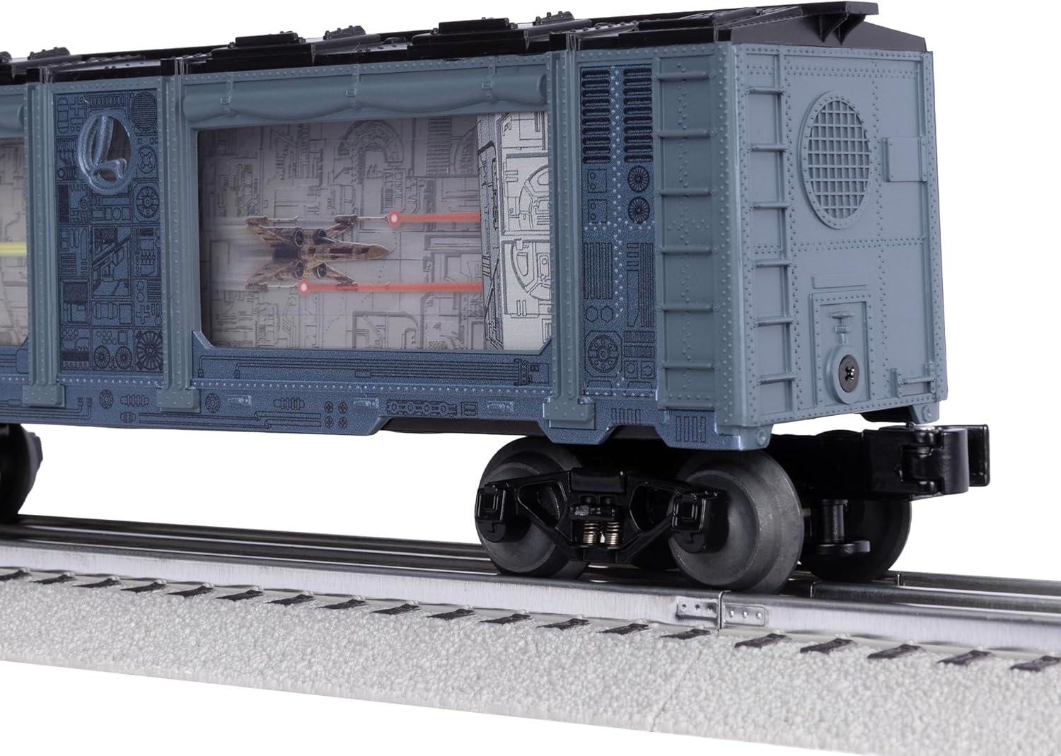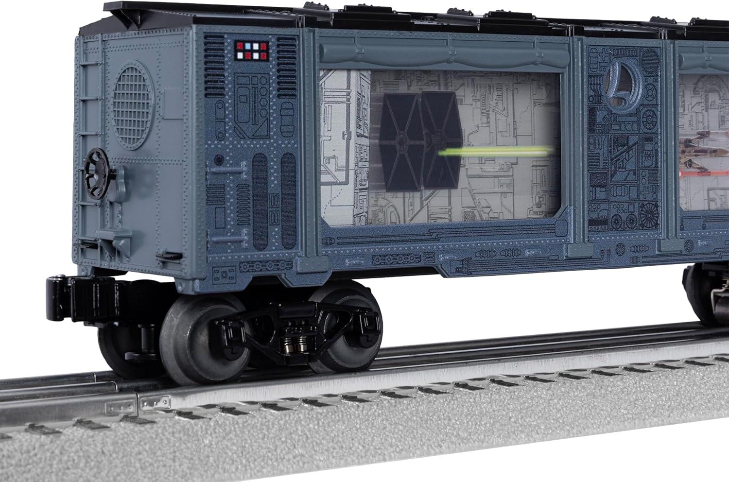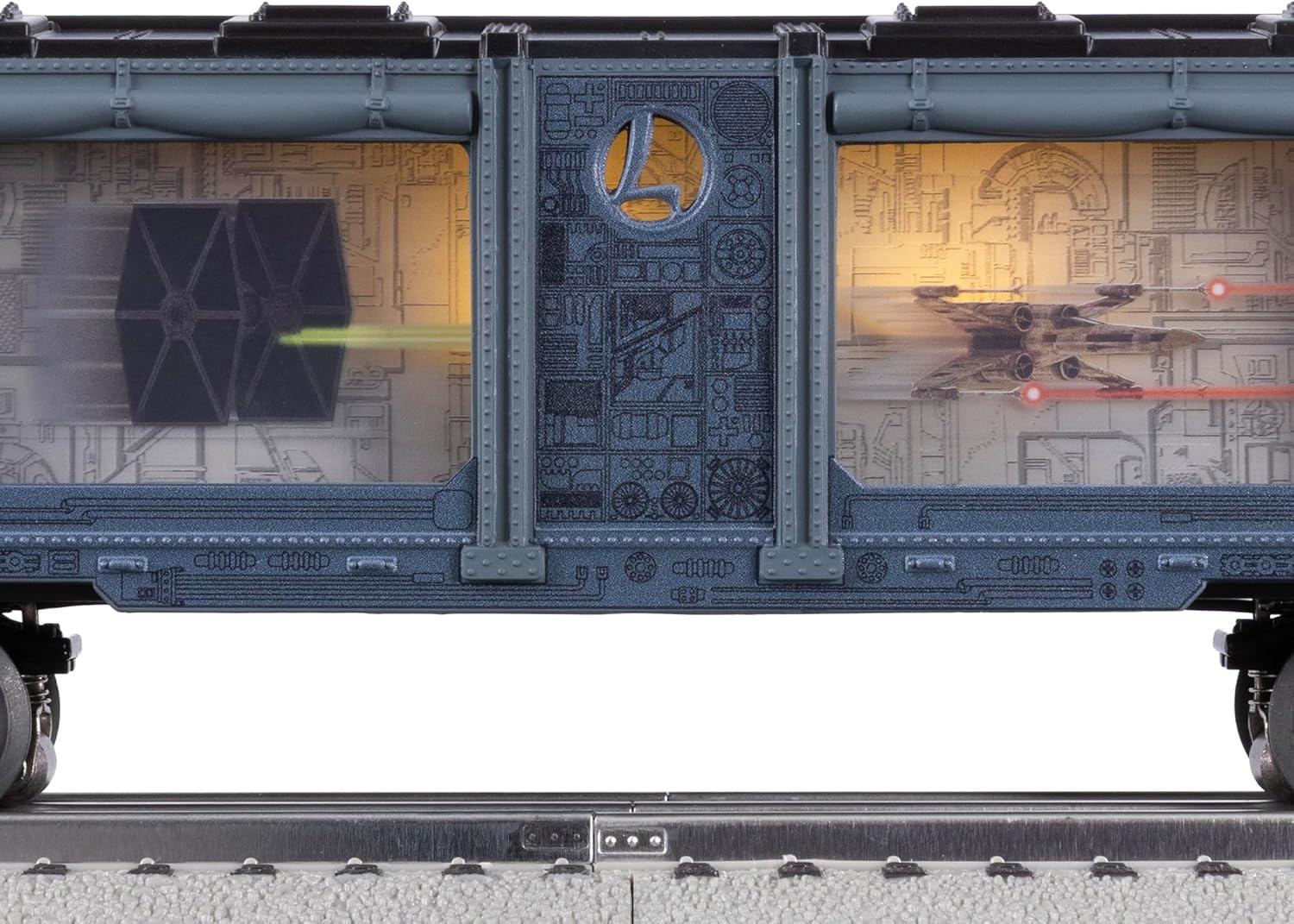 FEATURES: Compatible with Lionel O Gauge / X-Wing and Tie Fighter battle through the Death Star Trench when powered / Die-cast metal trucks / Operating couplers / Powerful maintenance-free motor / Interior illumination / On/Off switch