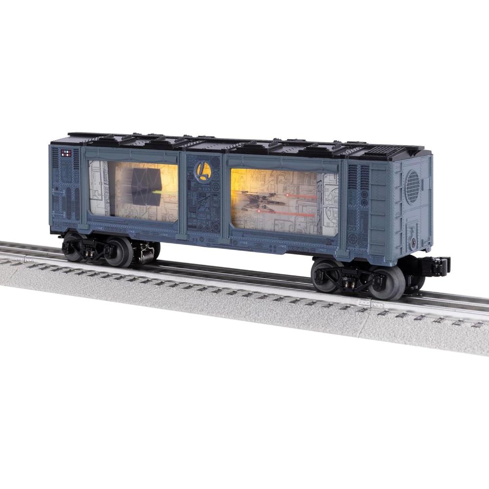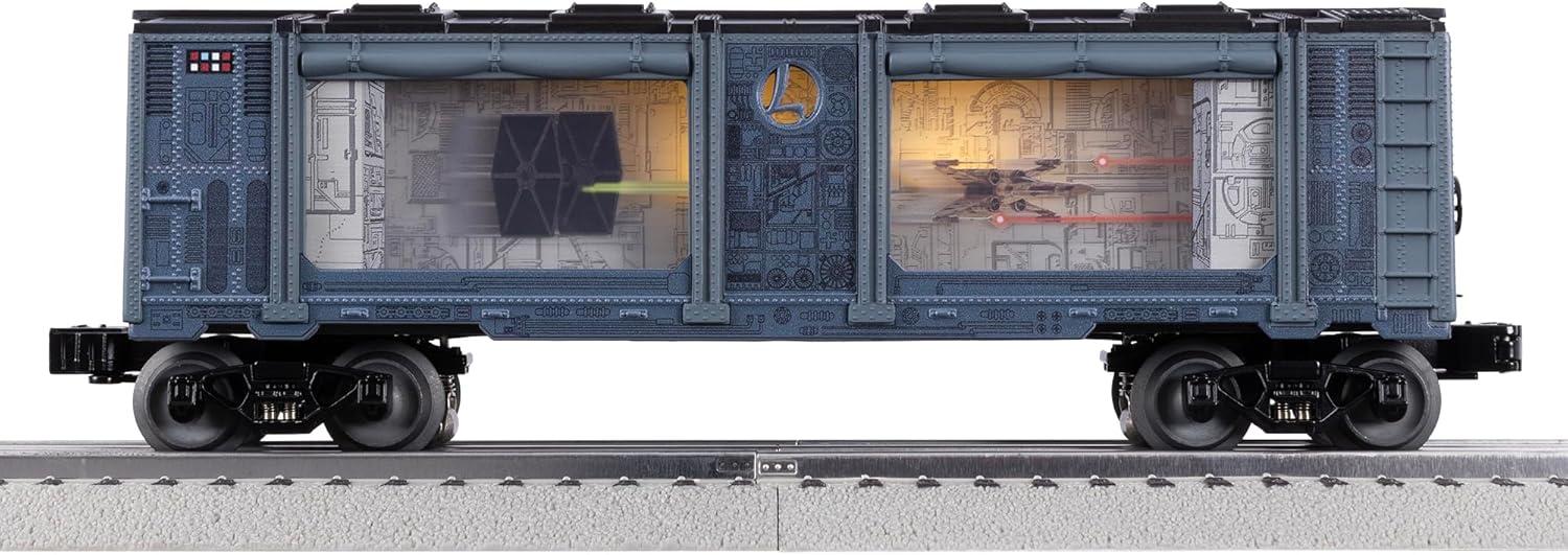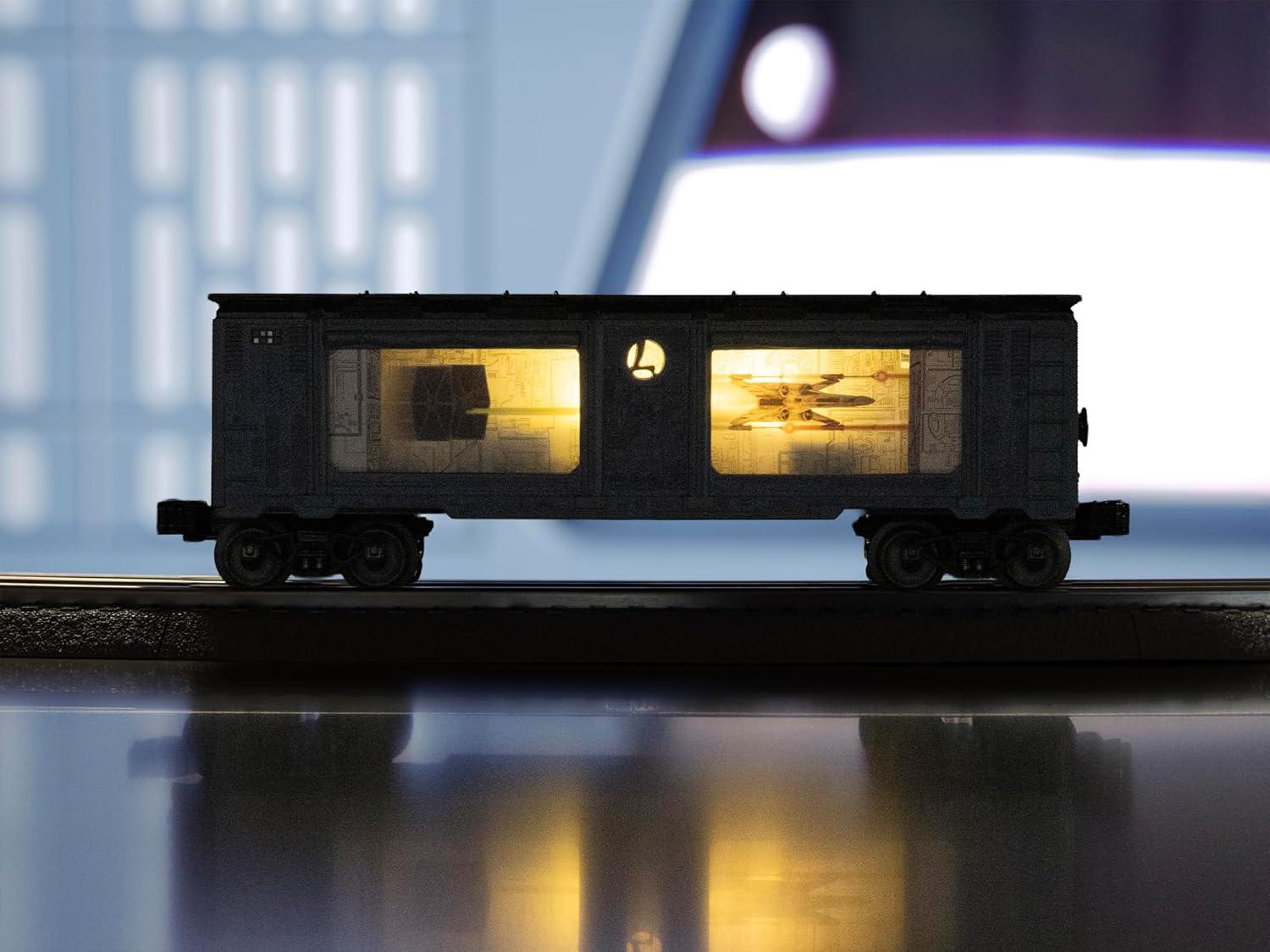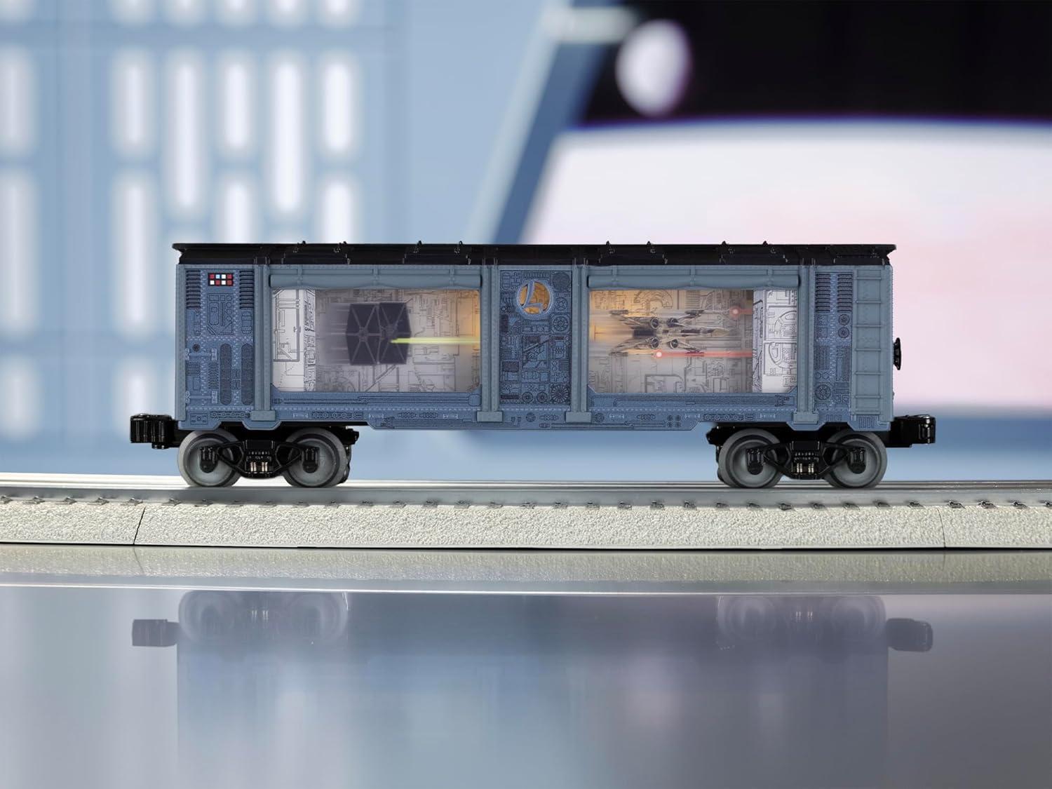 FEATURES: Compatible with Lionel O Gauge / X-Wing and Tie Fighter battle through the Death Star Trench when powered / Die-cast metal trucks / Operating couplers / Powerful maintenance-free motor / Interior illumination / On/Off switch