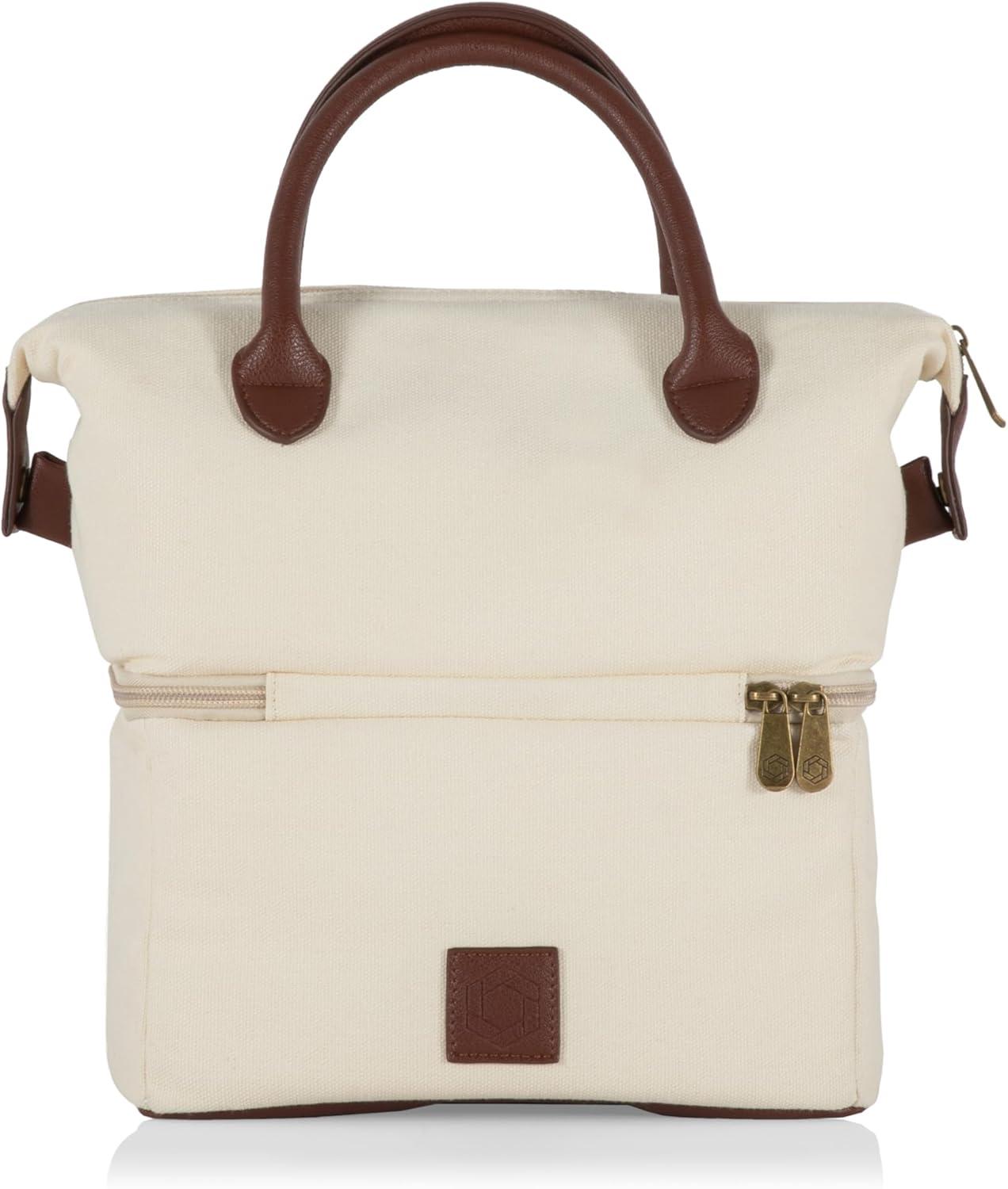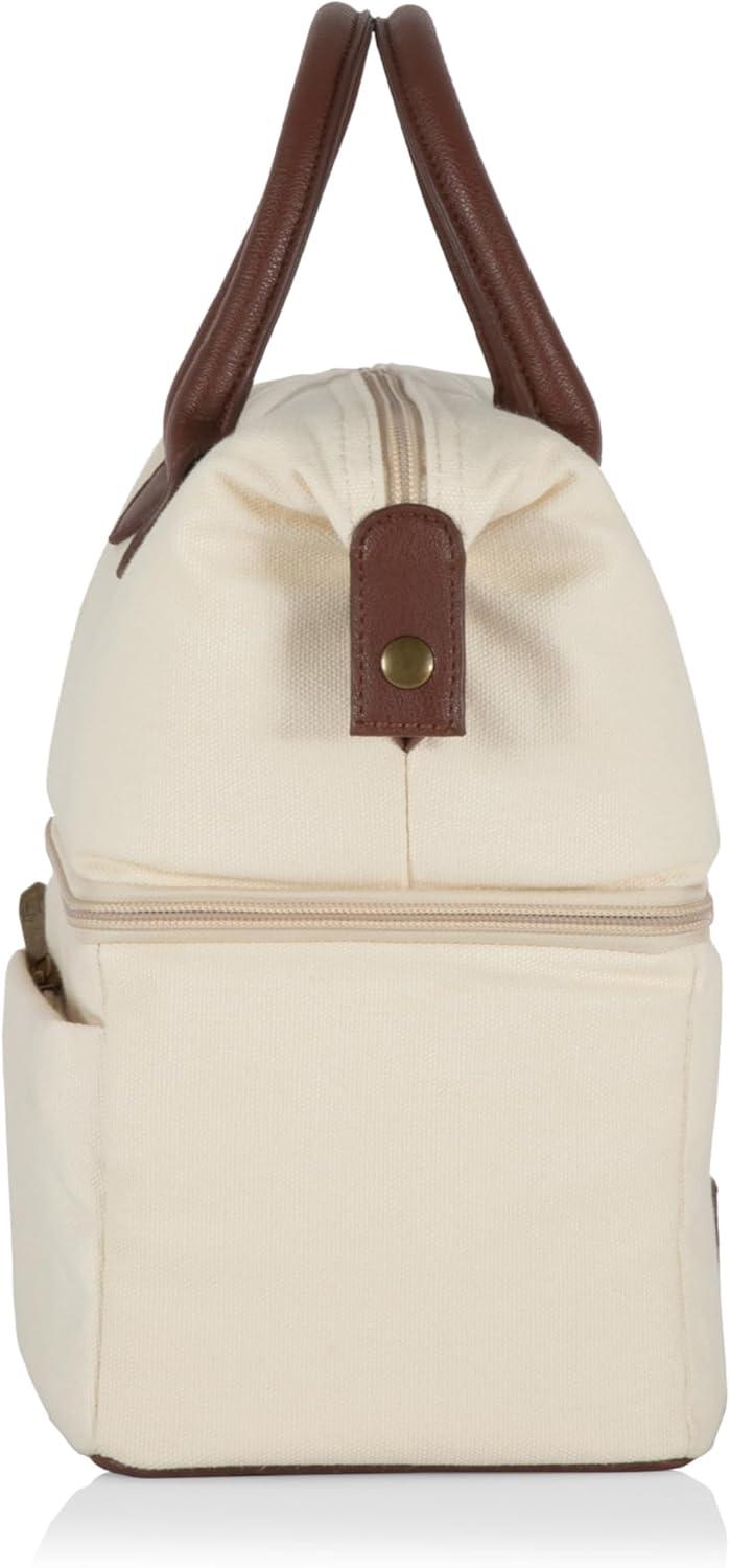 SOFT COOLER TOTE – Measuring 9.75 by 5.5 by 10.1 inches, this stylish and functional lunch bag cooler also includes leatherette handles and side snaps to increase compartment carry volume.