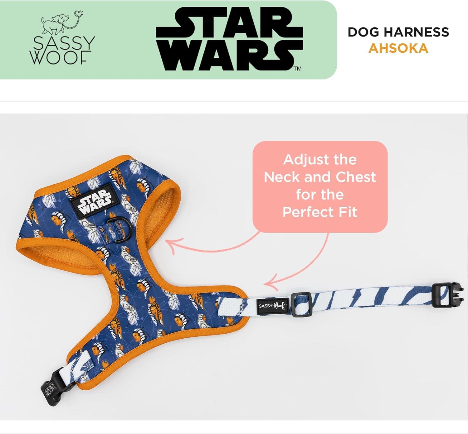 Sassy Woof Dog Adjustable Harness – Star Wars™ Ahsoka – S, Breathable Mesh, No Pull Design with Two D-Rings, Perfect for Small Dogs and Puppies – Officially Licensed(Medium)