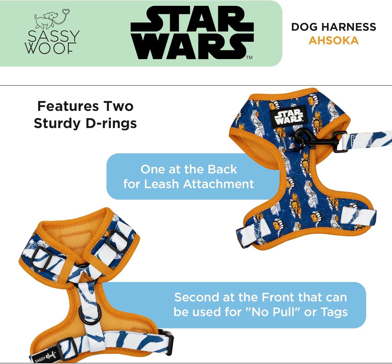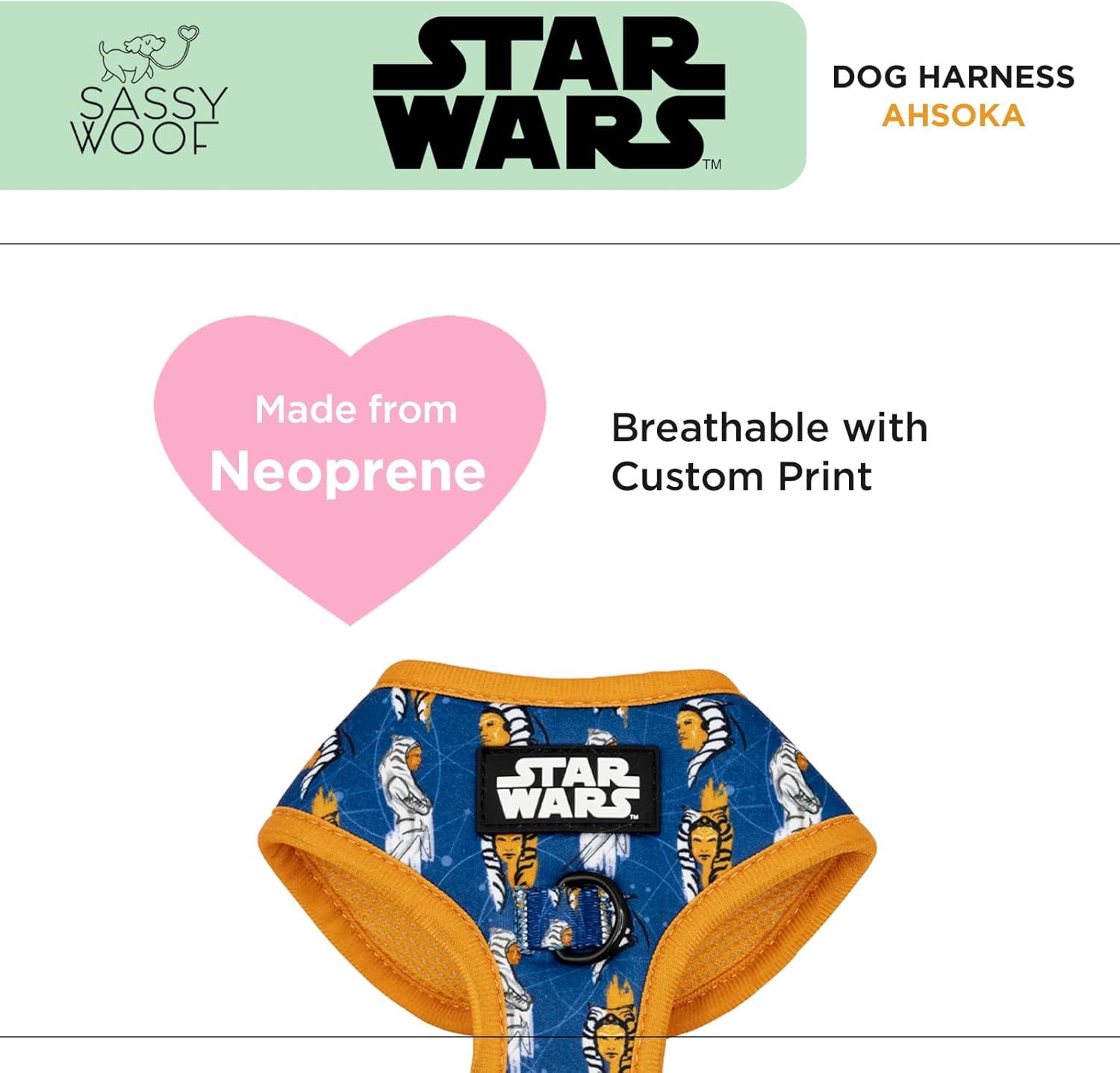 Sassy Woof Dog Adjustable Harness - Star Wars™ Ahsoka - S, Breathable Mesh, No Pull Design with Two D-Rings, Perfect for Small Dogs and Puppies - Officially Licensed(Small)
