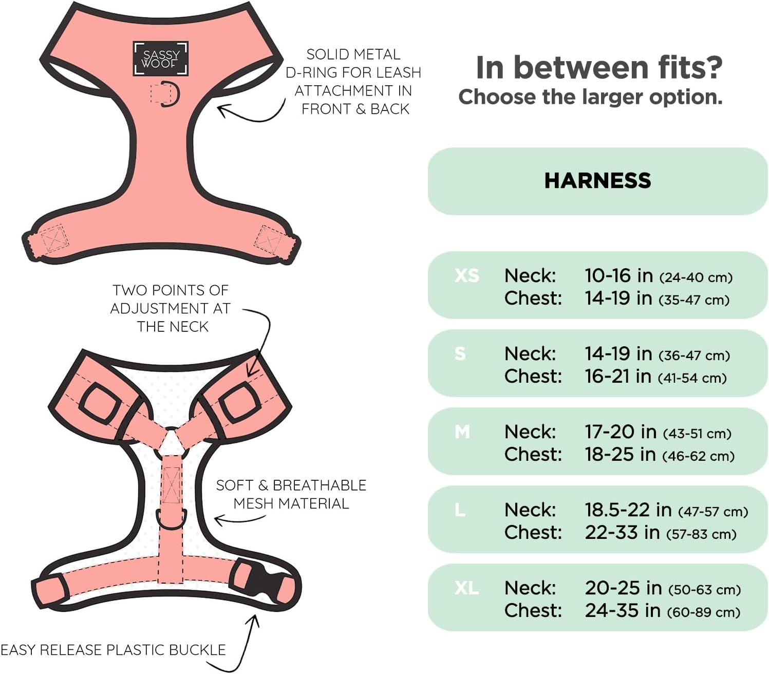 🐾COMPLETE MATCHING SET AVAILABLE: For a coordinated and stylish look, pair this harness with our matching leash, collar and waste bag holder (Available Separately). Each accessory is designed to complement the harness, making your dog the most fashionable pup on the block.