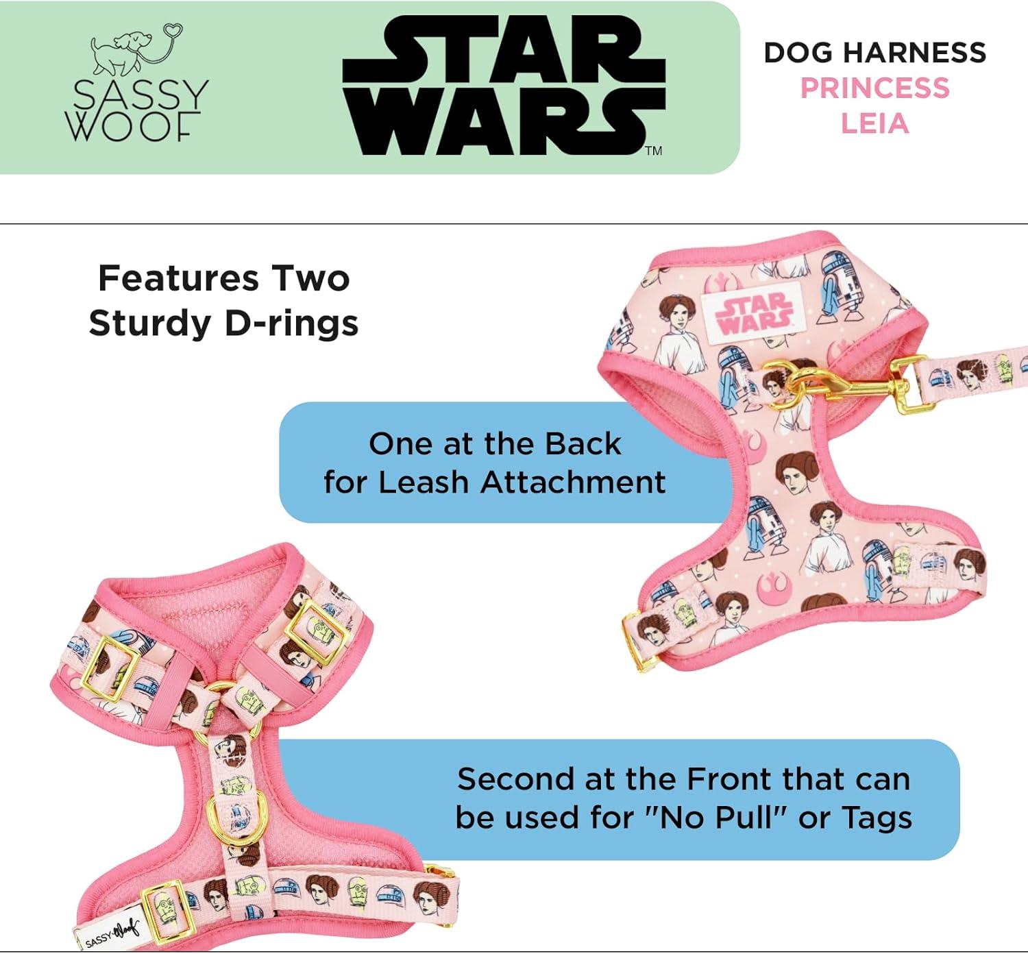imageSassy Woof Dog Adjustable Harness  Star Wars Princess Leia  M Breathable Mesh No Pull Design with Two DRings Perfect for Medium Dogs  Officially LicensedSmall