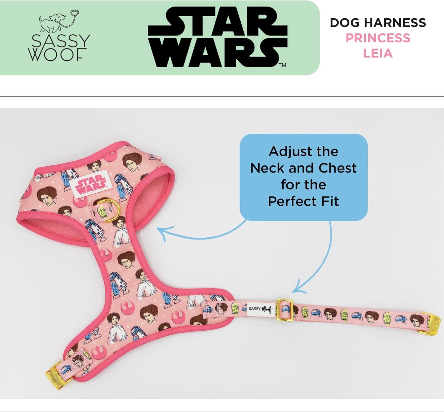 Sassy Woof Dog Adjustable Harness - Star Wars™ Princess Leia - M, Breathable Mesh, No Pull Design with Two D-Rings, Perfect for Medium Dogs - Officially Licensed(X-Large)