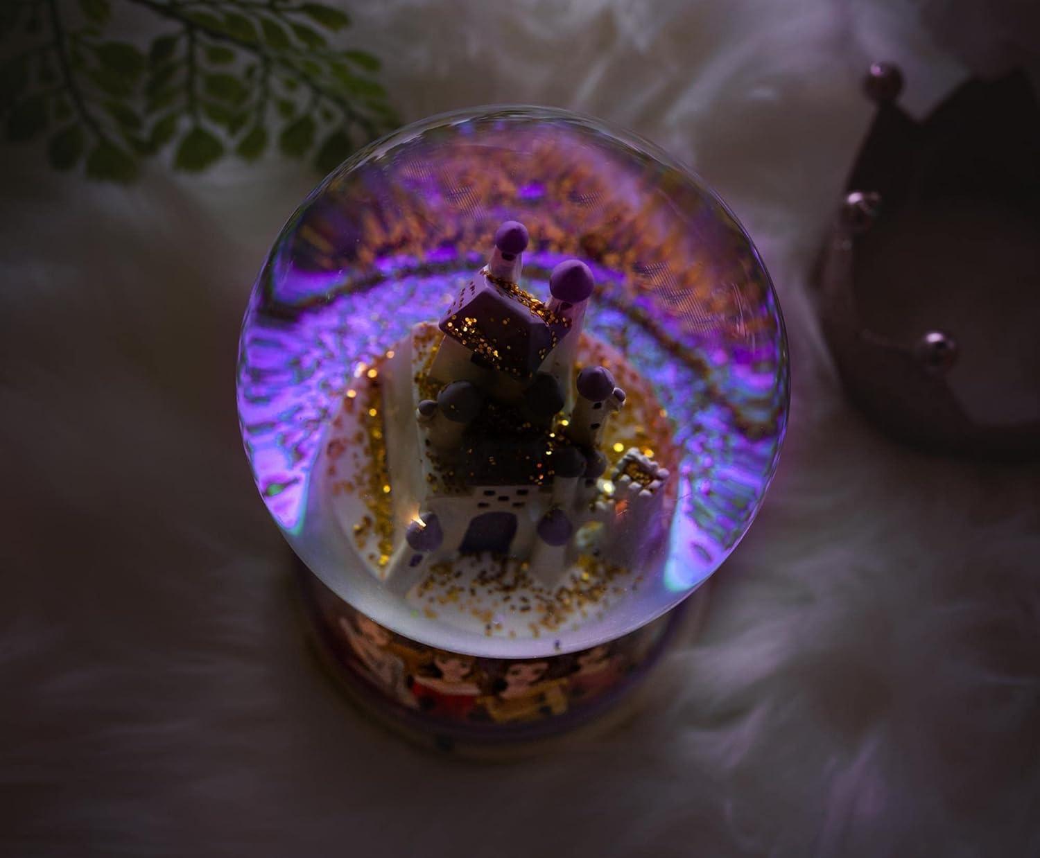 LIGHTS UP: Turn the switch on at the bottom of the snow globe and watch it magically light up. Batteries included.