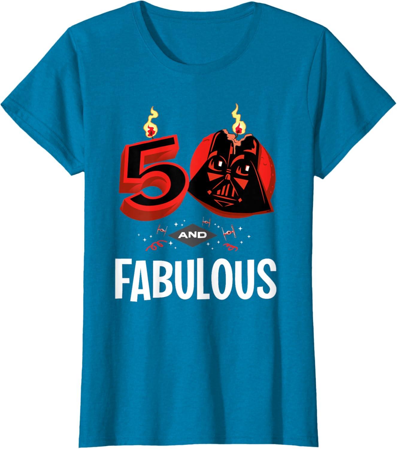 imageStar Wars 50th Birthday Party quot50 and Fabulousquot Darth Vader TShirtSapphire Blue