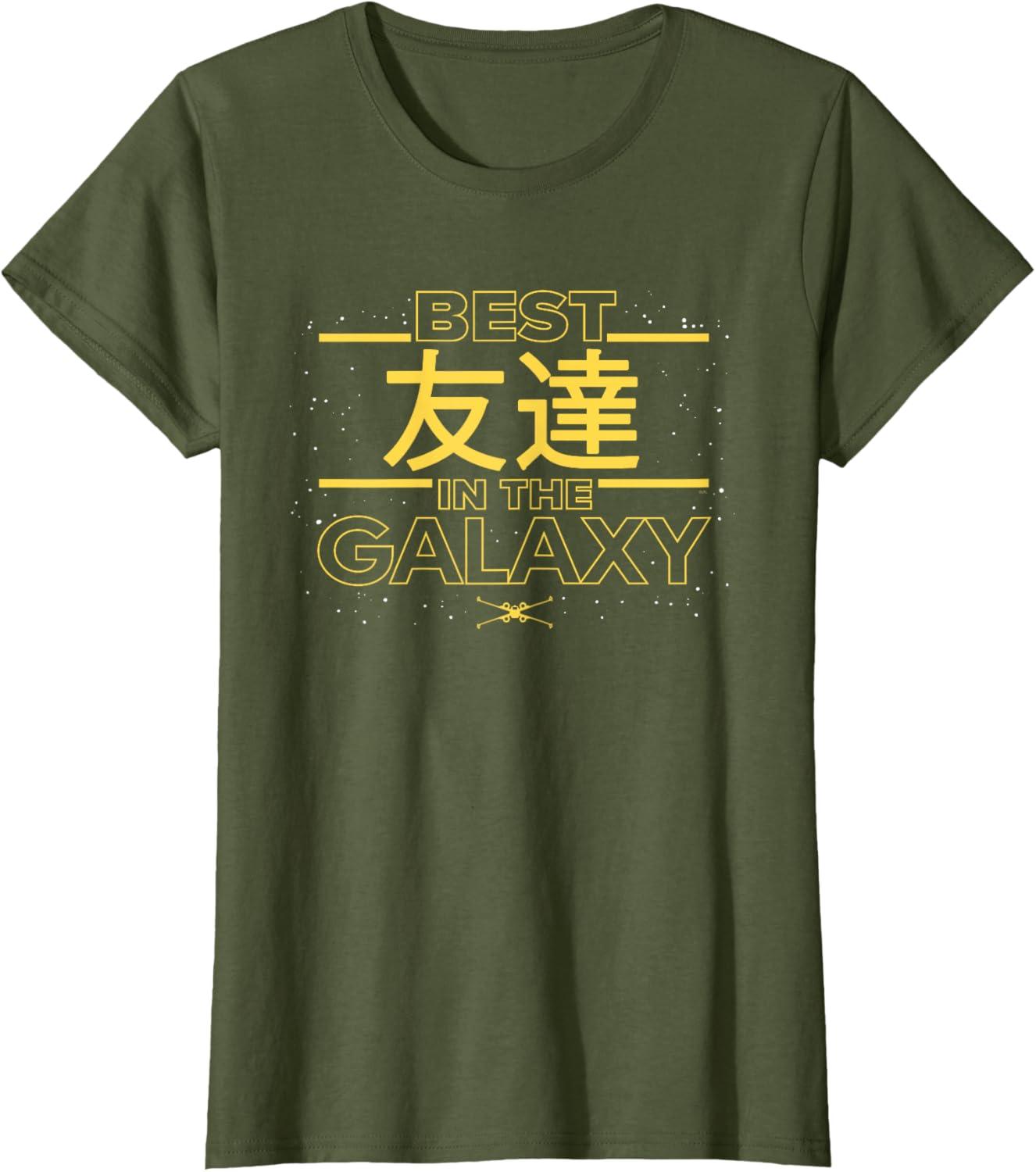 Celebrate a galactically great Star Wars Friend with this official Lucasfilm tee or hoodie, featuring the message “Best Friend in the Galaxy” with “Friend” written in Japanese on a classic Star Wars starfield with an X-wing starfighter underneath. A great gift for a best friend’s birthday, special occasion, Christmas and the holidays, and a friend trip or friend vacation to Galaxy’s Edge in Disneyland, Walt Disney World, or another out-of-this-world destination. Available in youth and adult sizes. Find it in a graphic t-shirt, premium t-shirt, tank top, v-neck, long sleeve tee, hoodie, and sweatshirt.