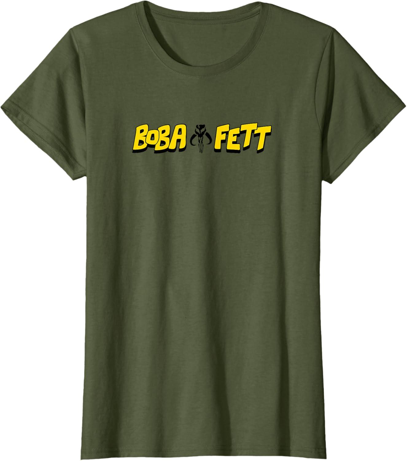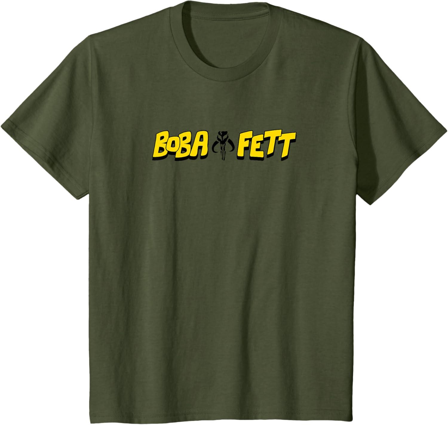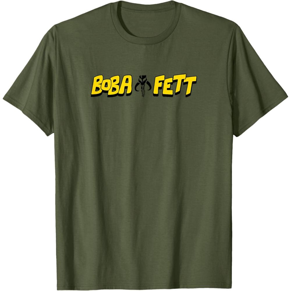 Simple but striking, this front-chest Star Wars design features the name “BOBA FETT” in bold, yellow comic-style lettering across the upper chest. With exaggerated angles and dynamic curves, the retro font calls back to vintage graphic novels and pulp covers, giving a punchy nod to Boba Fett’s legendary status in the galaxy. Whether you're pairing it with the explosive back graphic or rocking it solo, this front hit delivers iconic flair with clean impact.