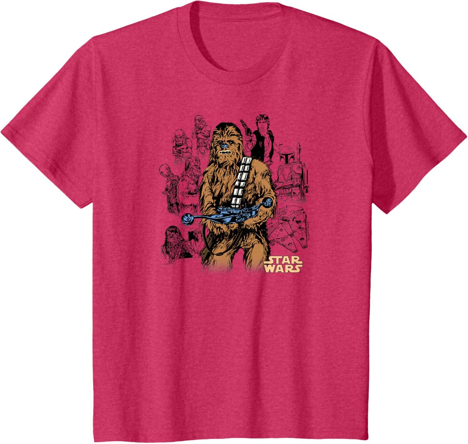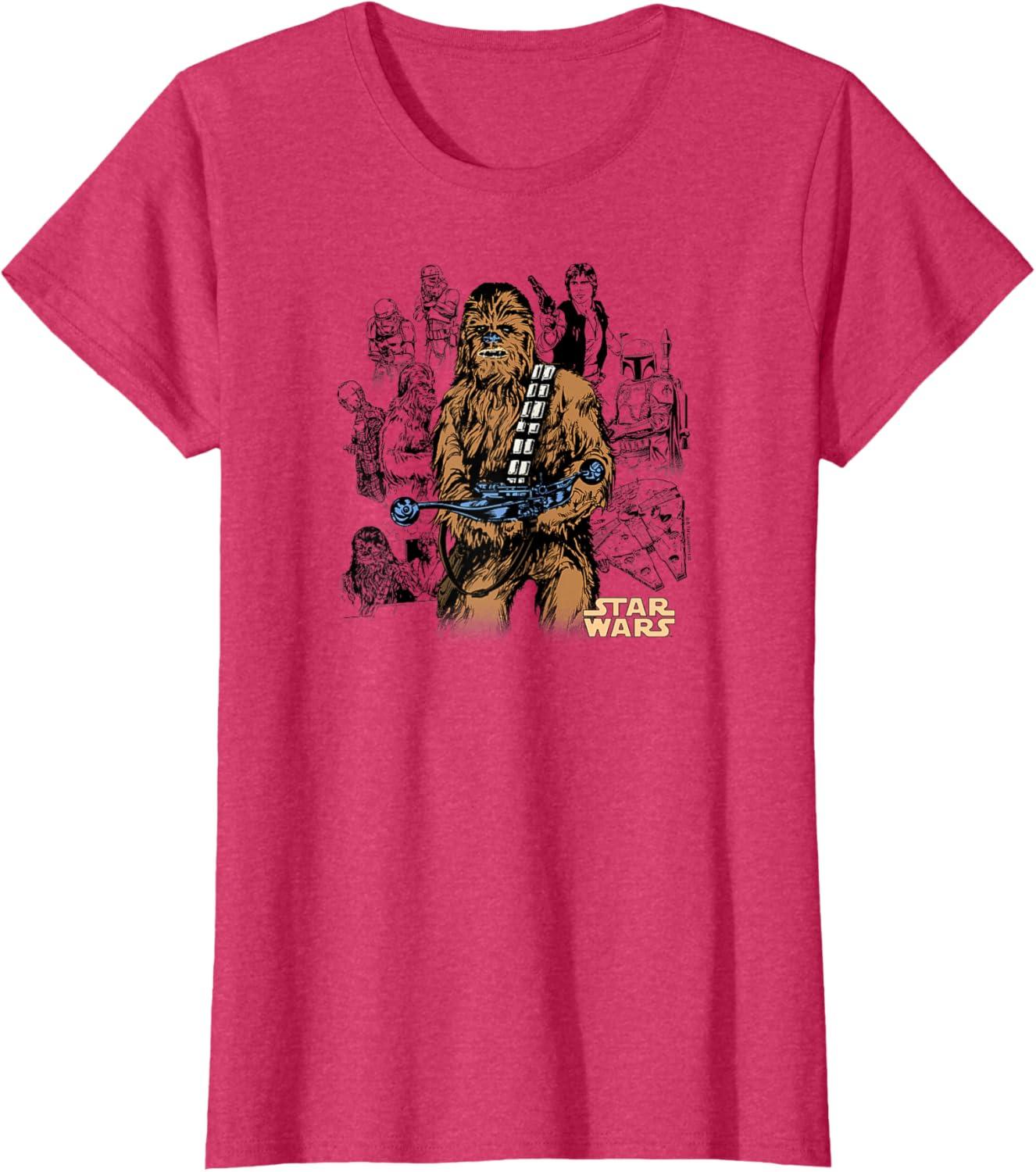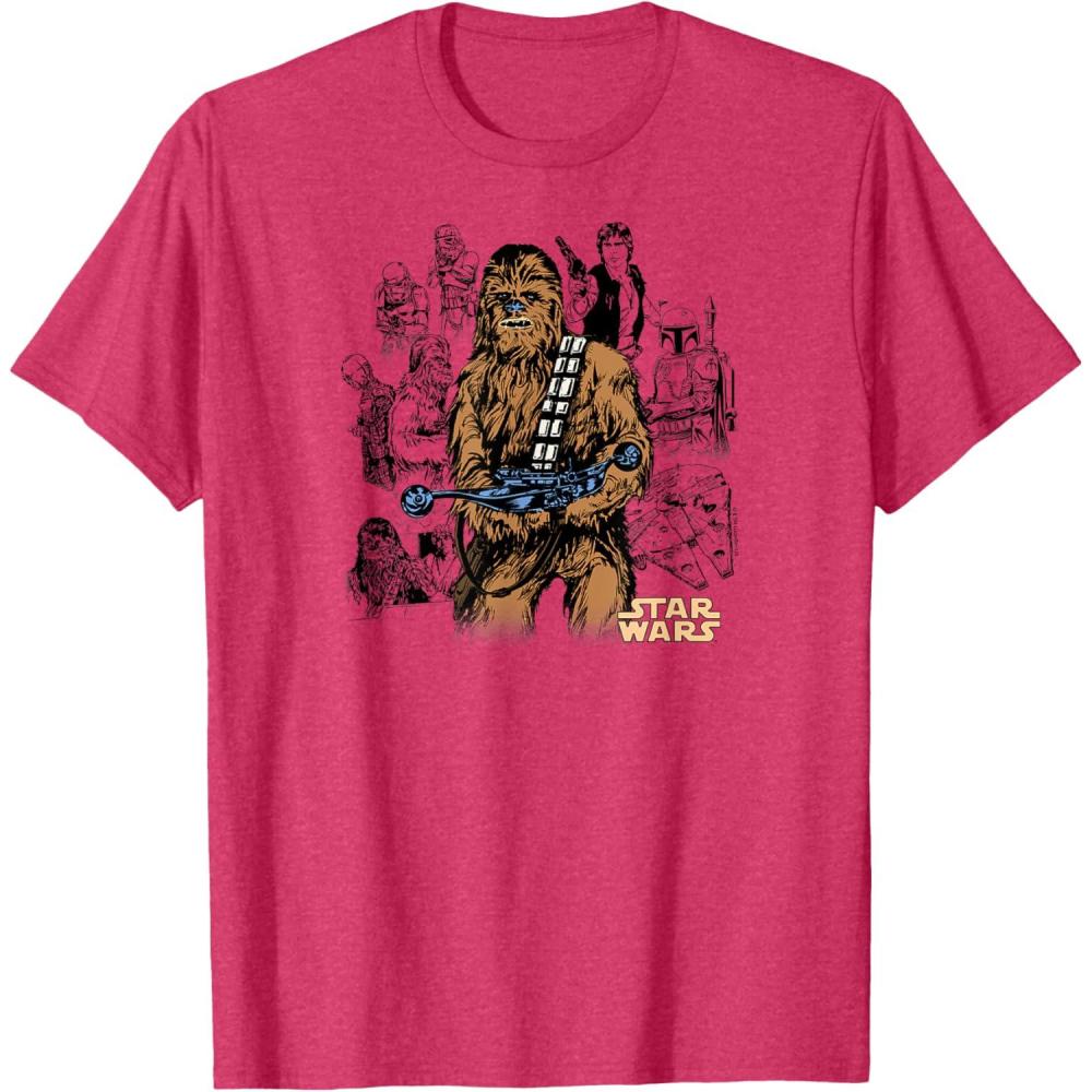 Chewie stands locked, loaded, and ready to rip in this striking hand-inked style graphic. The bold linework captures every snarl and strand of fur, while his signature bandolier and bowcaster signal he's not here to play games. A vintage Star Wars logo anchors the design in galactic history. Whether you're loyal to the Rebellion or just love a Wookiee with bite, this artwork brings iconic strength and style to your everyday mission.