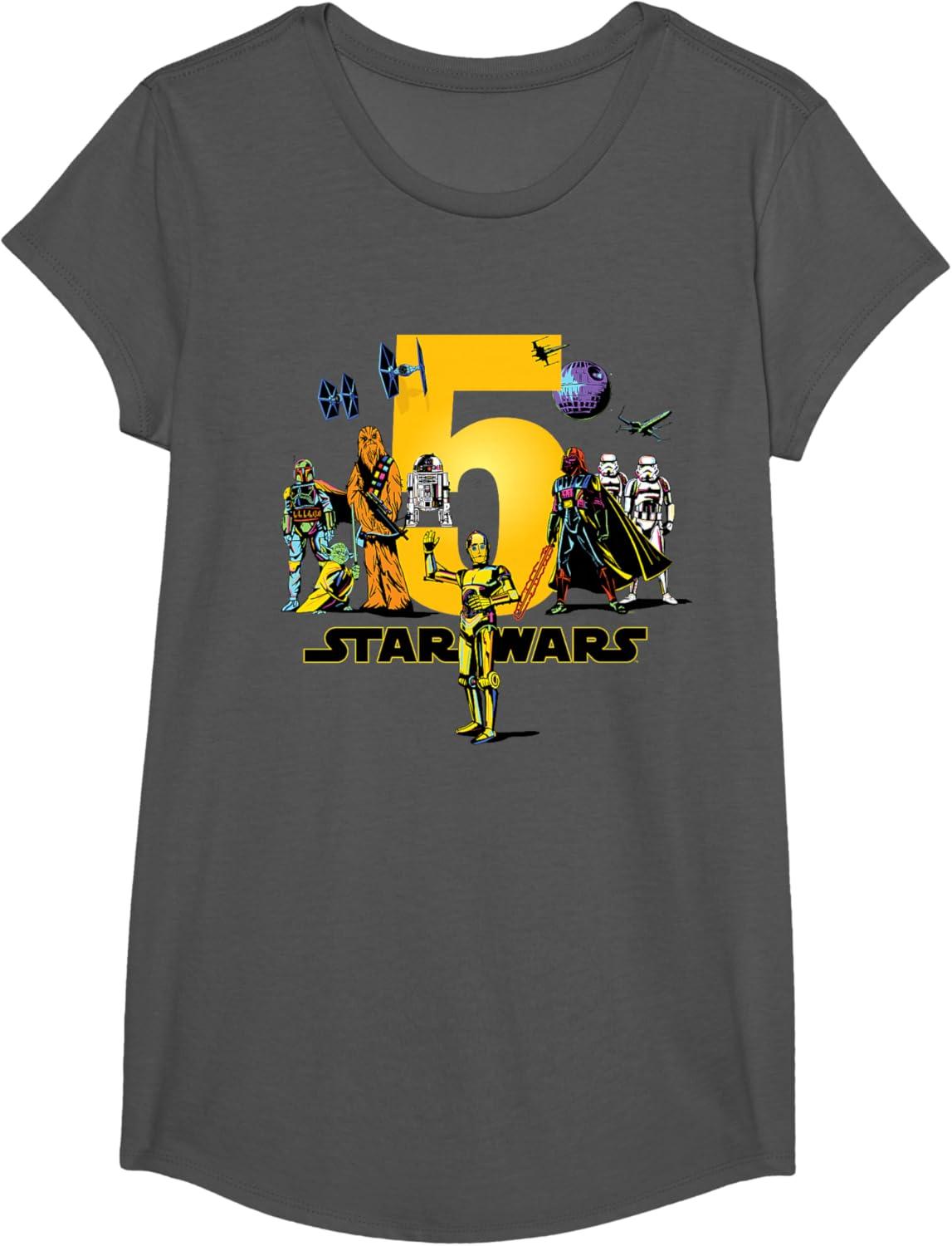 Star Wars Classic Characters Fifth Birthday 5 Years Old T-Shirt(Asphalt Grey)
