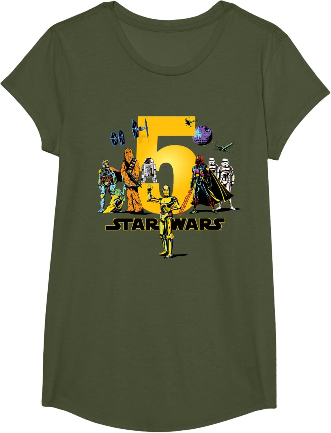 Star Wars Classic Characters Fifth Birthday 5 Years Old T-Shirt(Olive Green)