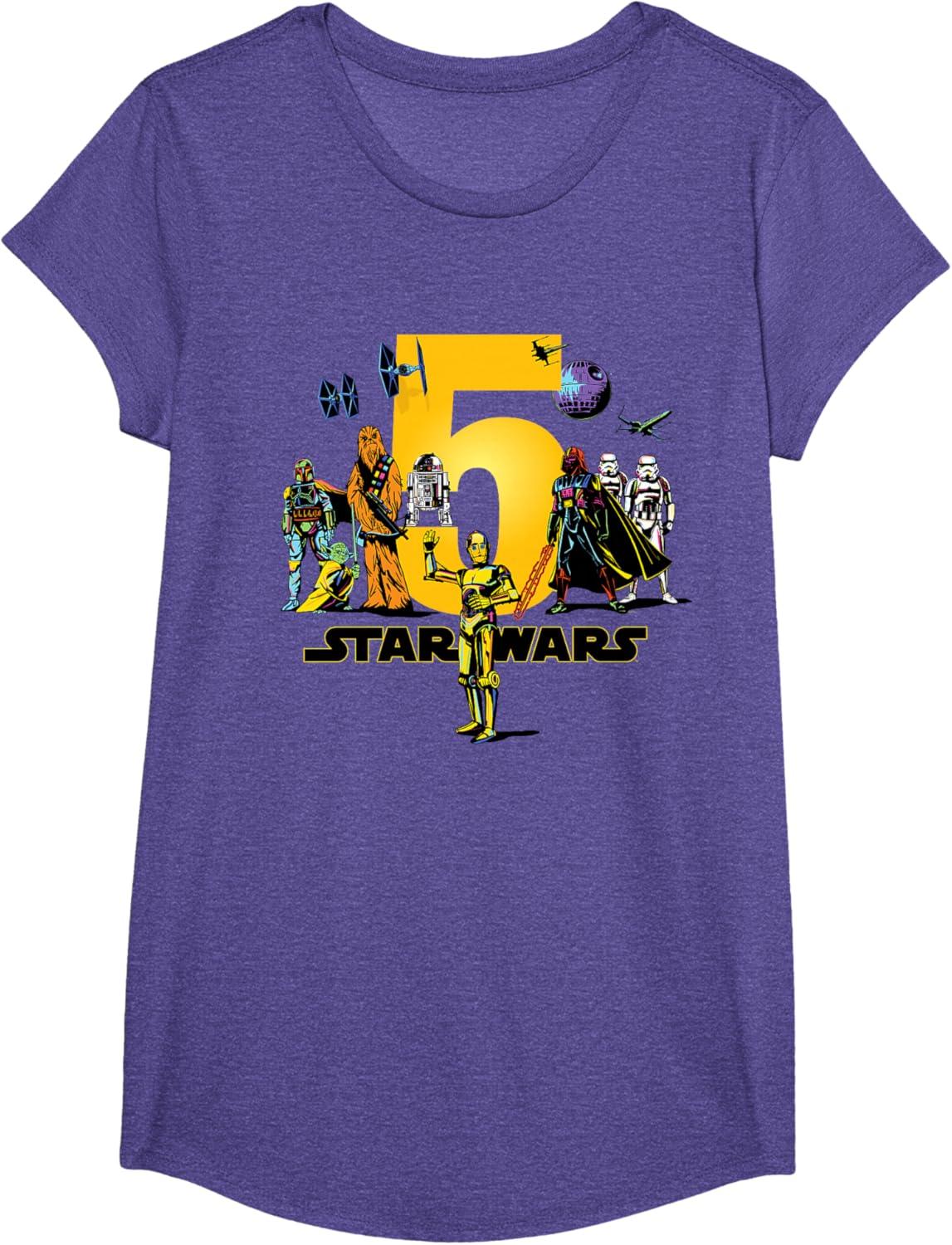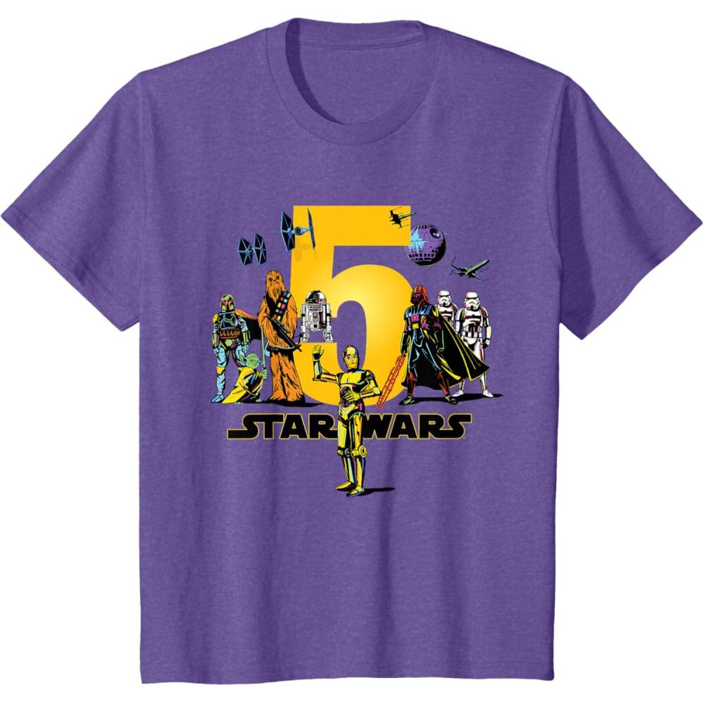 Star Wars Classic Characters Fifth Birthday 5 Years Old T-Shirt(Purple Heather)