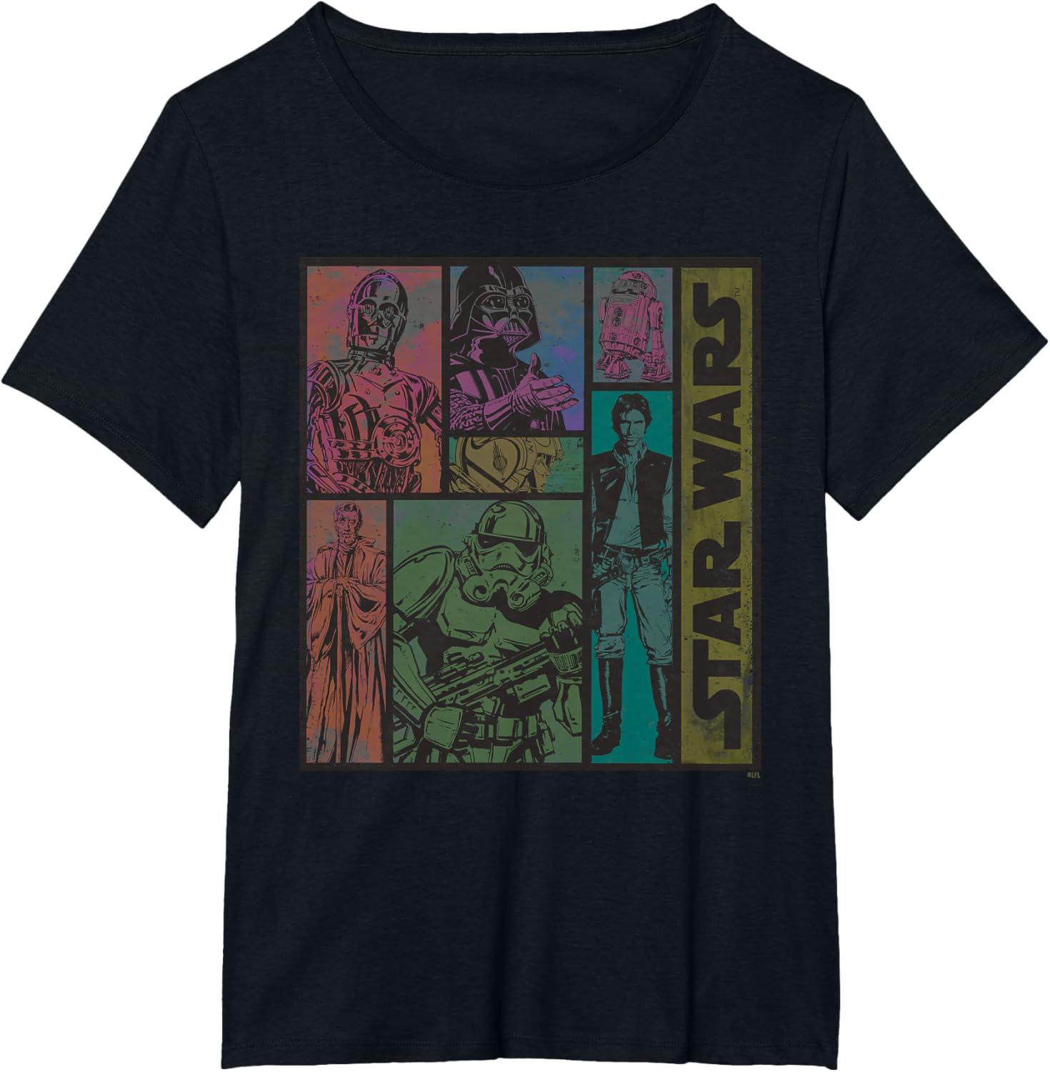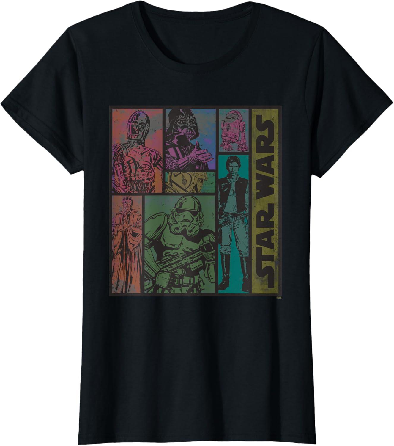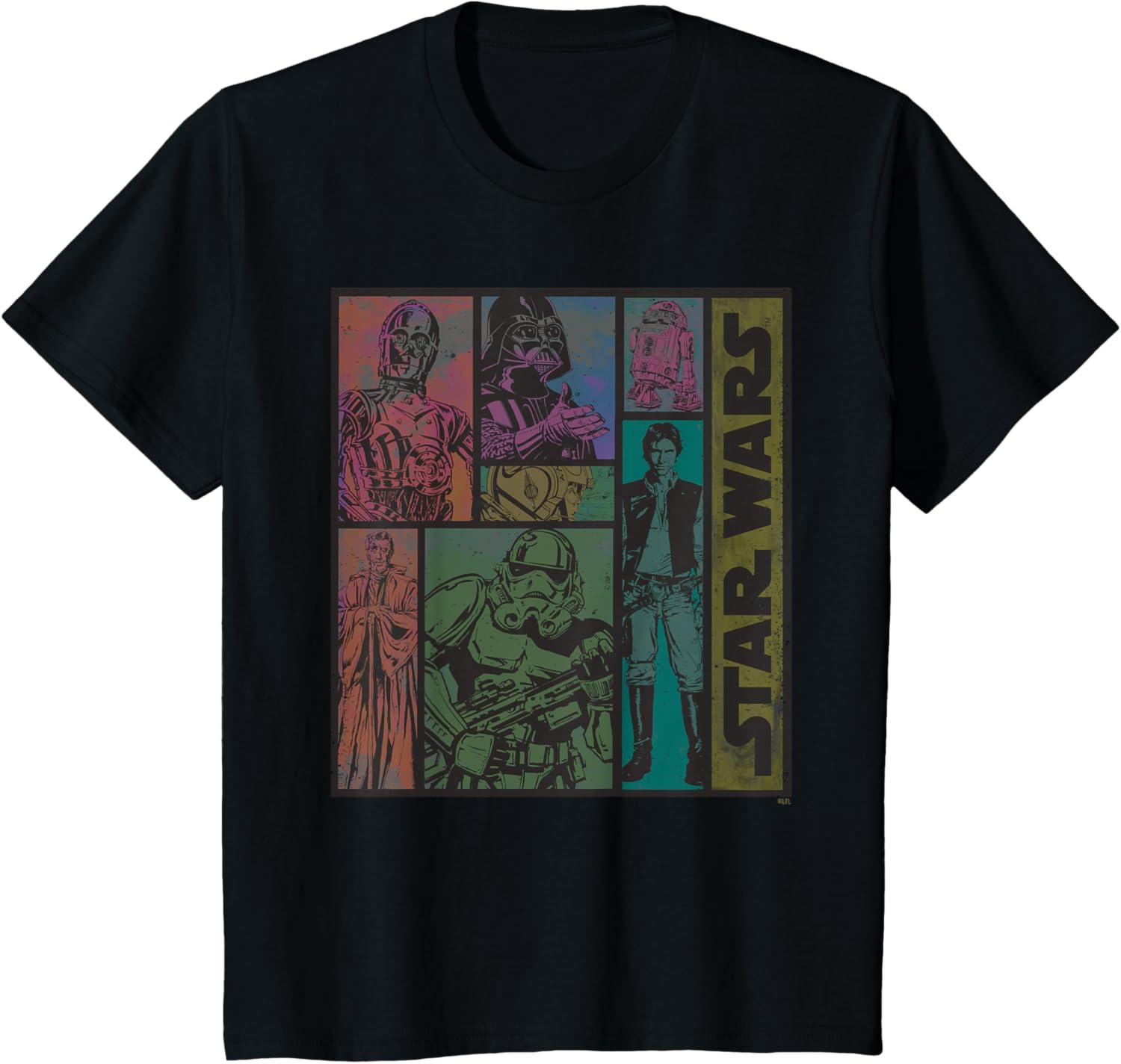 Show off your old-school Star Wars cred with this eye-catching official tee or hoodie featuring vintage comic artwork from a galaxy far, far away! Classic illustrations of Luke Skywalker, Darth Vader, Han Solo, Obi-Wan Kenobi, C-3PO, R2-D2, and an Imperial Stormtrooper – heroes and villains from 1977’s “Star Wars: Episode IV – A New Hope” – are printed in a retro color style with an authentic distressed look, accompanied by “Star Wars” written up the side. A great gift for a lifelong Star Wars fan! Heading to Disneyland or Walt Disney World? Get ready for Galaxy’s Edge with a Star Wars tee that’s perfect for coordinating and matching up with friends and family. Available in youth and adult sizes. Find it in a t-shirt, premium t-shirt, tank top, v-neck, long sleeve tee, hoodie, and sweatshirt.