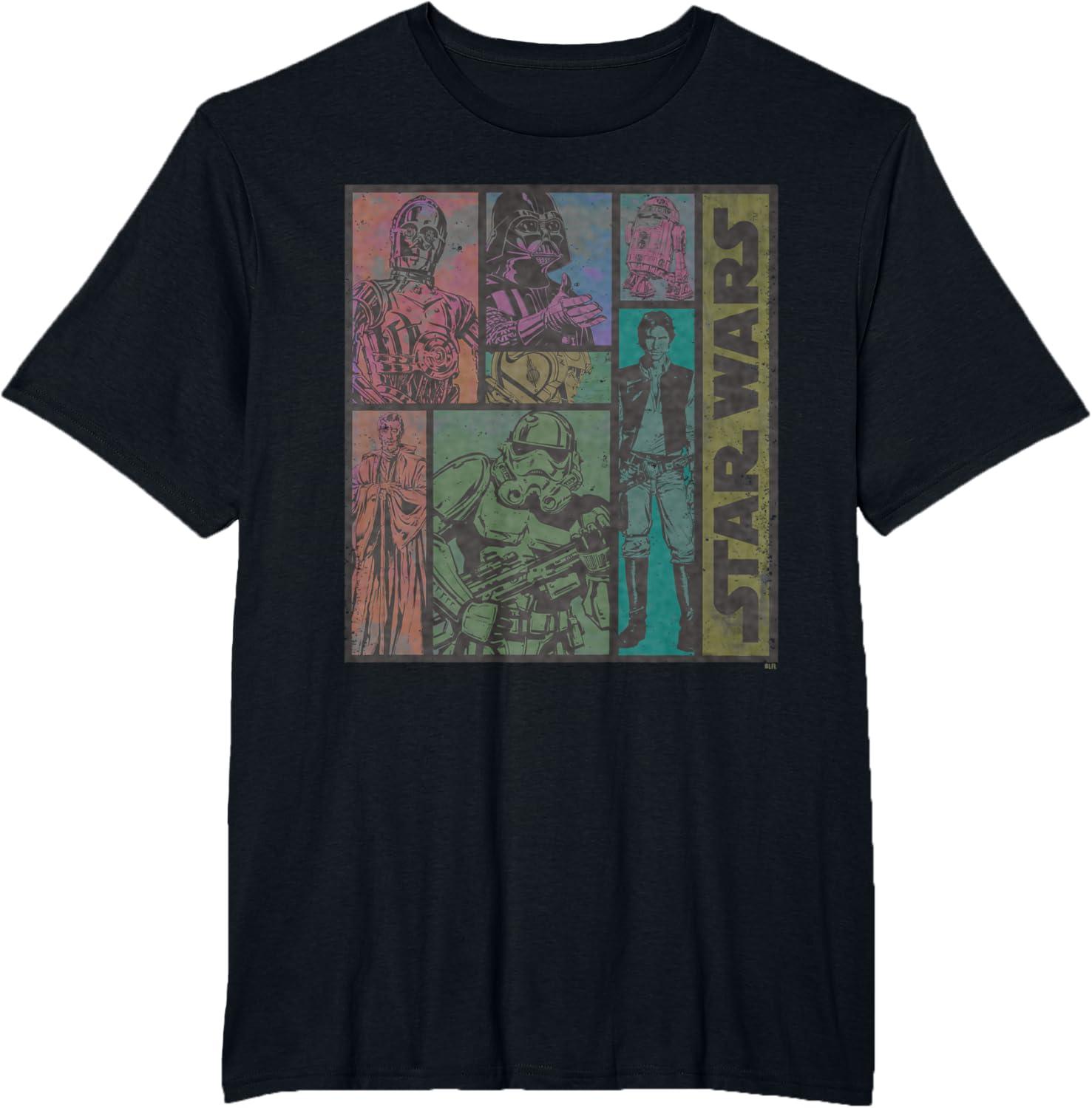 Star Wars Classic Comic Art Episode IV Retro Vintage T-Shirt(Black)