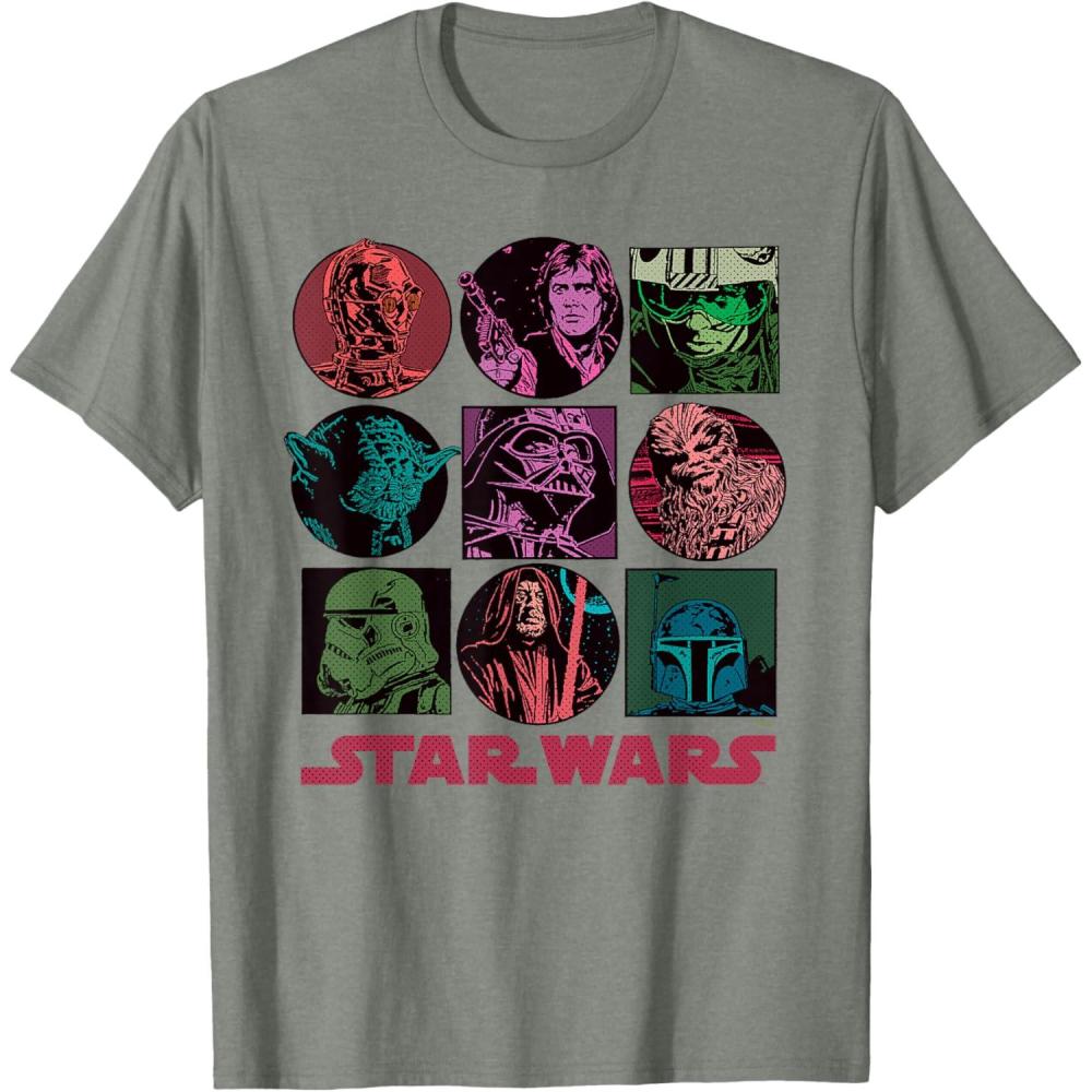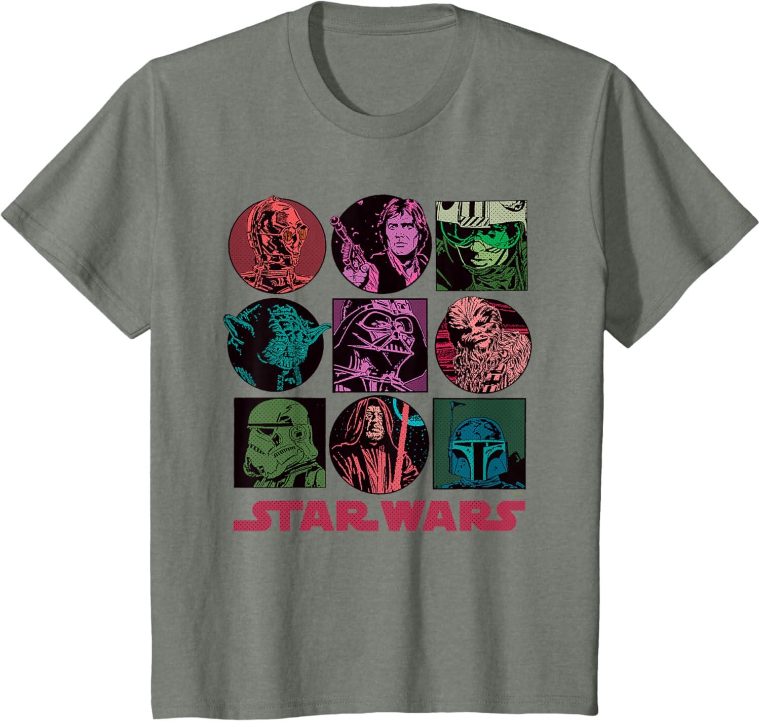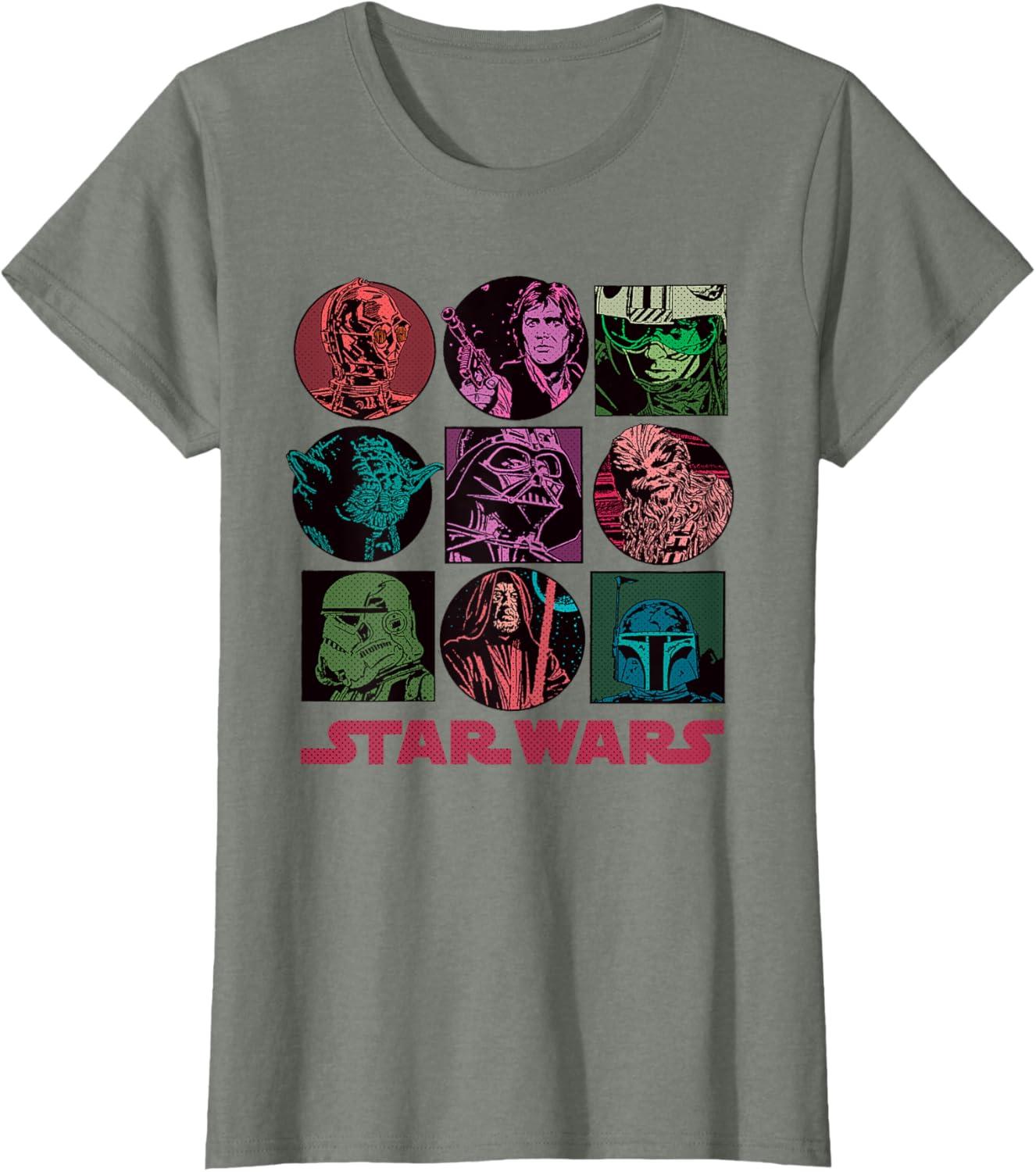 Show off your old-school Star Wars cred with this eye-catching official tee or hoodie featuring vintage comic artwork from a galaxy far, far away! Classic illustrations of C-3PO, Han Solo, Luke Skywalker, Yoda, Darth Vader, Chewbacca, an Imperial Stormtrooper, Obi-Wan Kenobi, and Boba Fett from the original movies feature a cool retro coloring and dot print effect, with “Star Wars” written underneath. A great gift for a lifelong Star Wars fan! Heading to Disneyland or Walt Disney World? Get ready for Galaxy’s Edge with a Star Wars tee that’s perfect for coordinating and matching up with friends and family. Available in youth and adult sizes. Find it in a t-shirt, premium t-shirt, tank top, v-neck, long sleeve tee, hoodie, and sweatshirt.