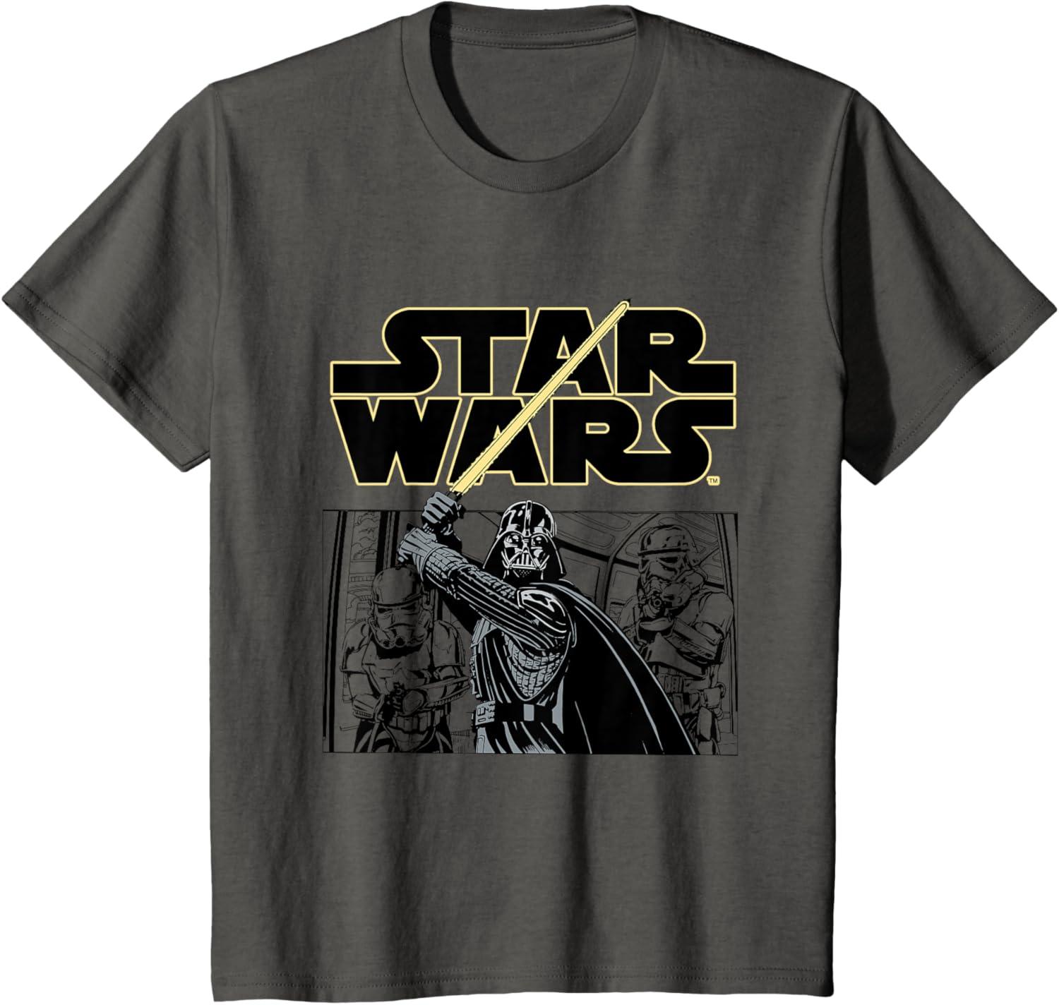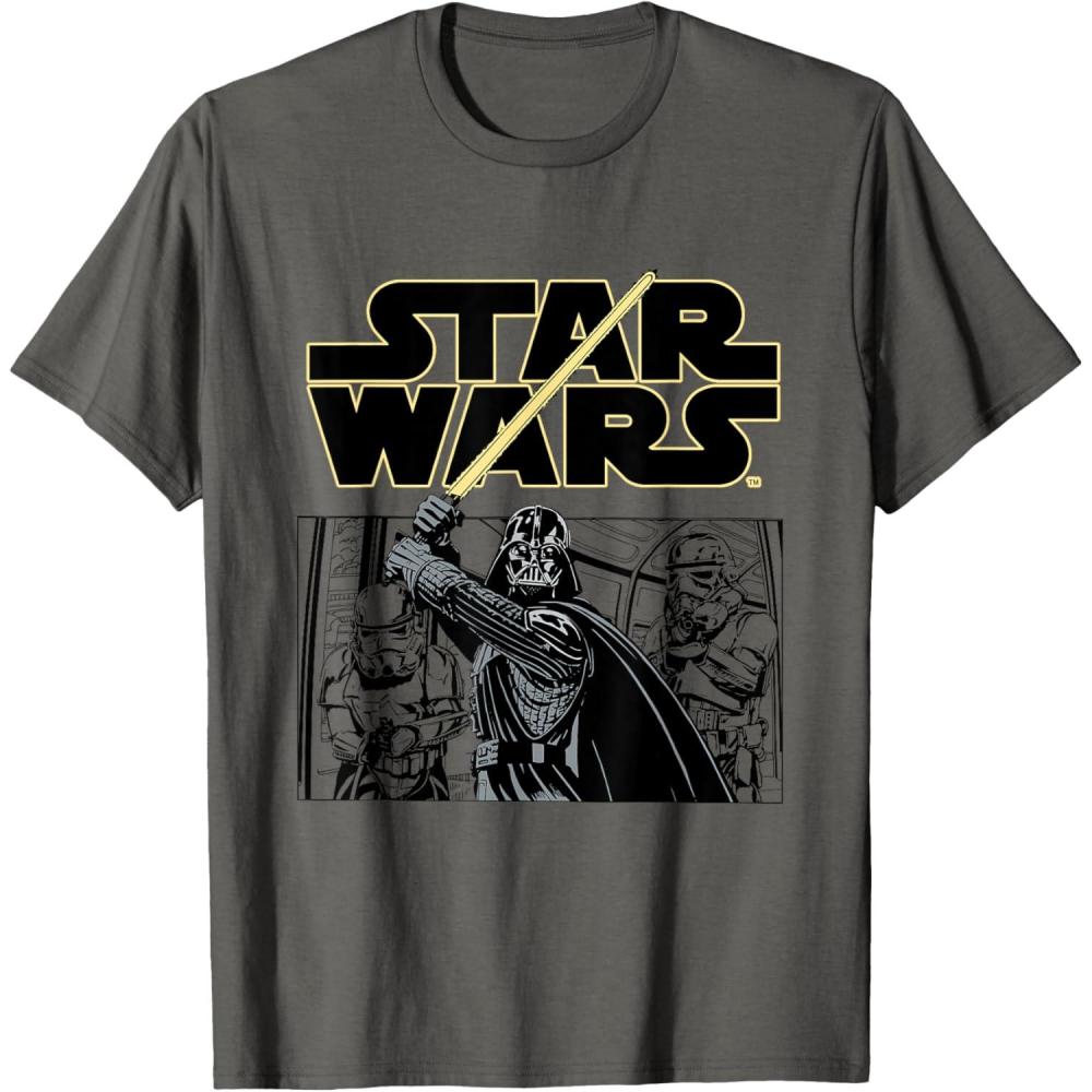 Star Wars Classic Darth Vader Empire Attack Panel T-Shirt(Asphalt Grey)