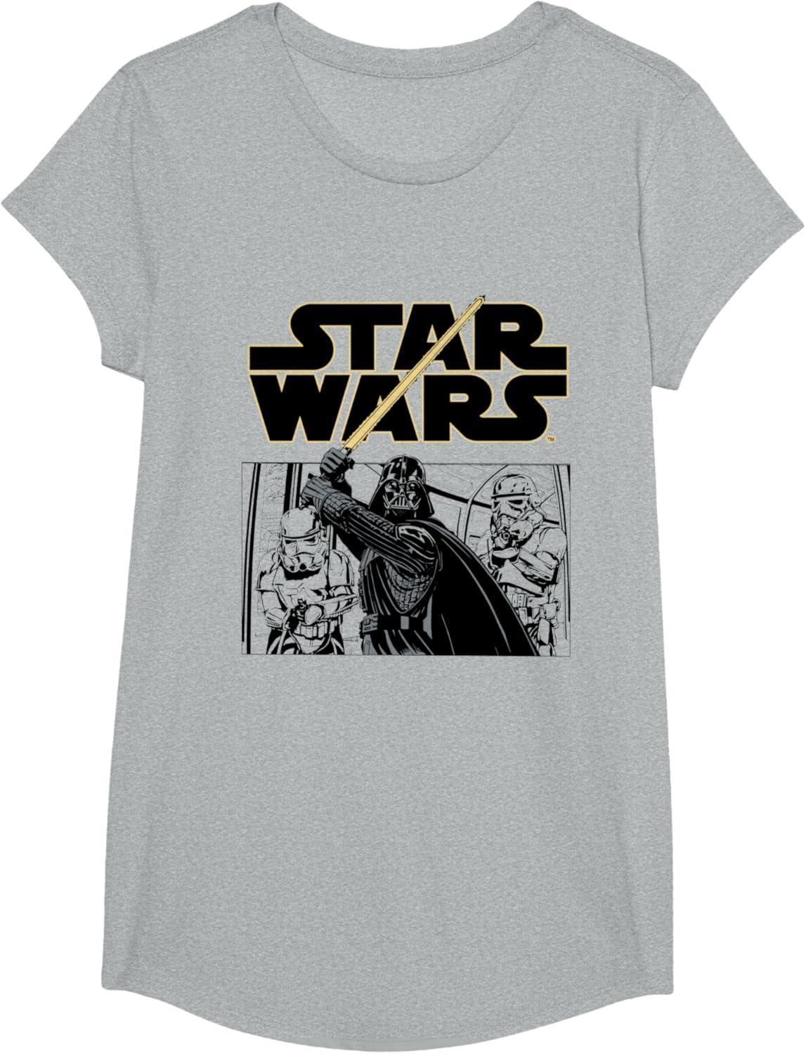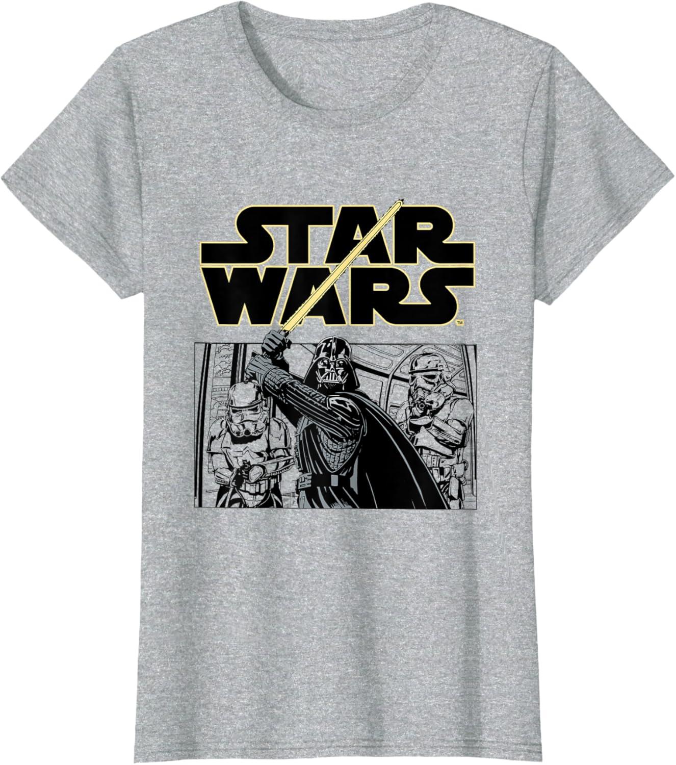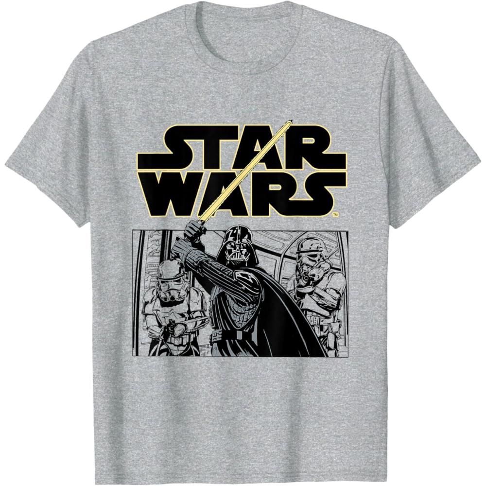 Star Wars Classic Darth Vader Empire Attack Panel T-Shirt(Heather Grey)