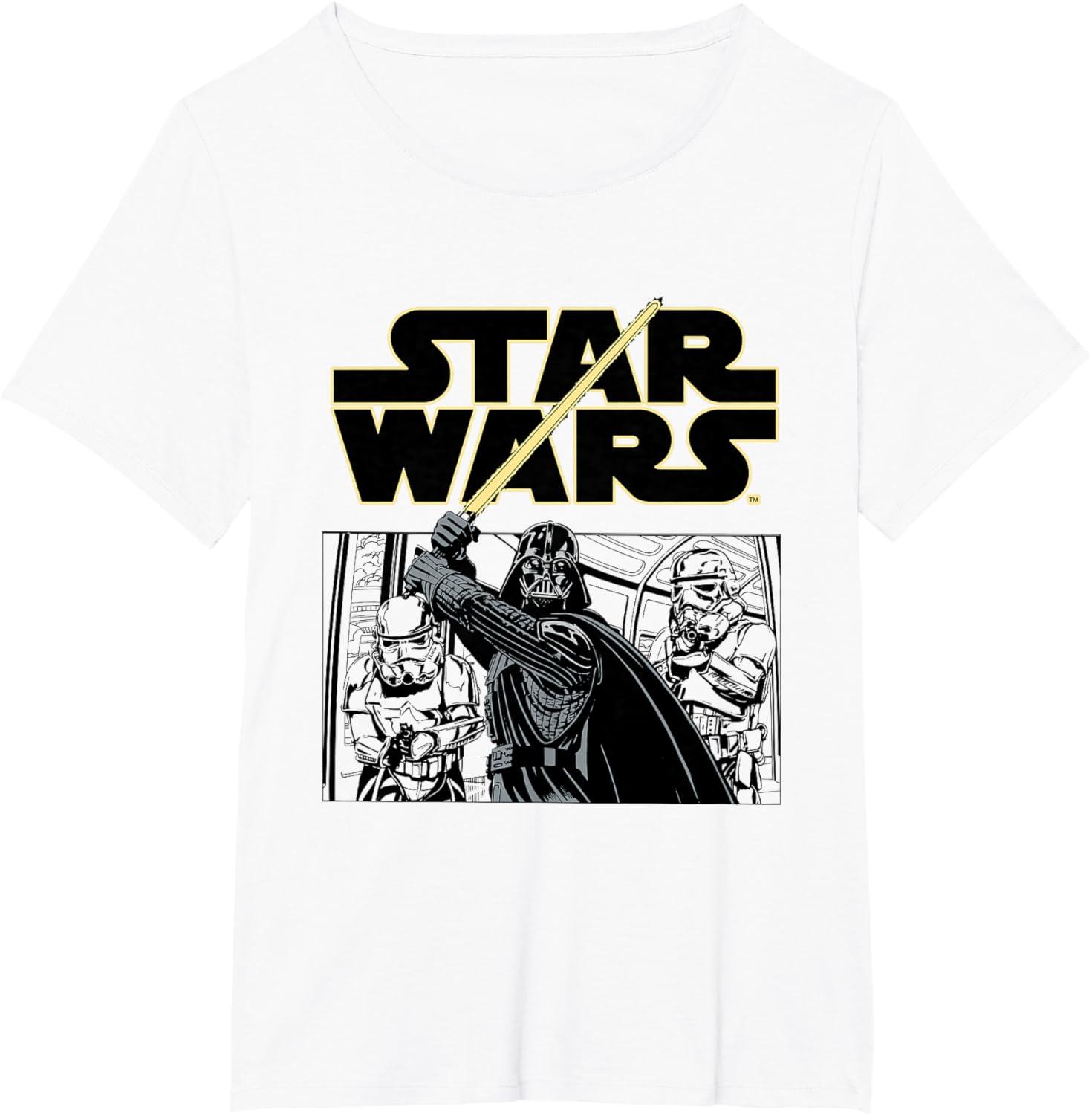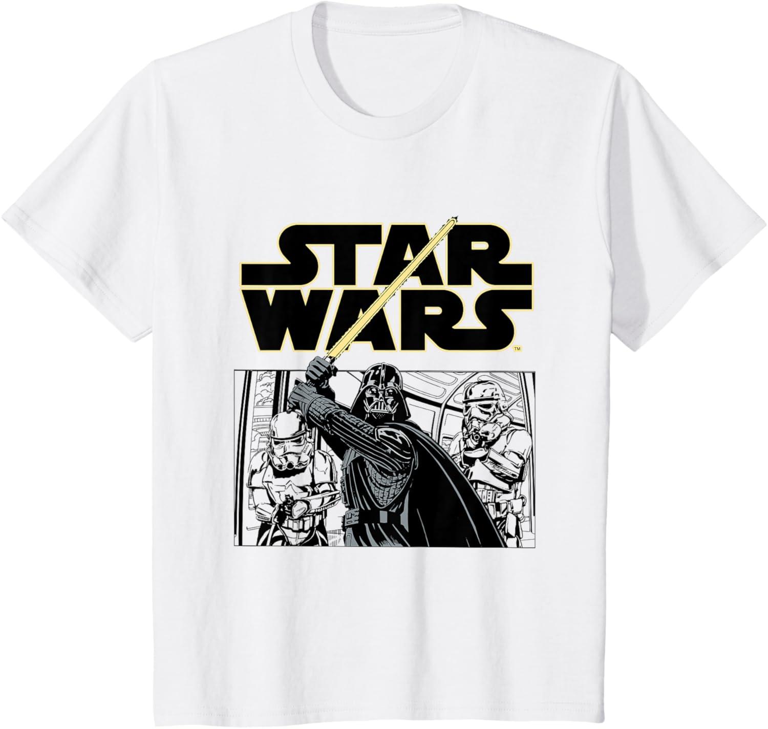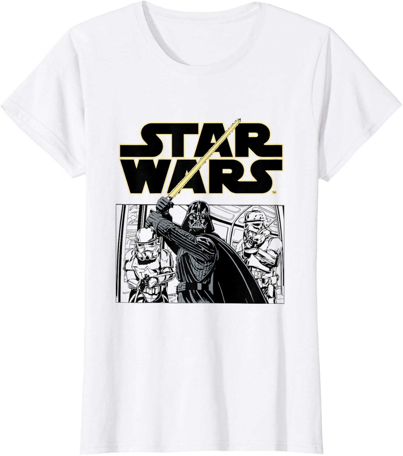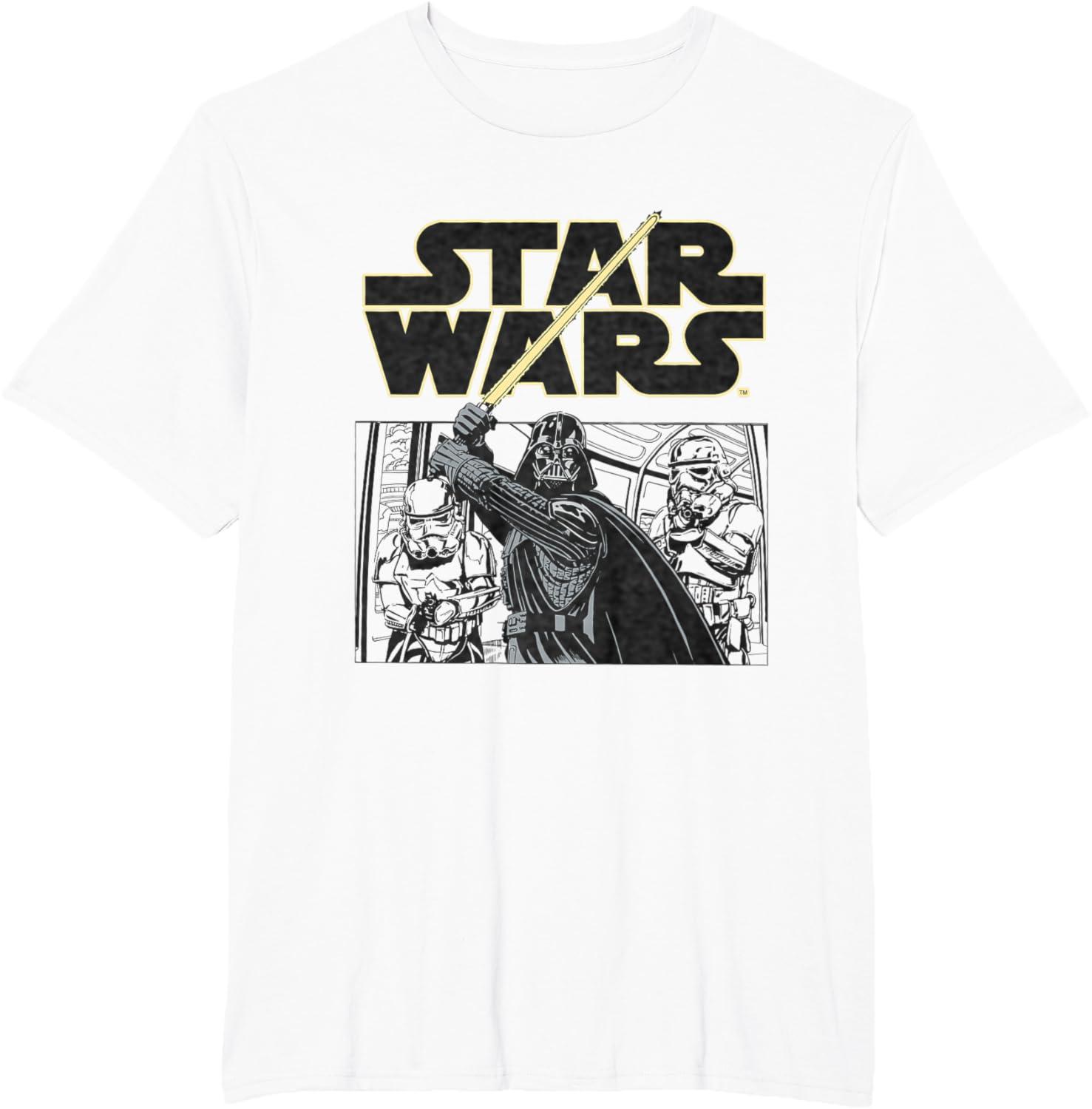 Star Wars Classic Darth Vader Empire Attack Panel T-Shirt(White)
