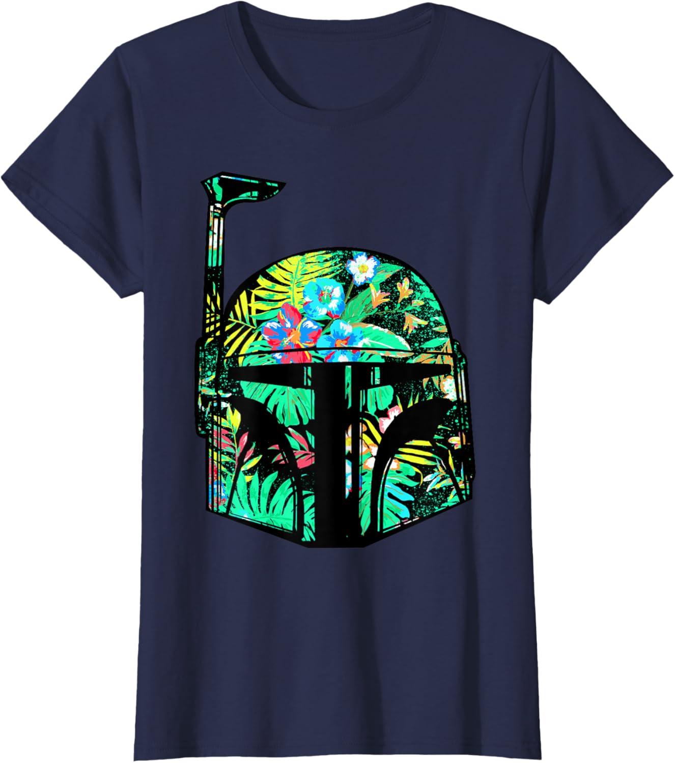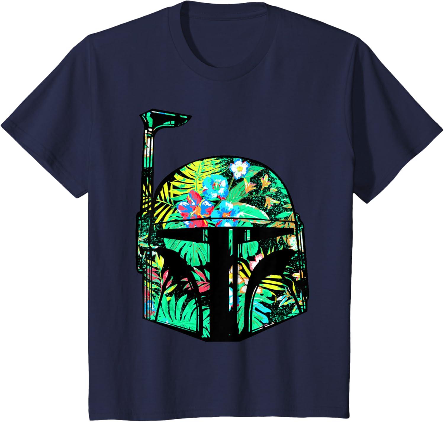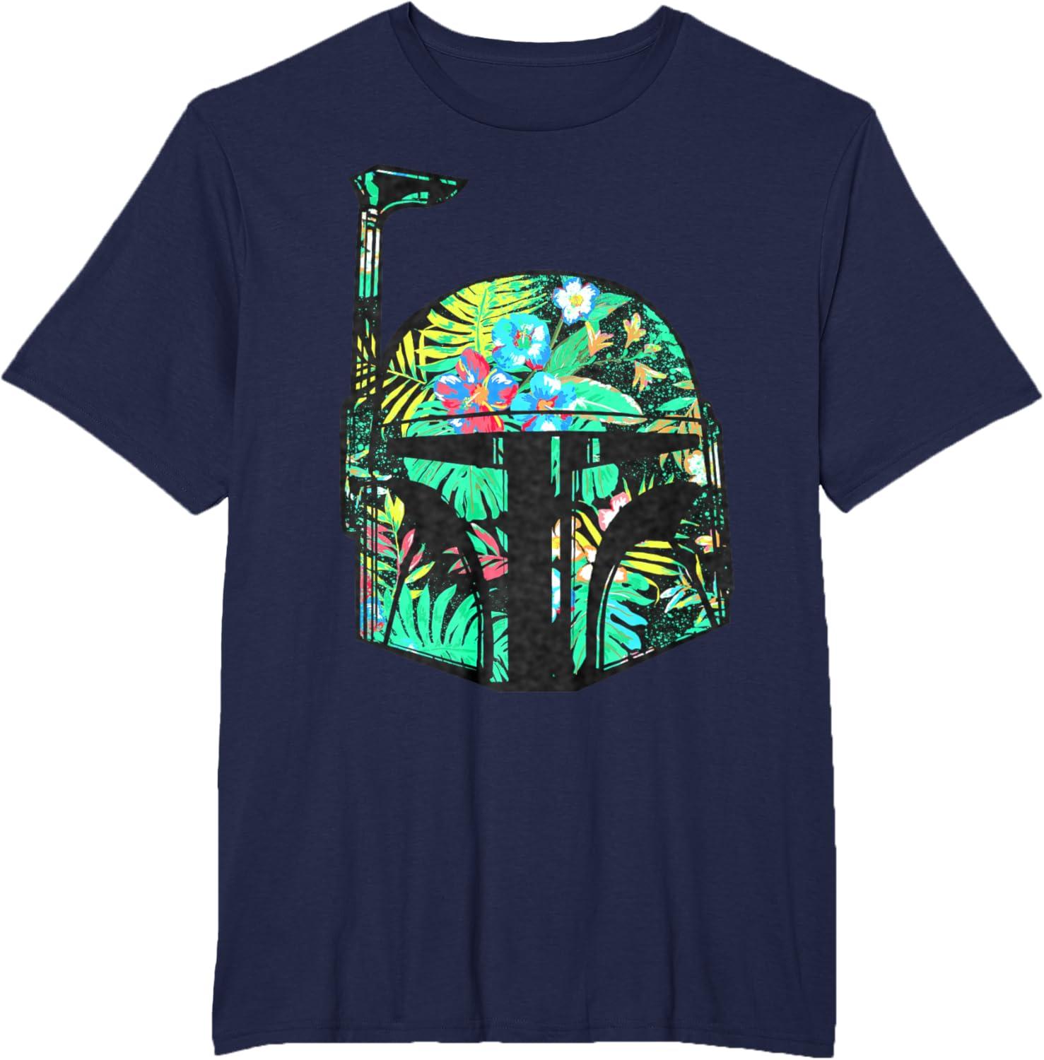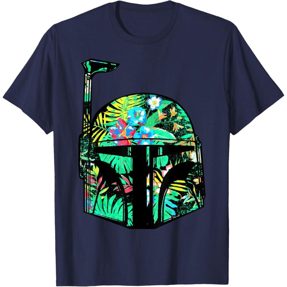 Star Wars Classic Hawaiian Print Boba Fett Helmet T-Shirt C1 T-Shirt(Navy Blue)