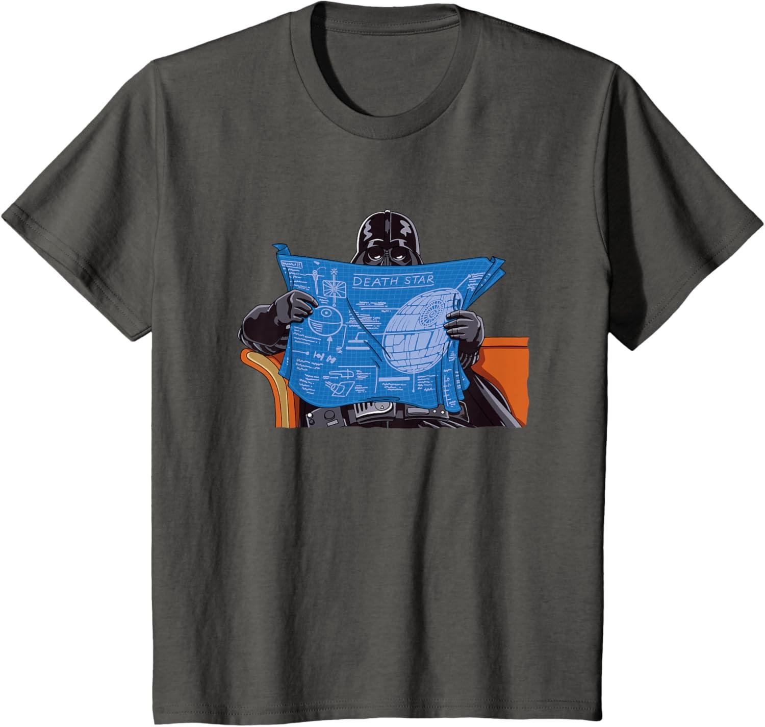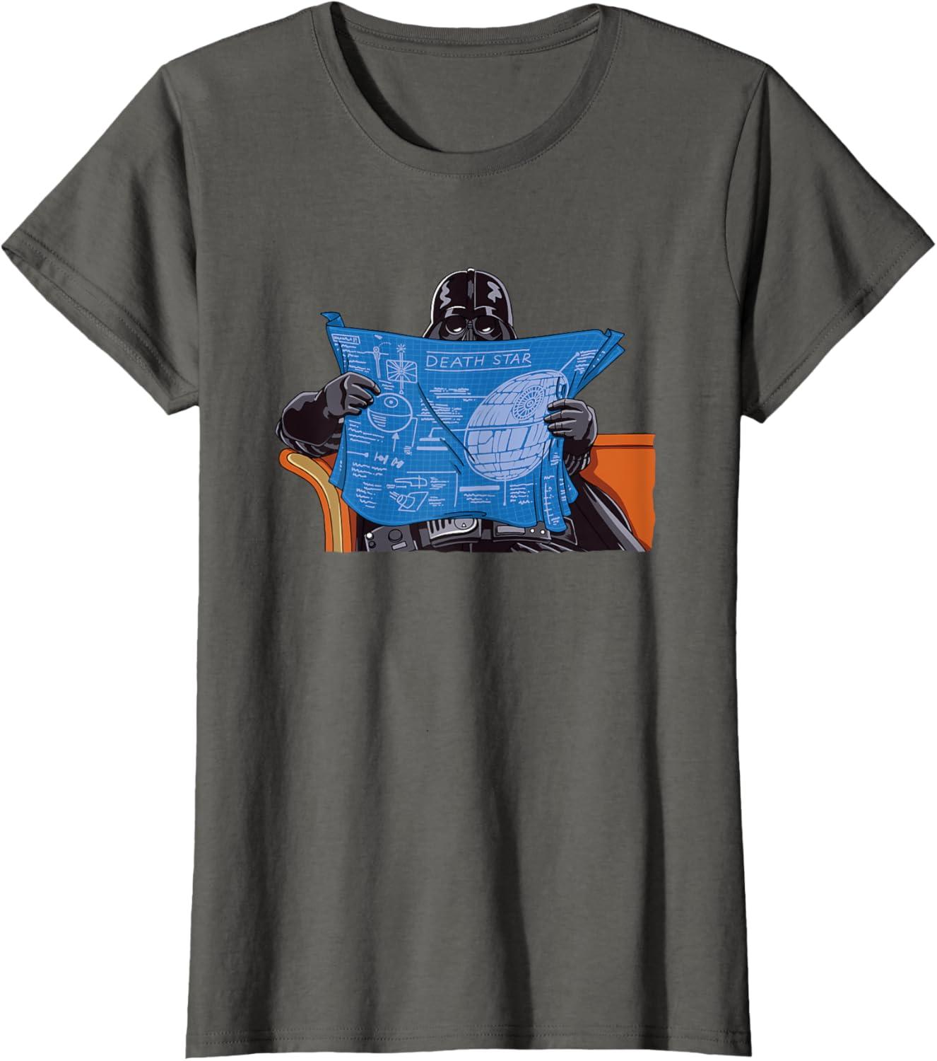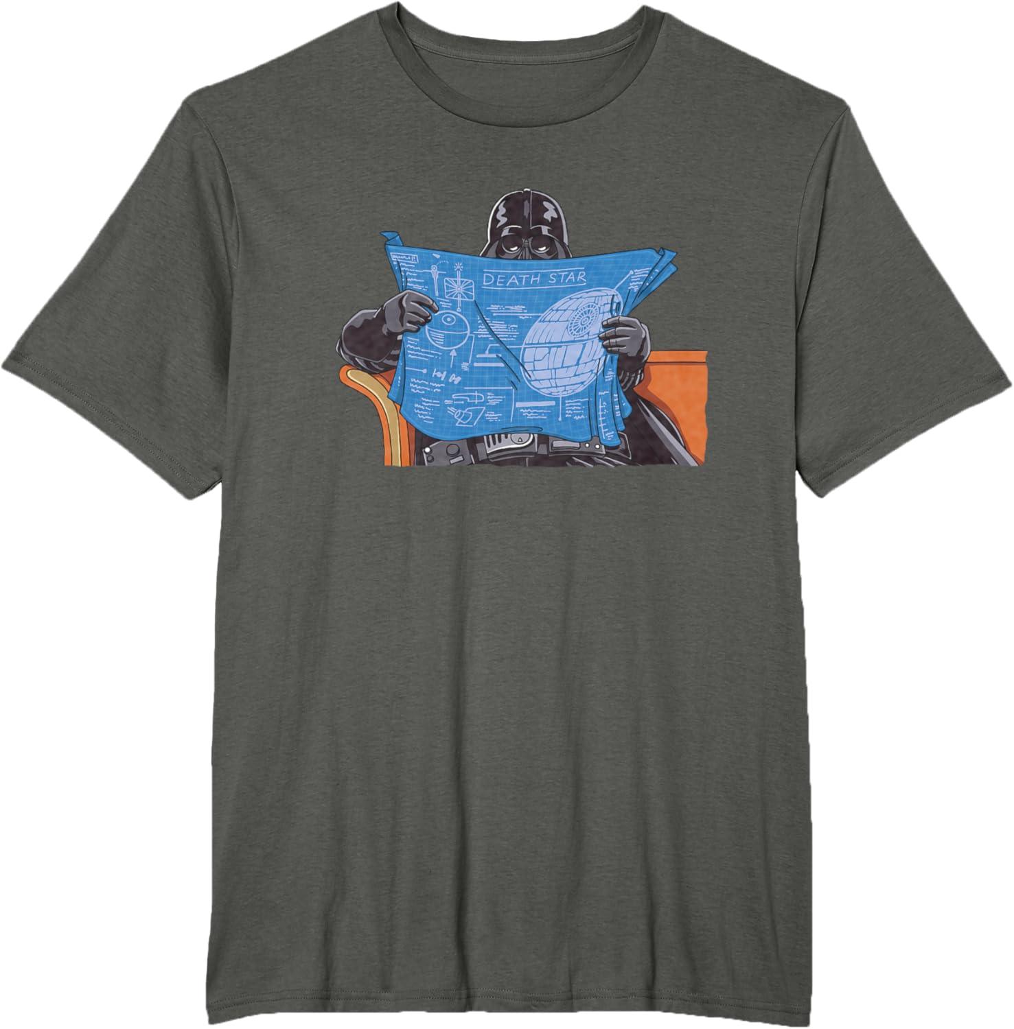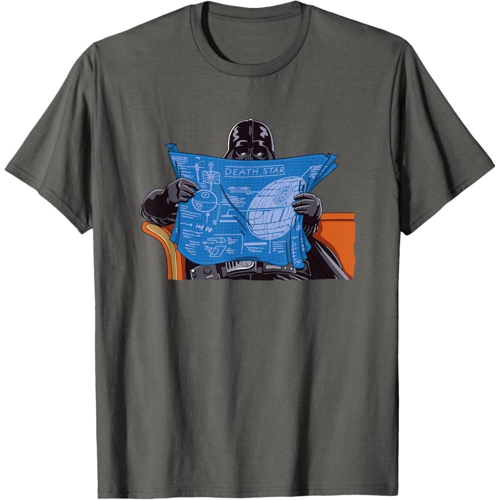 Star Wars Darth Vader Casually Reading Death Star Blueprints T-Shirt(Asphalt Grey)