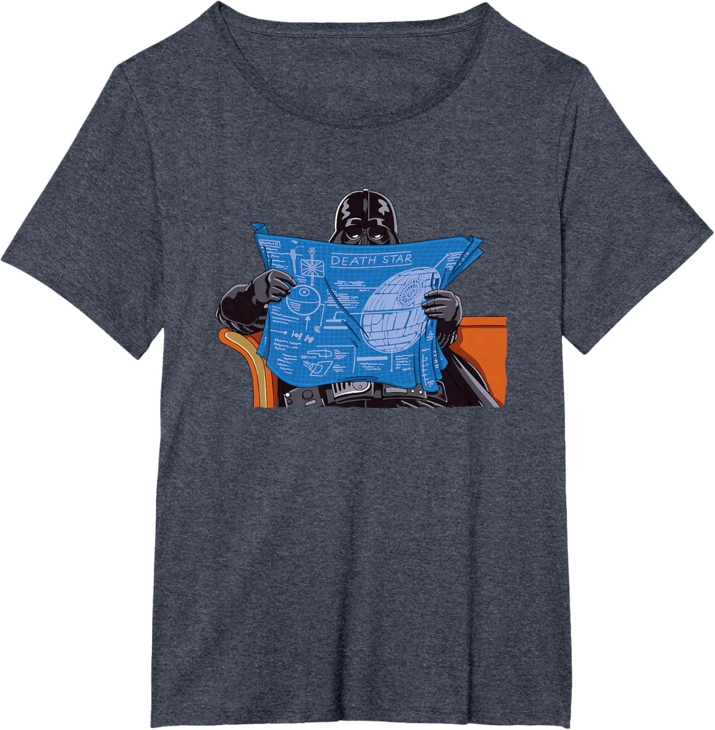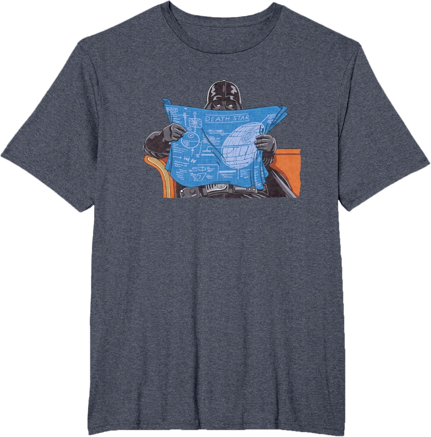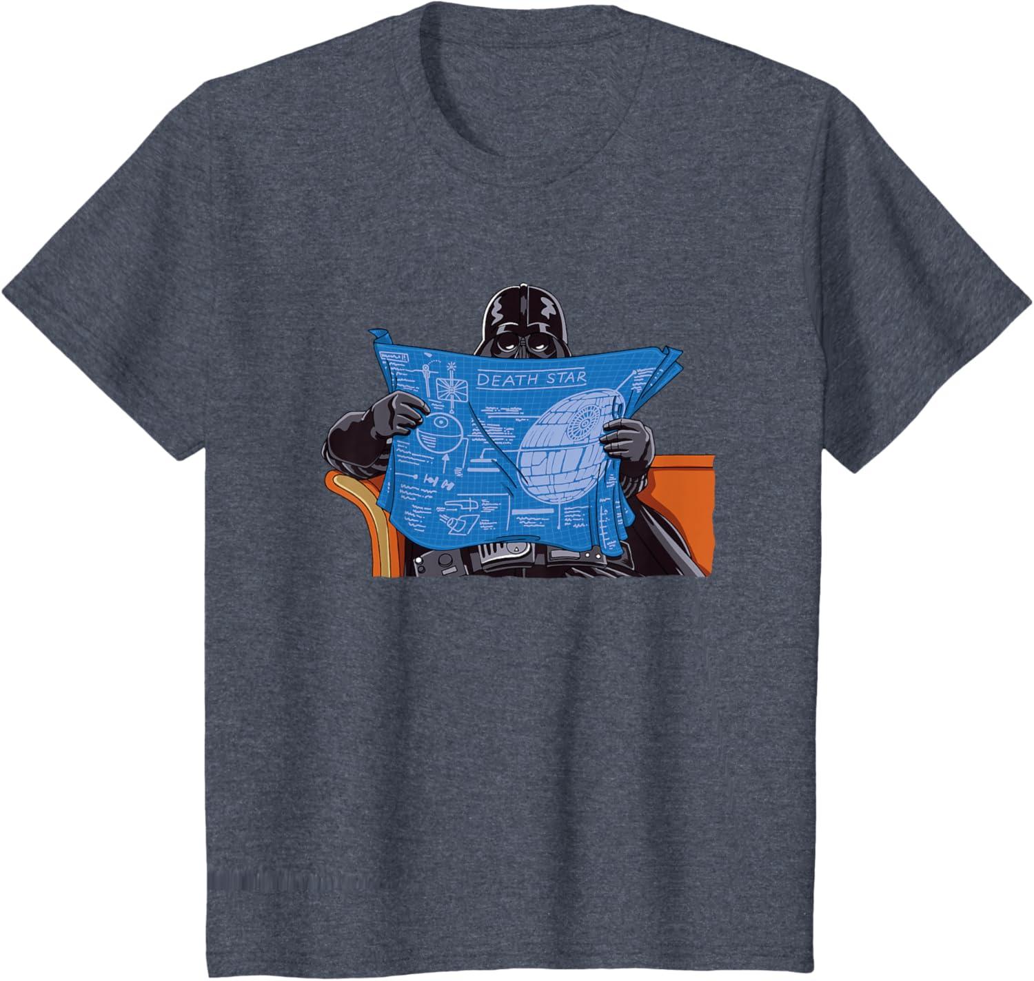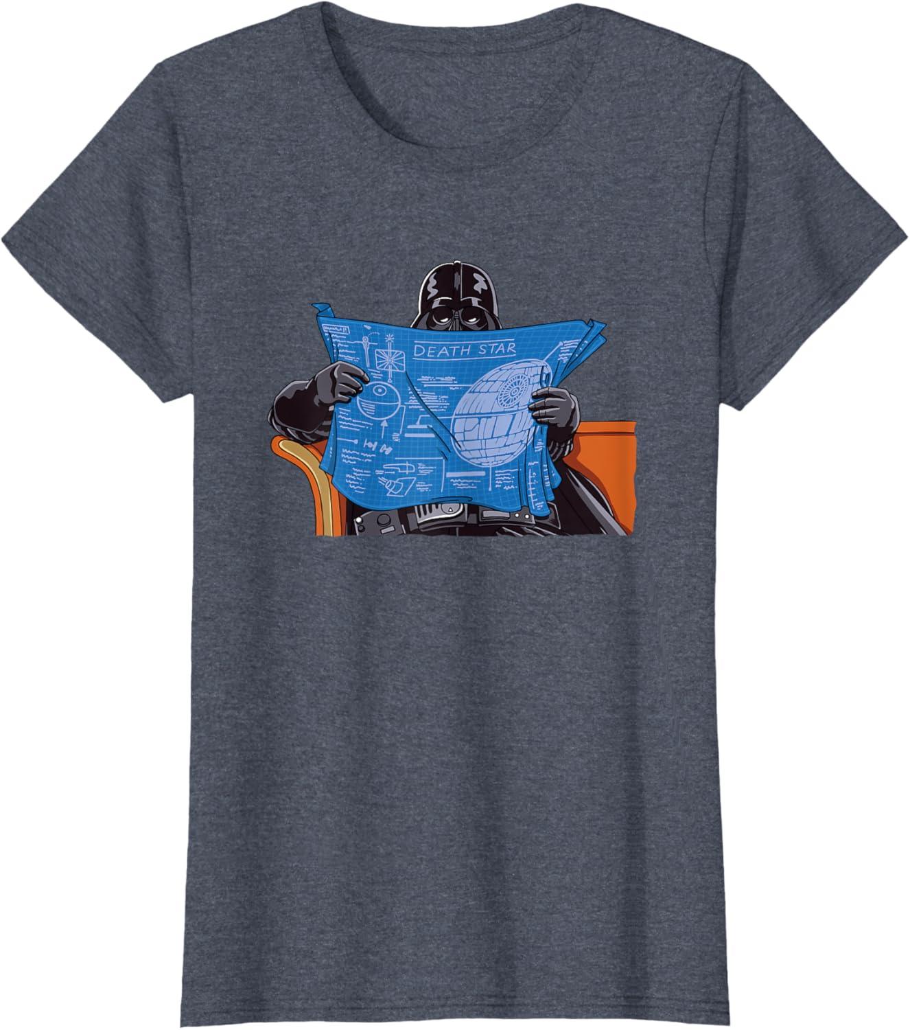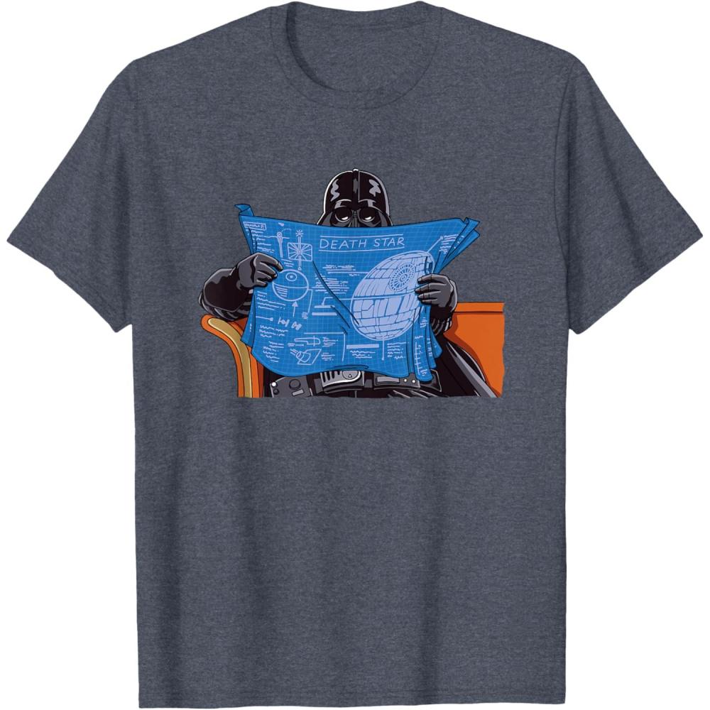Star Wars Darth Vader Casually Reading Death Star Blueprints T-Shirt(Heather Grey)
