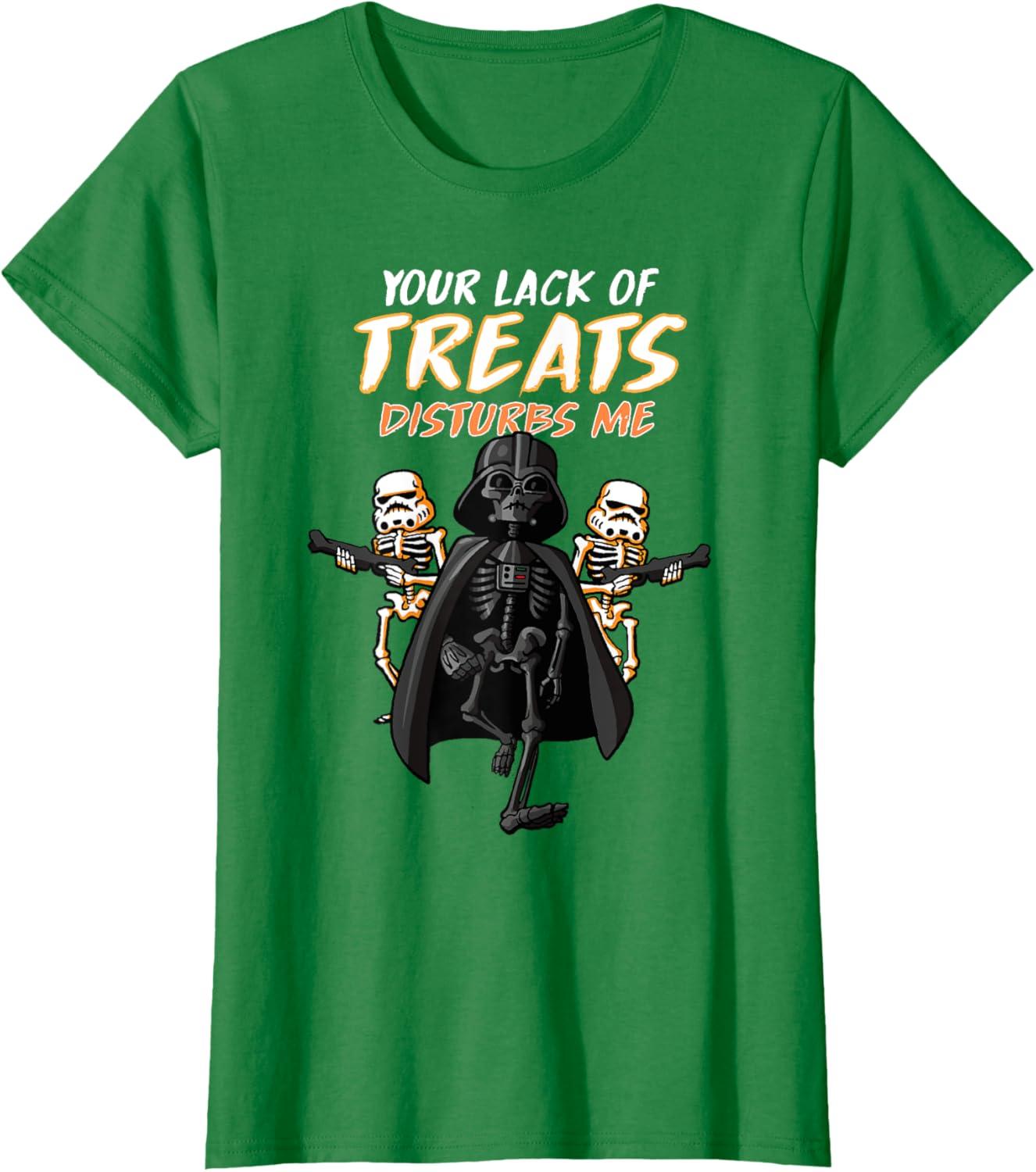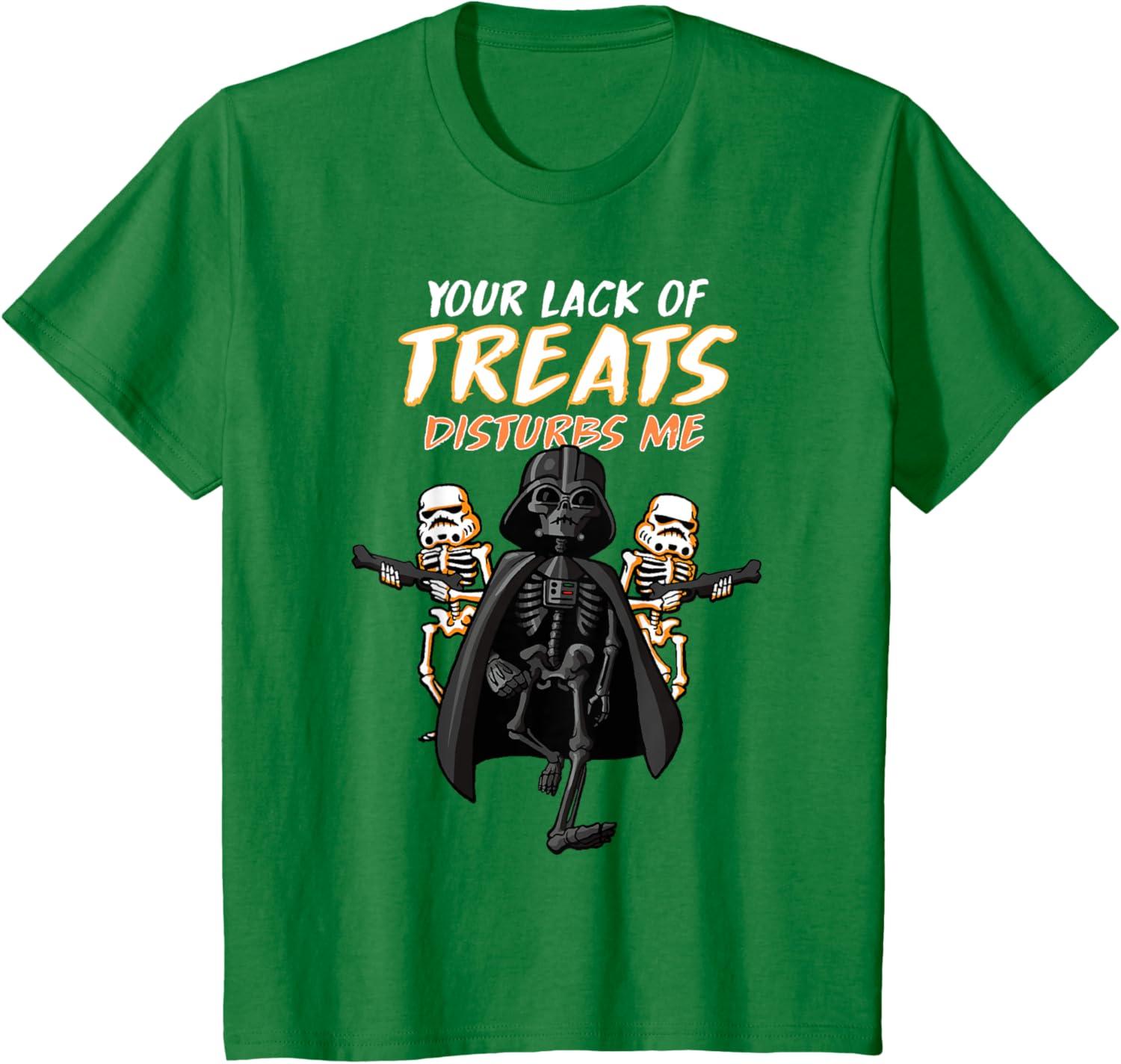 Command all the candy in the galaxy with every wear of this Halloween Star Wars top. Featuring a trio of skeletal Imperial forces, including Darth Vader with a festive take on his famous line, “Your Lack Of Treats Disturbs Me,” this Halloween top makes a spooky style statement. This Star Wars design is available on a t-shirt, tank top, long sleeve tee, and sweatshirt! Planning a trip to Disney Parks and Resorts? Whether it's Disneyland or Walt Disney World, get ready for Star Wars: Galaxy's Edge with a Star Wars tee for you or matching tops for the whole family.
