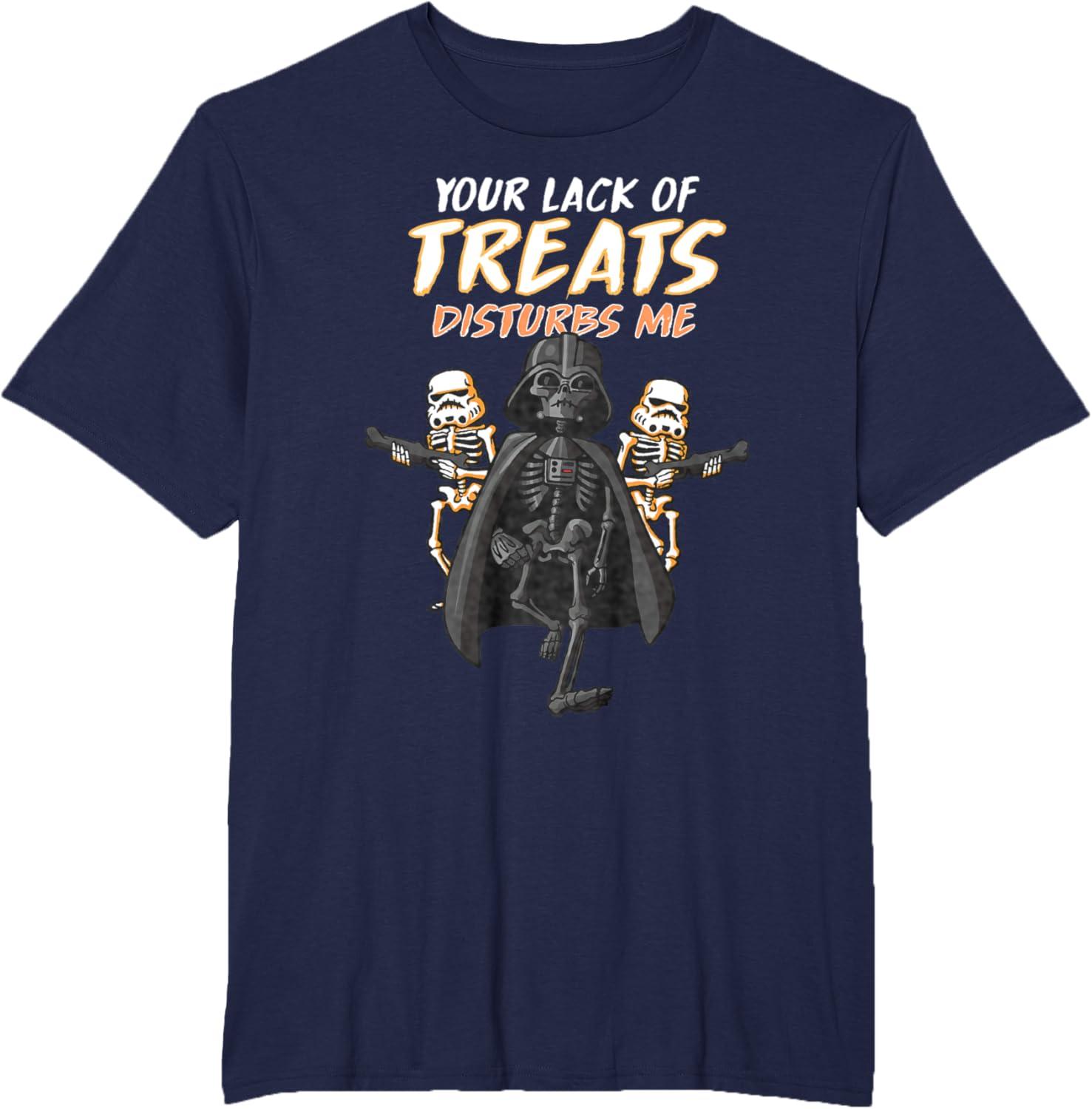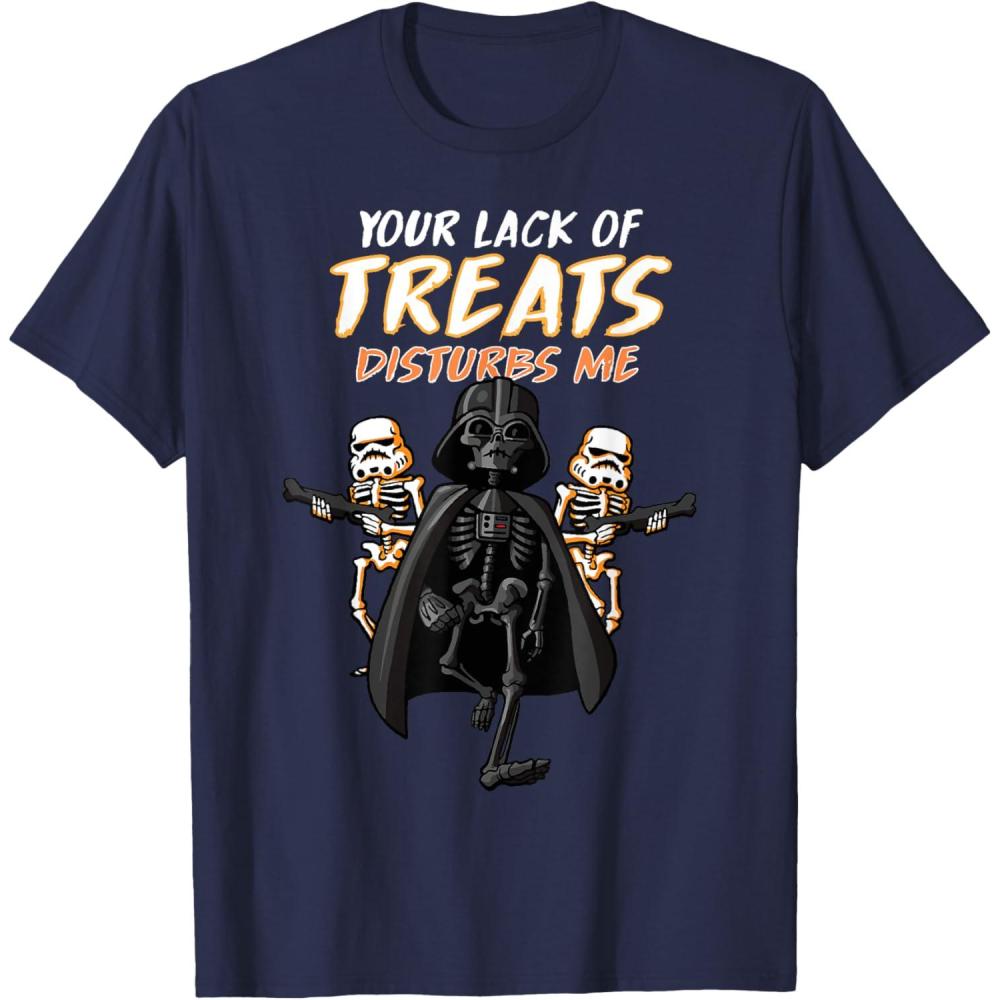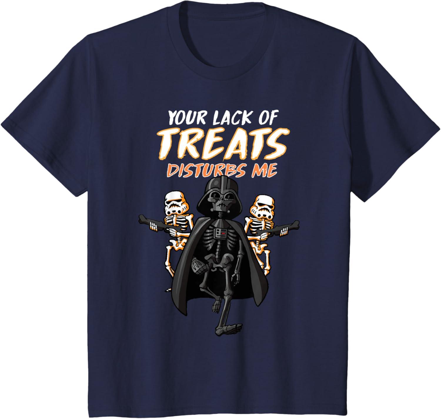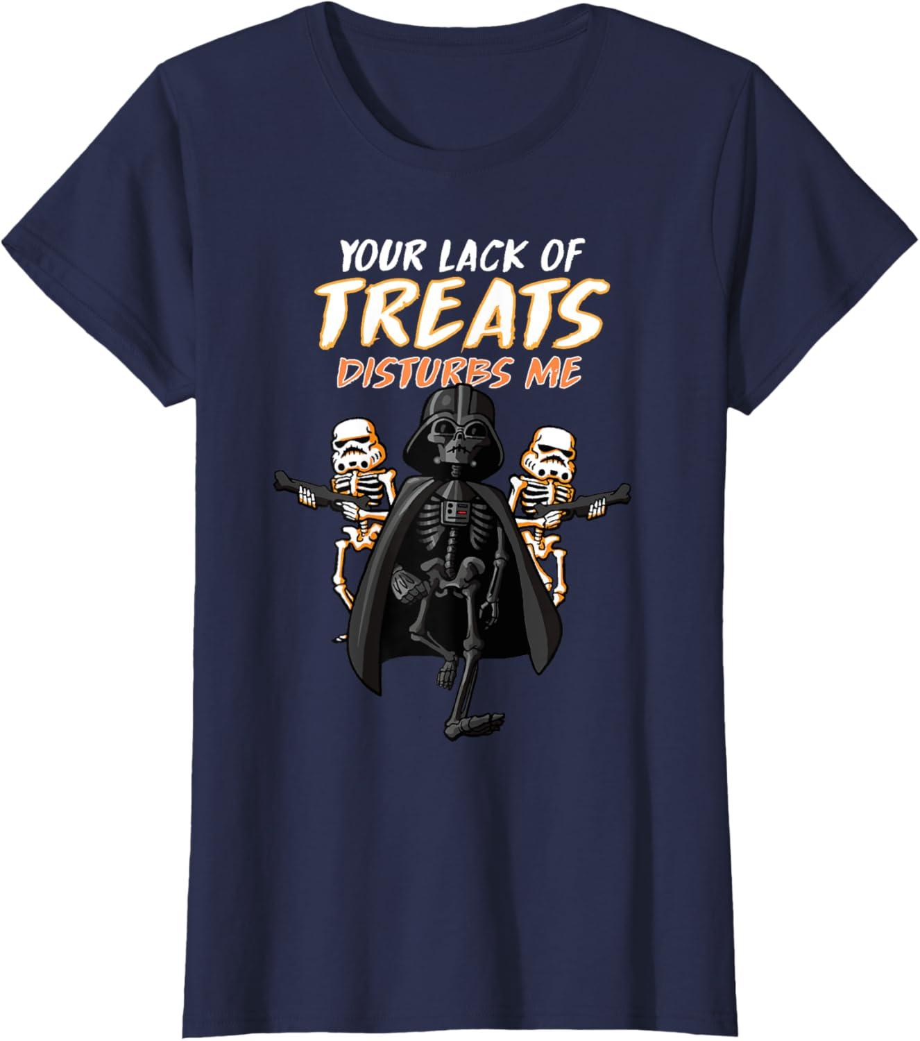 Command all the candy in the galaxy with every wear of this Halloween Star Wars top. Featuring a trio of skeletal Imperial forces, including Darth Vader with a festive take on his famous line, “Your Lack Of Treats Disturbs Me,” this Halloween top makes a spooky style statement. This Star Wars design is available on a t-shirt, tank top, long sleeve tee, and sweatshirt! Planning a trip to Disney Parks and Resorts? Whether it's Disneyland or Walt Disney World, get ready for Star Wars: Galaxy's Edge with a Star Wars tee for you or matching tops for the whole family.