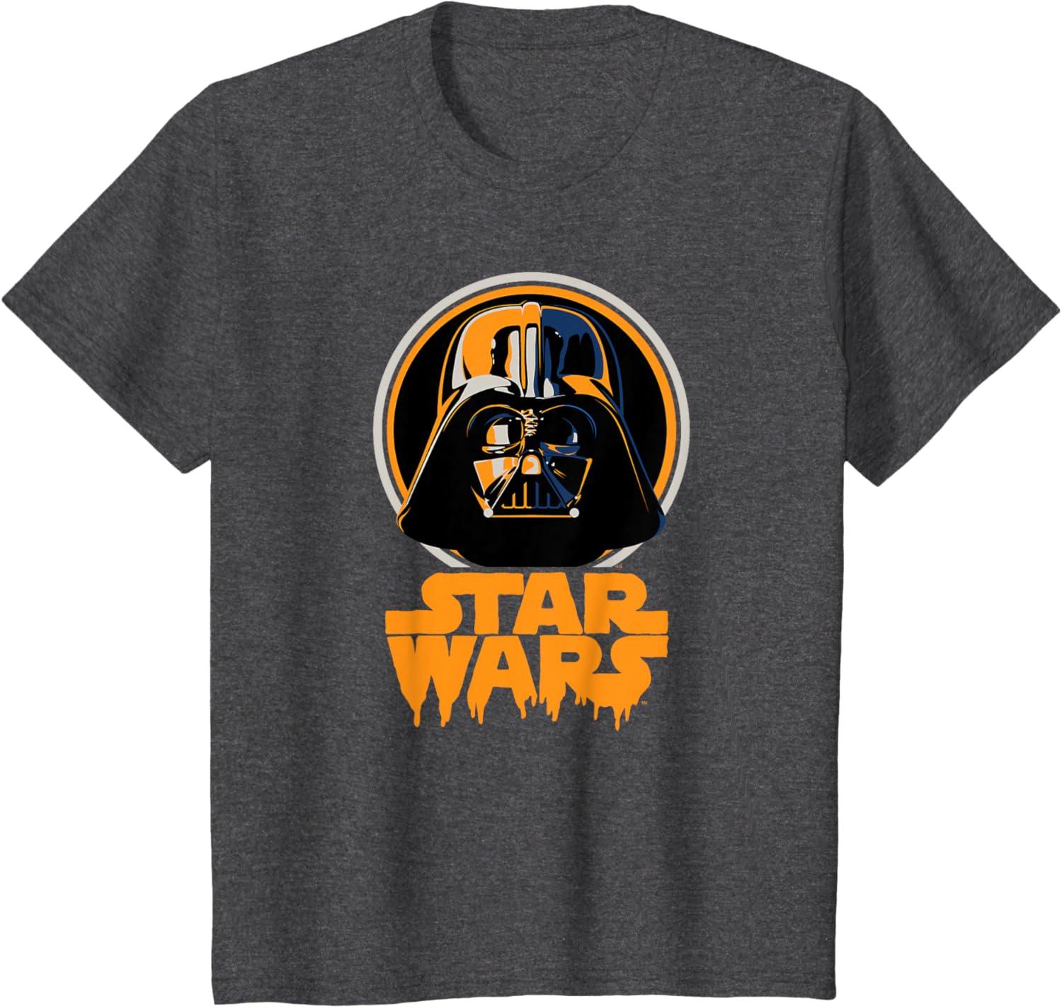 Star Wars Darth Vader Spooky Dripping Logo Halloween T-Shirt(Dark Heather Grey)
