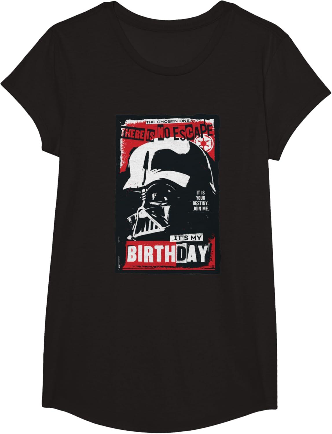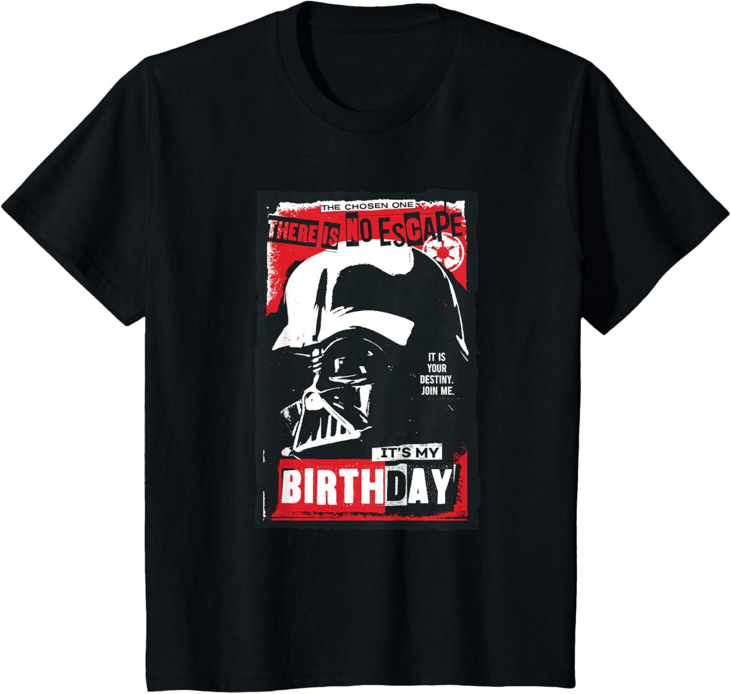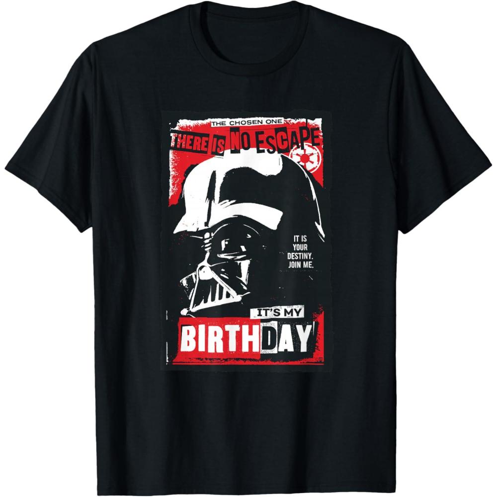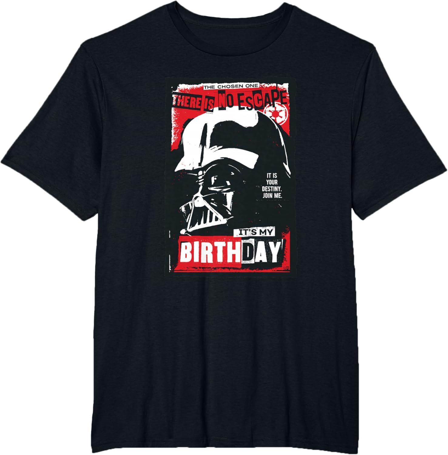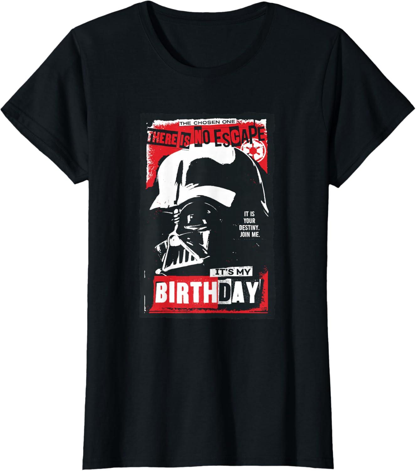 Rule the galaxy on your birthday! This official Lucasfilm birthday tee or hoodie features an underground art style image of the dreaded helmet and mask of Darth Vader, accompanied by the messages “There is no escape – it’s my birthday”, “The Chosen One”, and “It is your destiny. Join me.” A great galactic birthday gift for a Star Wars or Darth Vader fan, and perfect for a family or friends birthday trip to Star Wars: Galaxy’s Edge at Disneyland or Walt Disney World. Available in youth and adult sizes. Find it in a t-shirt, premium t-shirt, tank top, v-neck, long sleeve tee, hoodie, and sweatshirt.