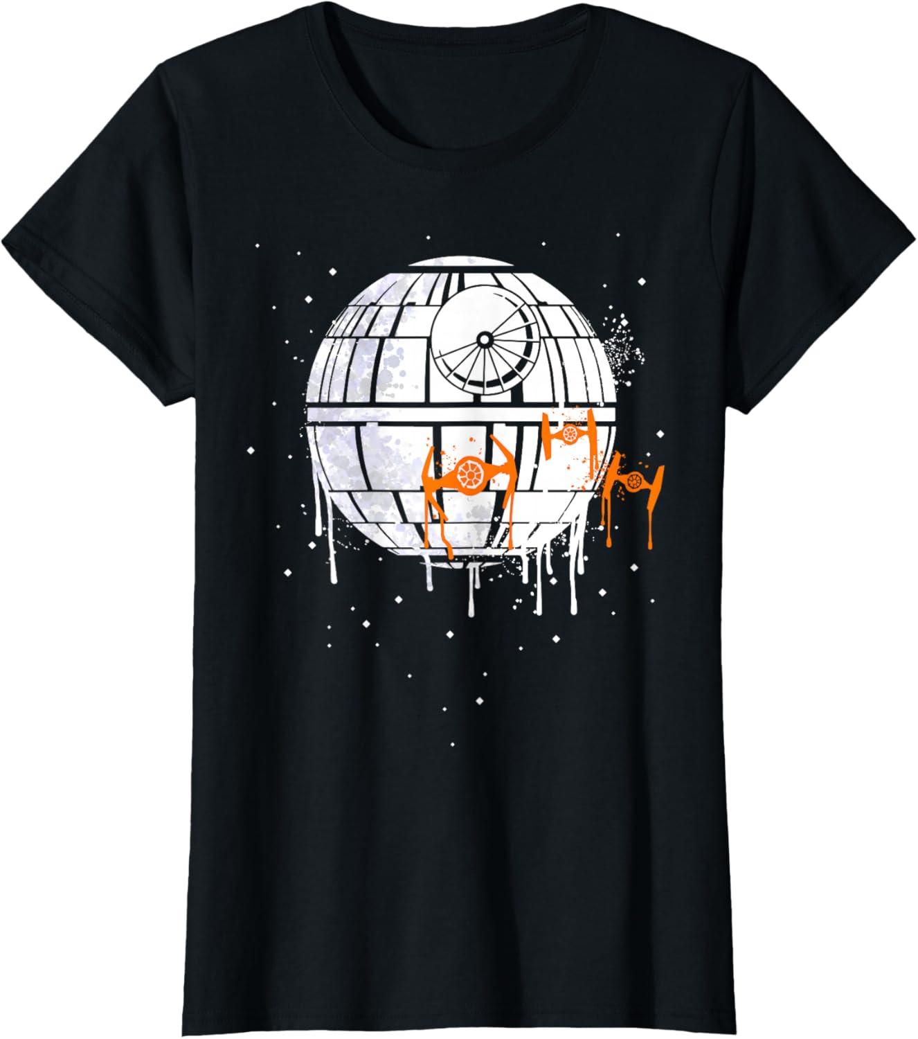Star Wars Death Star Orange Ship Drip Halloween T-Shirt(Black)