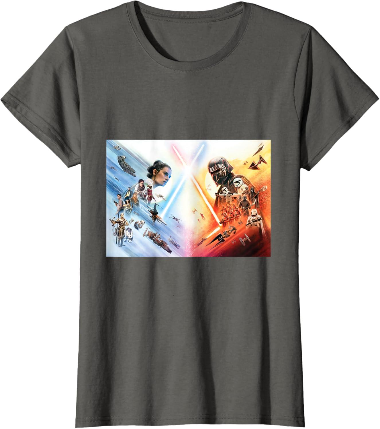The legendary battle between the First Order and The Resistance continues on this epic Star Wars: The Rise of Skywalker hooded sweatshirt. It features a thrilling split image of Rey with her Resistance warriors set against Kylo Ren and his First Order troops. Your favorite characters are all here including Poe Dameron, Lando Calrissian, Zorii, Jannah, Finn, Chewie, C-3PO, R2-D2, BB-8, D-O, The Knights of Ren, stormtroopers, Sith troopers, and vehicles like the famed Millennium Falcon, X-Wing Starfighters, TIE Fighters, the Pasaana Badlands skimmer, and more!Planning a trip to Disney Parks and Resorts? Whether it's Disneyland or Walt Disney World, get ready for Star Wars: Galaxy's Edge with a fun tee for you or matching shirts for the whole family.