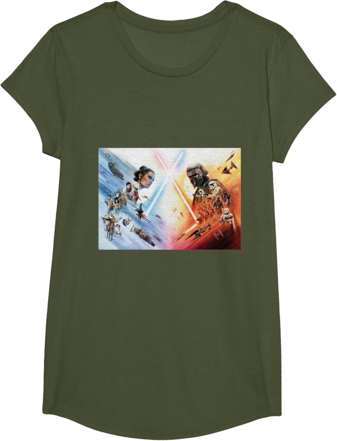 The legendary battle between the First Order and The Resistance continues on this epic Star Wars: The Rise of Skywalker hooded sweatshirt. It features a thrilling split image of Rey with her Resistance warriors set against Kylo Ren and his First Order troops. Your favorite characters are all here including Poe Dameron, Lando Calrissian, Zorii, Jannah, Finn, Chewie, C-3PO, R2-D2, BB-8, D-O, The Knights of Ren, stormtroopers, Sith troopers, and vehicles like the famed Millennium Falcon, X-Wing Starfighters, TIE Fighters, the Pasaana Badlands skimmer, and more!Planning a trip to Disney Parks and Resorts? Whether it's Disneyland or Walt Disney World, get ready for Star Wars: Galaxy's Edge with a fun tee for you or matching shirts for the whole family.