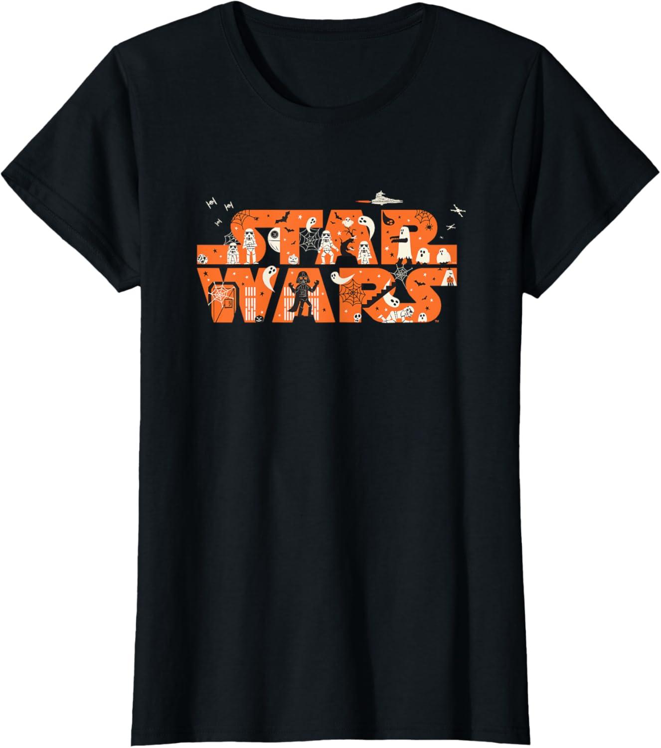 This Halloween, beware the might of the Galactic Empire! This official Lucasfilm tee or hoodie features the classic Star Wars movie logo in eerie orange and festooned with a haunted house’s worth of creepy, spooky Galactic Empire designs including Darth Vader and a squad of Imperial Stormtroopers, plus bats, spiders, pumpkins, jack-o’-lantern TIE fighters, and more. Look closely and you might even spot Chewbacca, R2-D2, and BB-8 disguised as ghosts! A great Halloween gift for a Star Wars or Dark Side fan – wear it to a Halloween party or make it part of a trick-or-treat costume. Taking a fall trip to Disneyland or Walt Disney World? Get ready for Galaxy’s Edge with a Star Wars tee that’s perfect to coordinate and match up with friends and family. Available in youth and adult sizes. Find it in a t-shirt, premium t-shirt, tank top, v-neck, long sleeve tee, hoodie, and sweatshirt.
