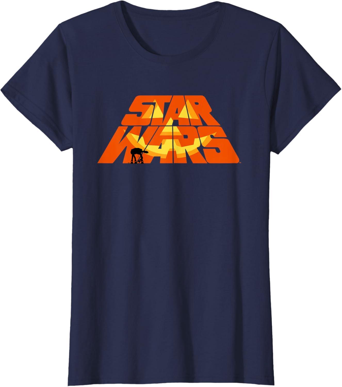 Make it a Star Wars Halloween this year! This official Lucasfilm tee or hoodie features a vintage Star Wars logo in eerie orange, with a grinning jack-o’-lantern design and the silhouette of an Imperial AT-AT walker, complete with a tiny Luke Skywalker dangling underneath on his grappling line. A great Halloween gift for a Star Wars fan – wear it to a Halloween party or make it part of a trick-or-treat costume! Taking a fall trip to Disneyland or Walt Disney World? Get ready for Galaxy’s Edge with a Star Wars tee that’s perfect to coordinate and match up with friends and family. Available in youth and adult sizes. Find it in a t-shirt, premium t-shirt, tank top, v-neck, long sleeve tee, hoodie, and sweatshirt.