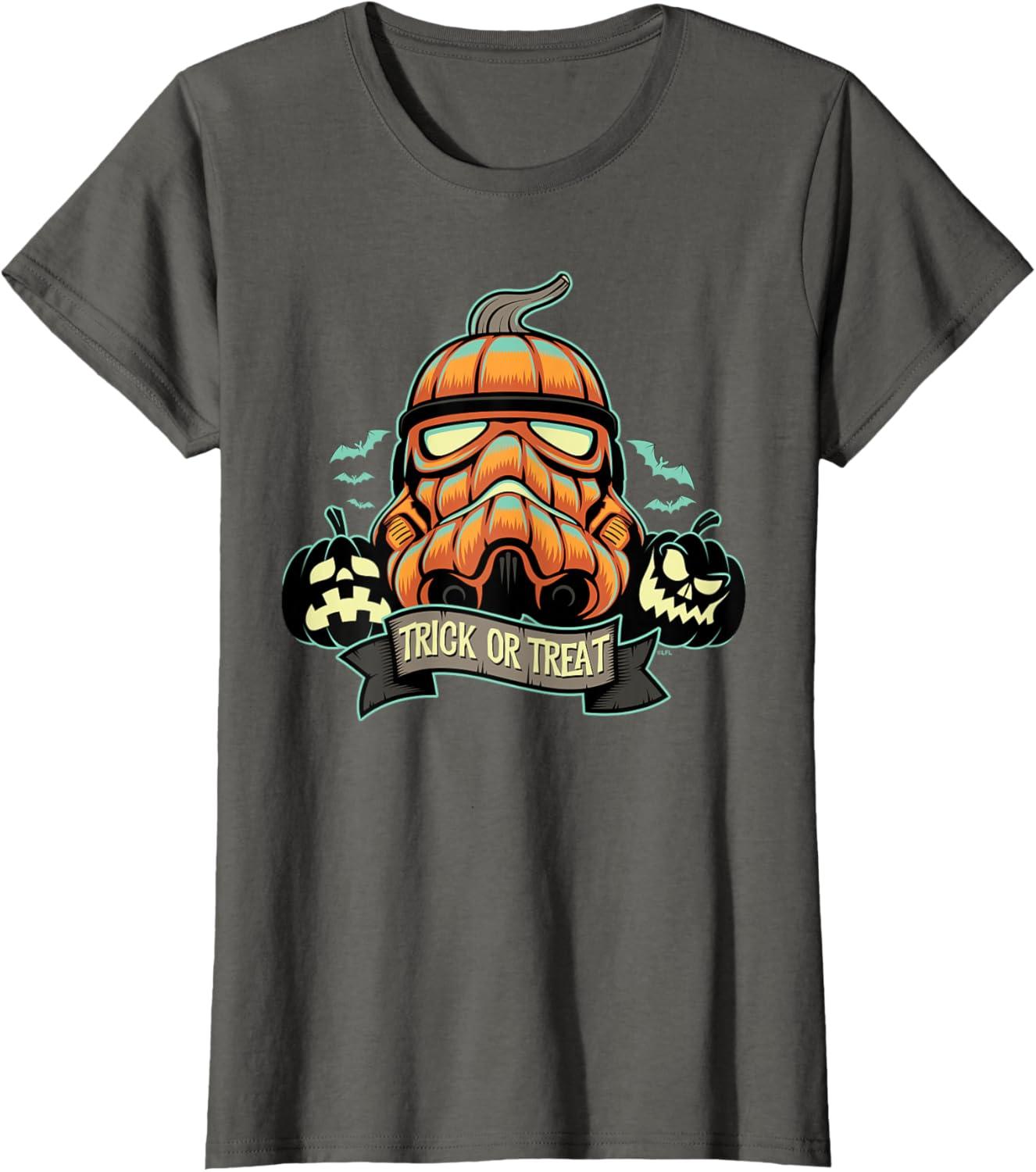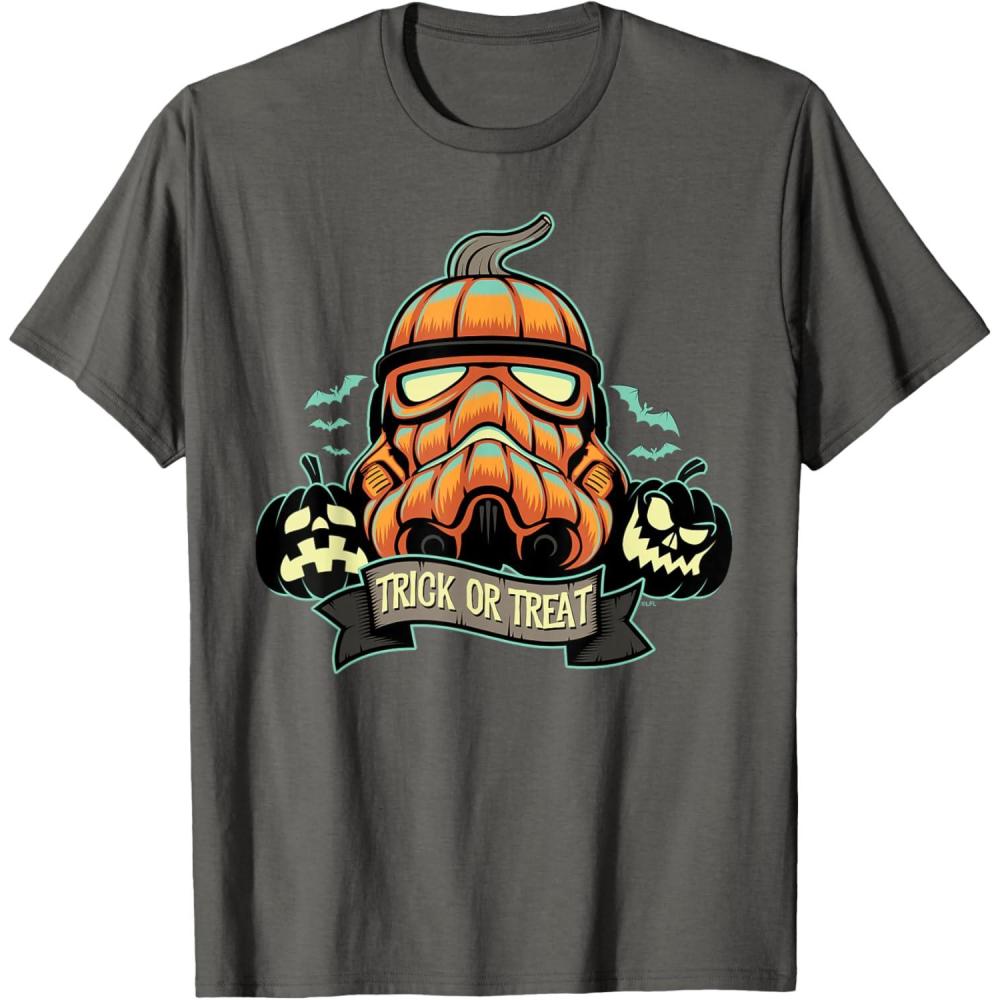 Star Wars Halloween Stormtrooper Jack-o’-Lantern Pumpkin T-Shirt(Asphalt Grey)
