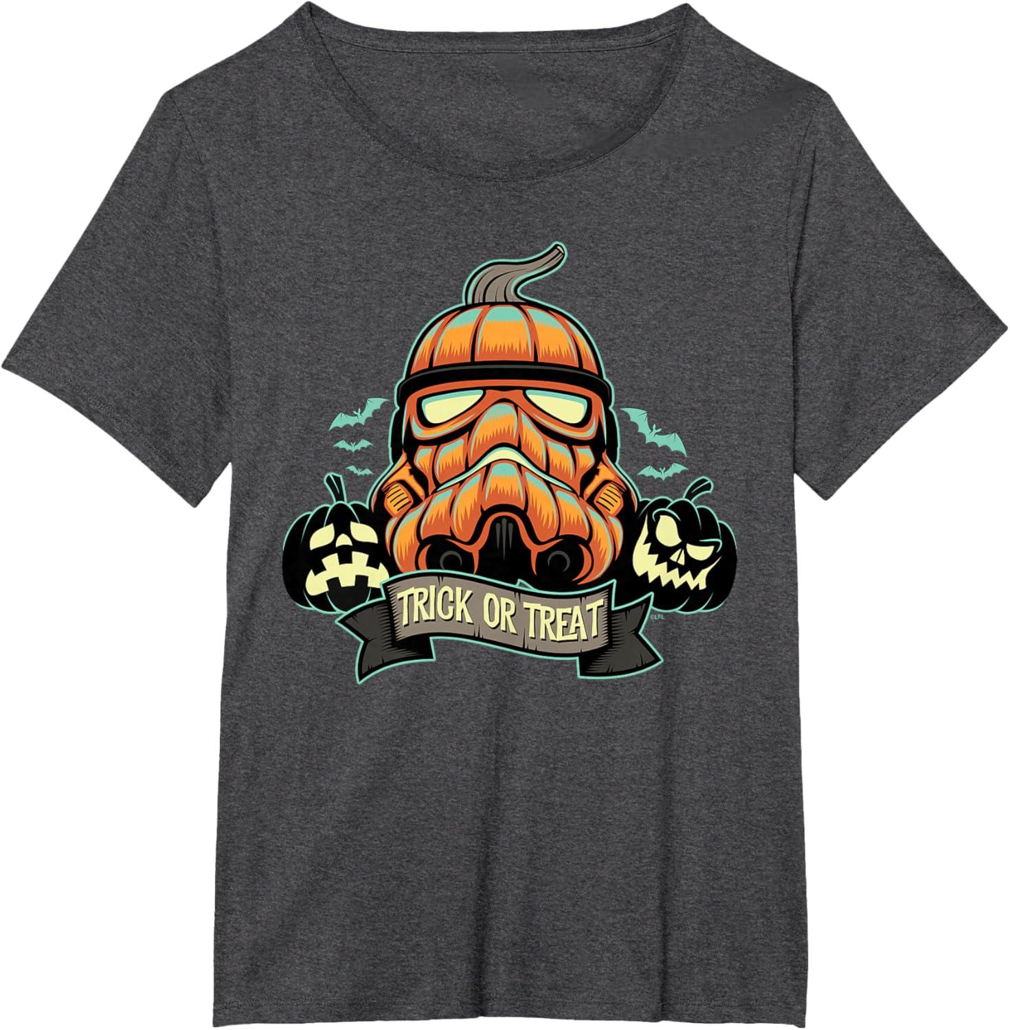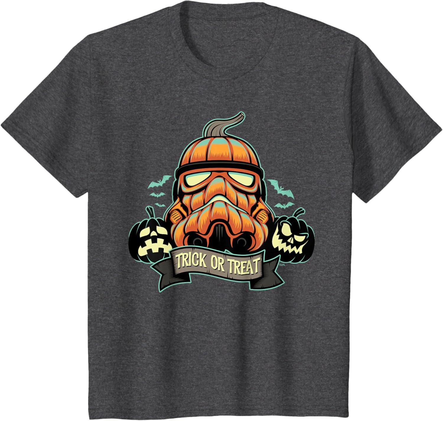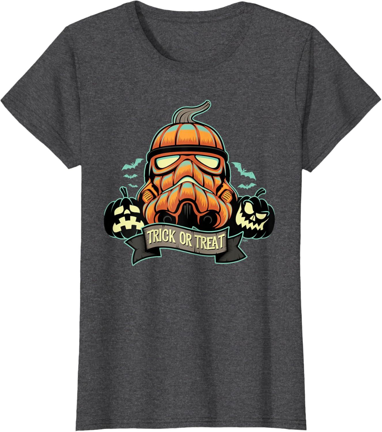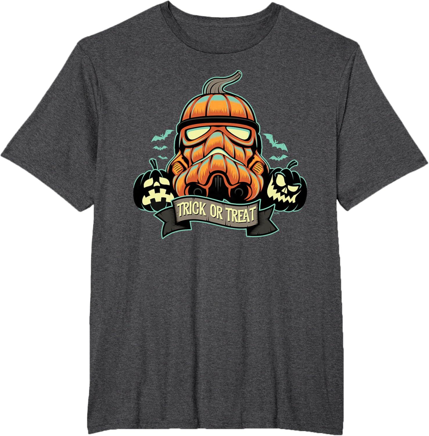 Star Wars Halloween Stormtrooper Jack-o’-Lantern Pumpkin T-Shirt(Dark Heather Grey)