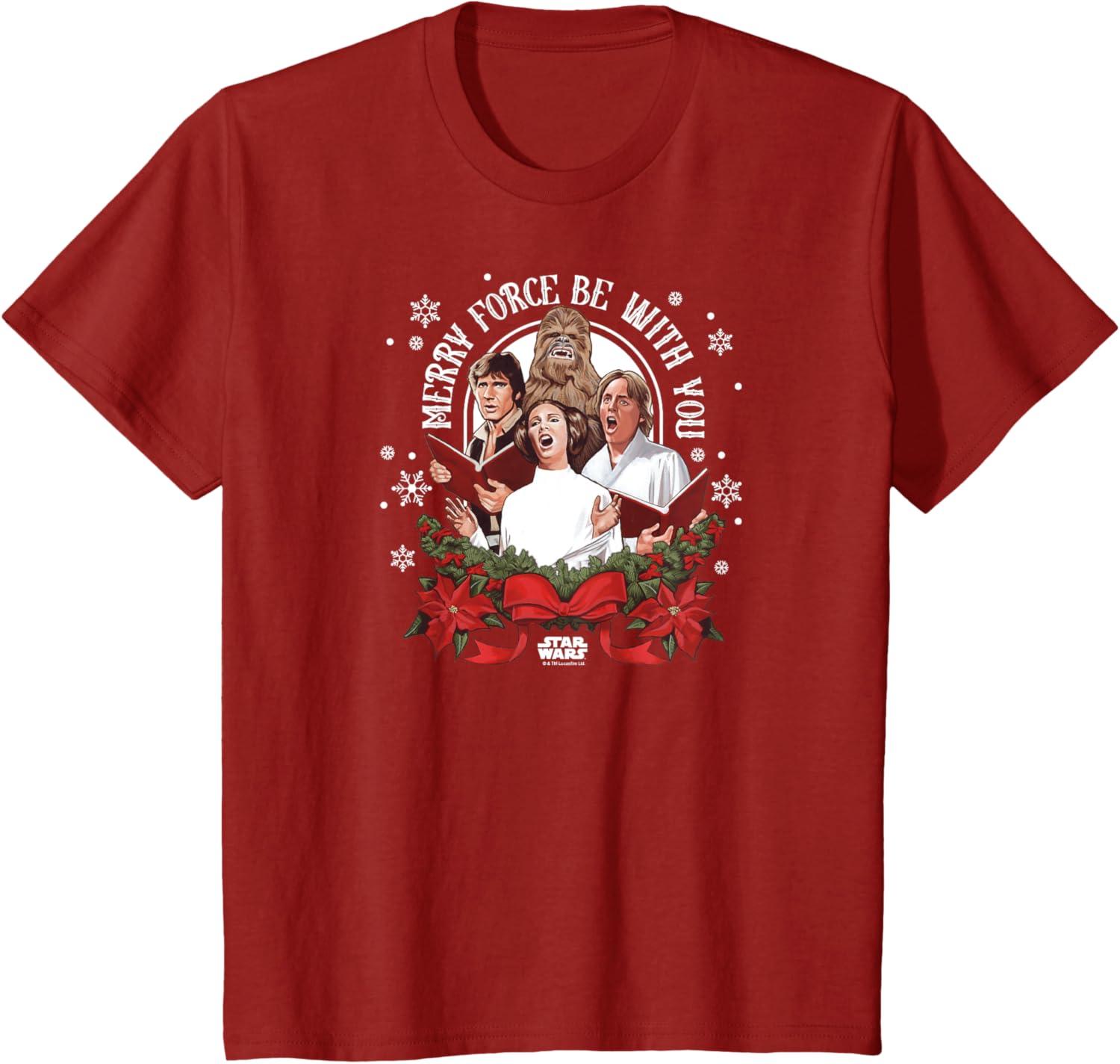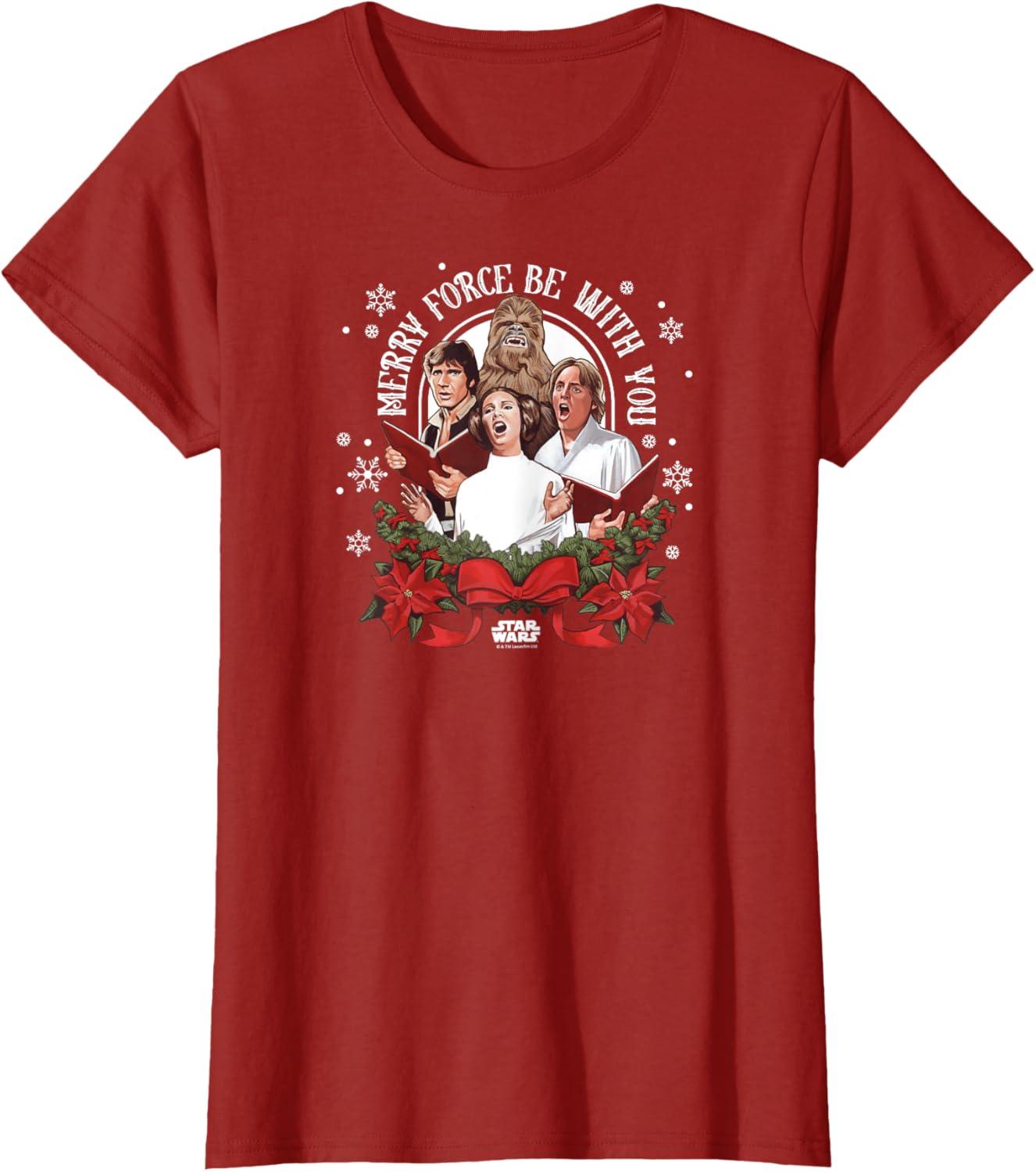 Star Wars – Han, Luke, Leia & Chewy Holiday Caroling T-Shirt(Cranberry Red)