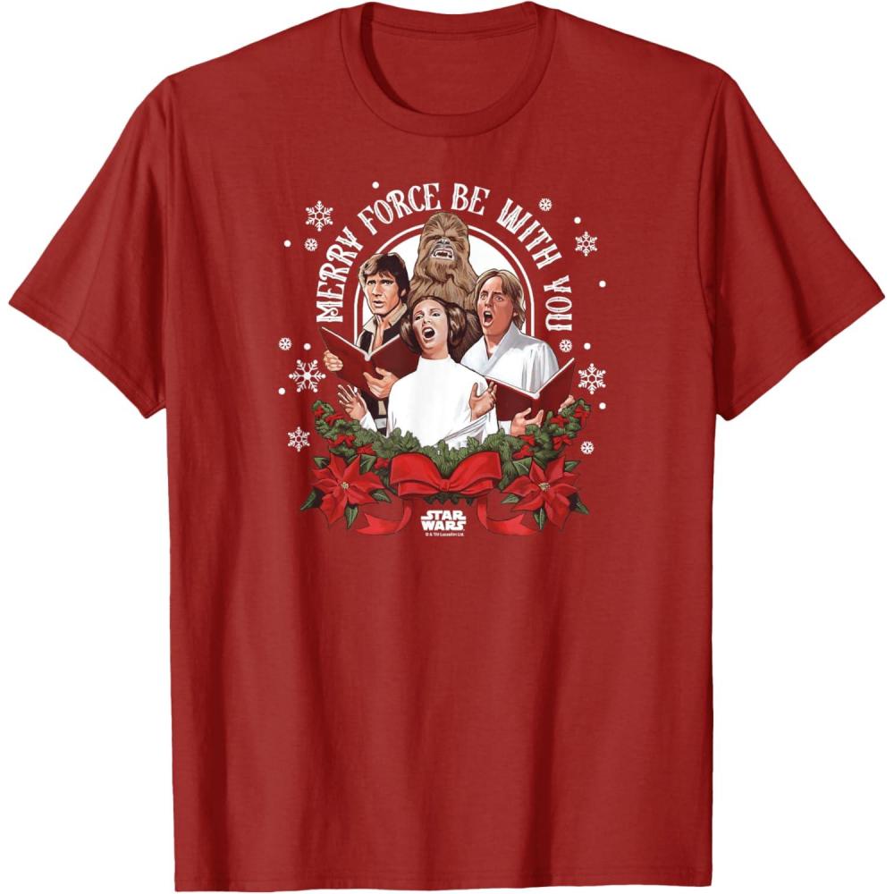 Star Wars – Han, Luke, Leia & Chewy Holiday Caroling T-Shirt(Red)